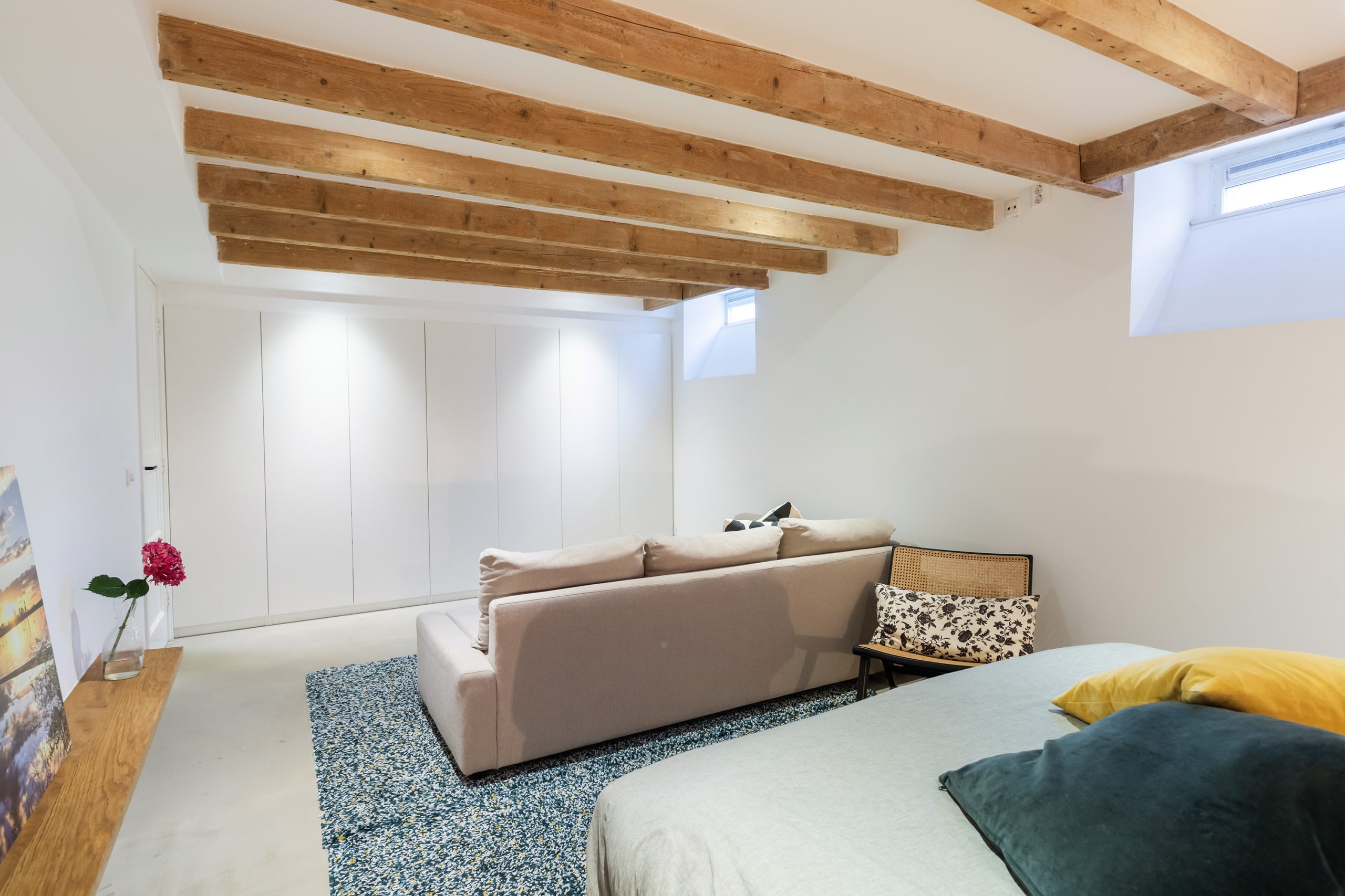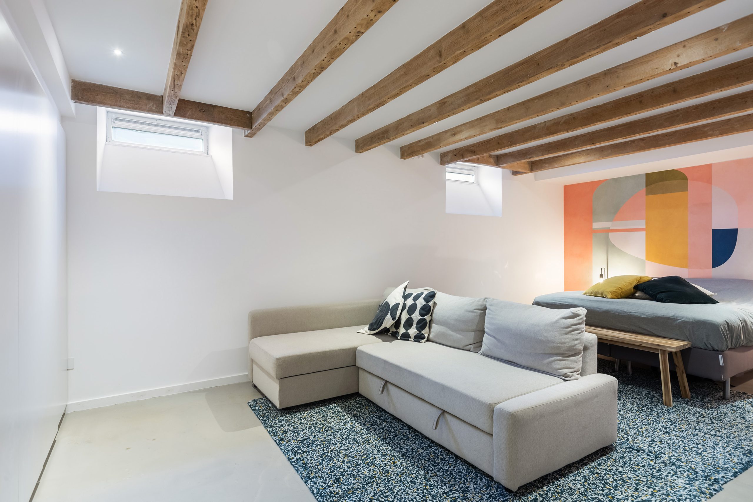 In het souterrain bevinden zich twee ruime slaapkamers, beide met een verzorgde afwerking en waarbij de houten balken aan het plafond zorgen voor extra sfeer. Allebei de kamers hebben vaste kastenwanden wat zorgt voor voldoende opbergruimte. Daarnaast bestaat de mogelijkheid om een derde slaapkamer te realiseren, afhankelijk van de woonwens.