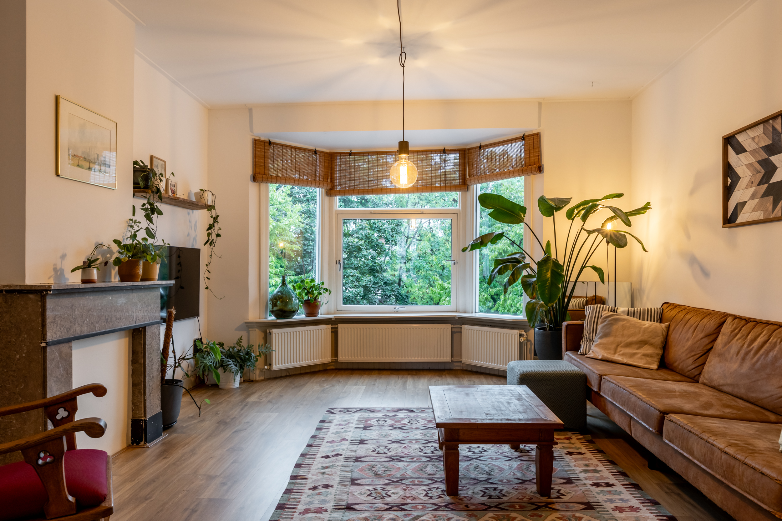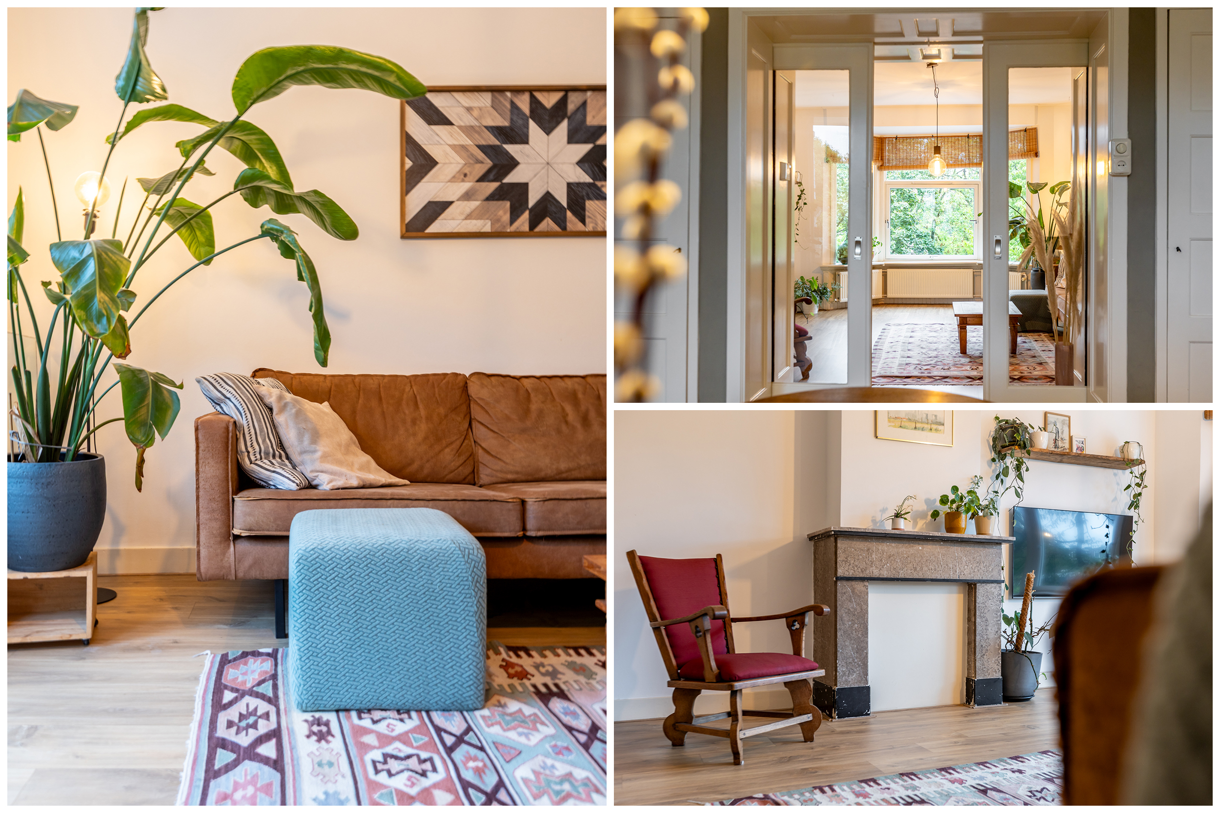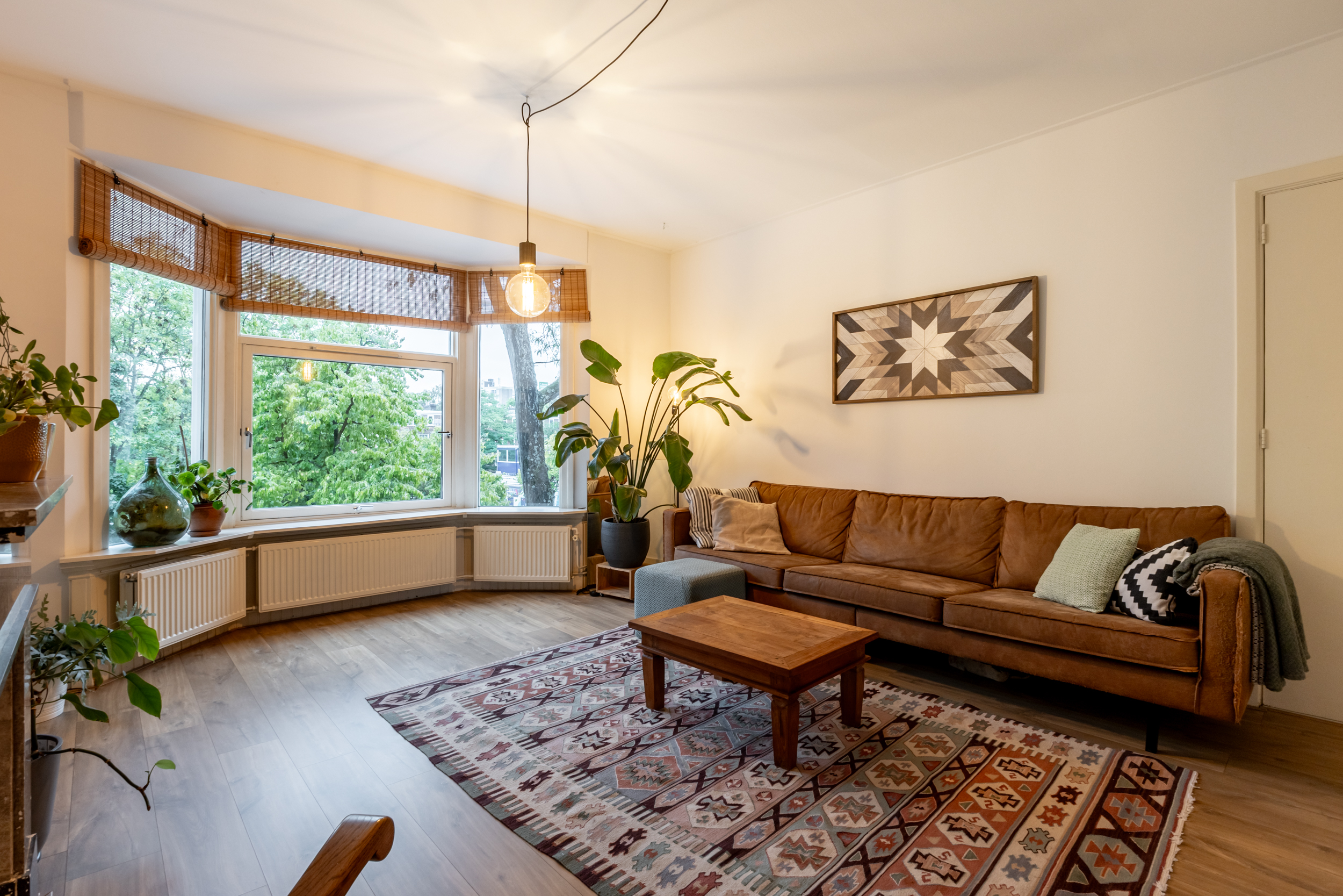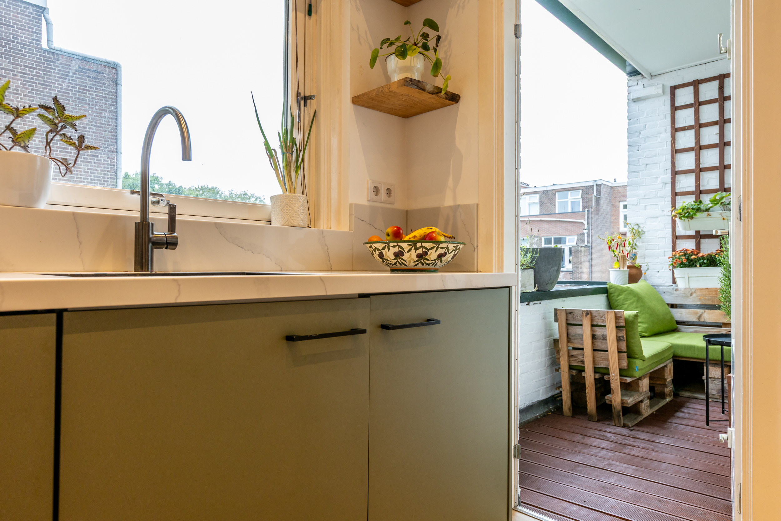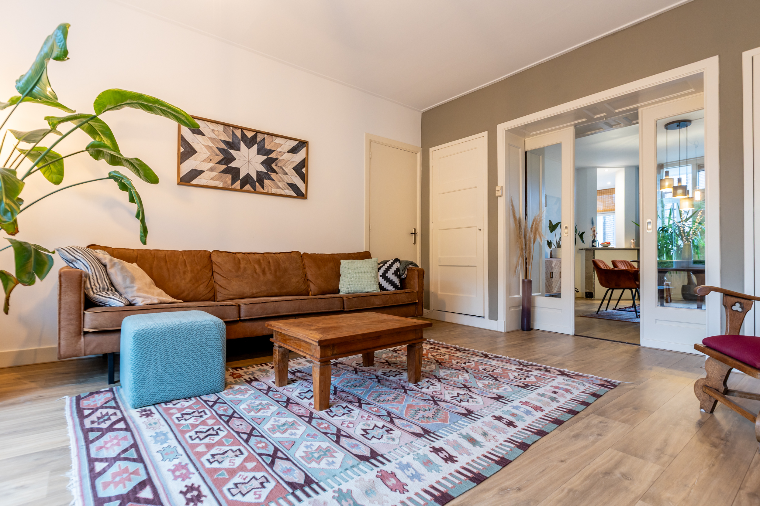 Bij binnenkomst stap je in de hal die toegang biedt tot de vertrekken op deze etage. De leefruimte is een heerlijke, royale ruimte vol sfeer, warmte en natuurlijk licht dankzij de grote raampartijen. De strakke wanden en het laminaat vormen een mooi contrast met de authentieke details van de woning. Een perfecte mix! Het zitgedeelte aan de voorzijde van de woning is een knusse ruimte met voldoende plek voor een royale zithoek. Hier zorgt onder andere de elegante schouw voor een stijlvolle blikvanger en een knusse sfeer. Dé plek om heerlijk tot rust te komen. Via de prachtige en suite deuren, met aan weerszijden inbouwkasten, bereik je het eetgedeelte. Hier is genoeg ruimte voor een lange eettafel om avonden lang te tafelen met vrienden en familie. Boven de schouw is een charmant en uniek doorkijkje naar de keuken gerealiseerd, wat zorgt voor een speelse en open uitstraling. Via de dubbele openslaande deuren stap je het balkon gelegen op het zuidwesten op, een ideale plek om te genieten van een goed gesprek of een gezellige borrel in de zon. Via de hal bereik je de keuken, die modern is uitgevoerd en van alle gemakken is voorzien. De gerenoveerde keuken beschikt over alle moderne inbouwapparatuur zoals een inductiekookplaat, afzuigkap, oven, koelkast, vriezer en vaatwasser. Dankzij de doorkijk naar de eetkamer voelt de ruimte open en ruimtelijk aan. Ideaal voor wie graag kookt, maar toch in contact wil blijven met zijn of haar gezelschap. Bovendien zorgt het natuurlijke licht voor een prettige sfeer tijdens het koken. Vanuit de hal is de eerste multifunctionele slaapkamer, nu ingericht als thuiskantoor, en het separate toilet met fonteintje te bereiken.