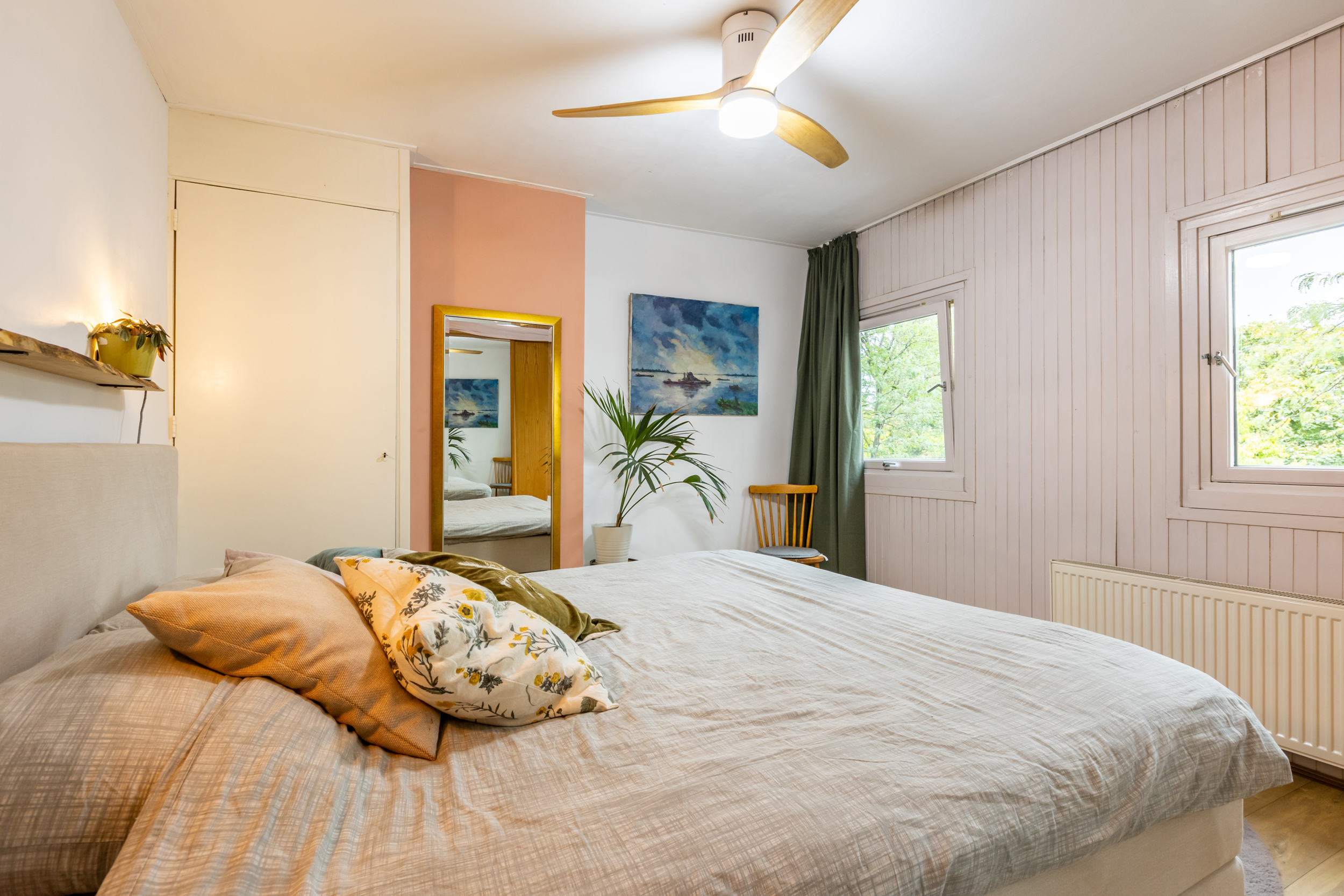 ia de overloop heb je toegang tot de verschillende vertrekken op deze verdieping. De dakkoepel zorgt hier voor een fijne dosis daglicht! De hoofdslaapkamer is een heerlijke, lichte kamer met een praktische inbouwkast. Aan opbergruimte dus geen gebrek. De derde slaapkamer is geheel naar eigen smaak in te richten. Denk aan een logeerkamer, werkkamer of hobbyruimte. De moderne badkamer is strak afgewerkt en voorzien van inbouwspotjes, een inloopdouche met regenkop, strak houten wastafelmeubel, spiegelverwarming, toilet en handdoekradiator. Een perfecte plek om even helemaal tot rust te komen en te genieten van je eigen spa moment! Daarnaast is vanaf de overloop de aparte bergruimte met wasmachine aansluiting en de cv-installatie bereikbaar. Praktisch en netjes weggewerkt.
