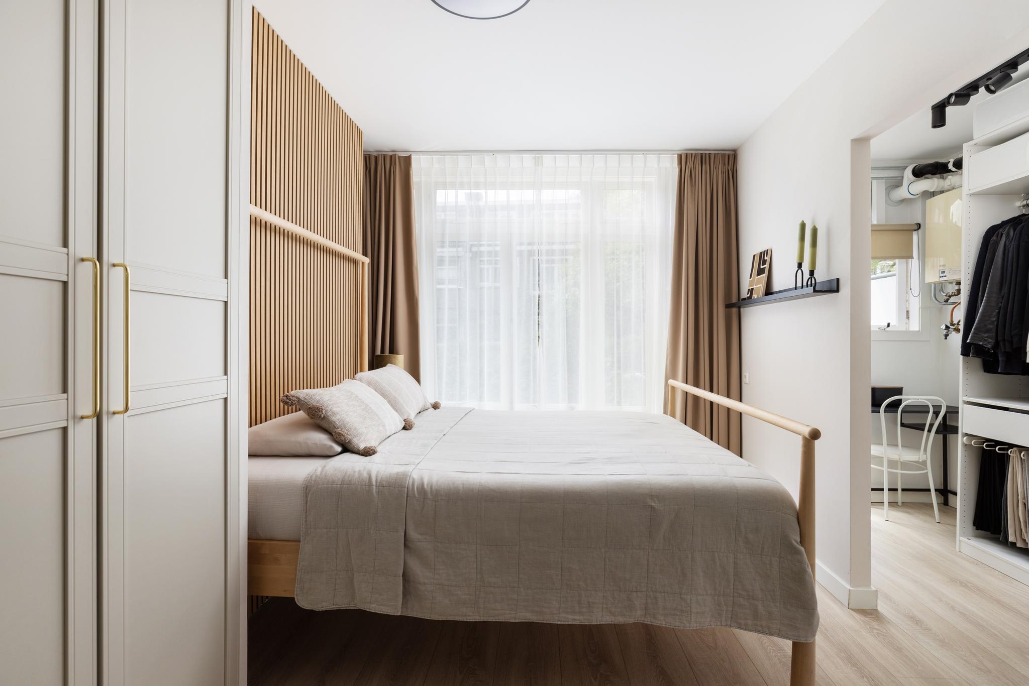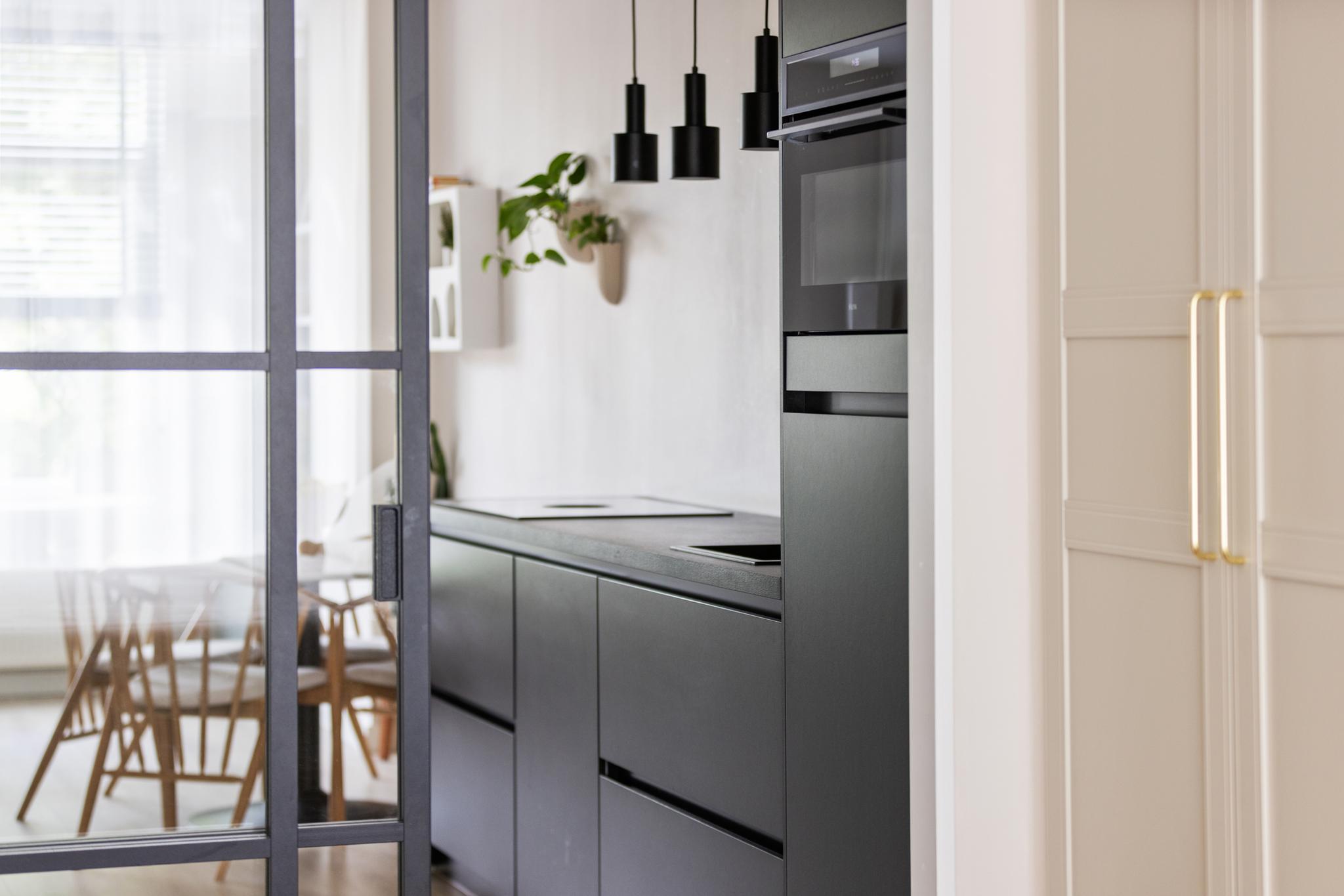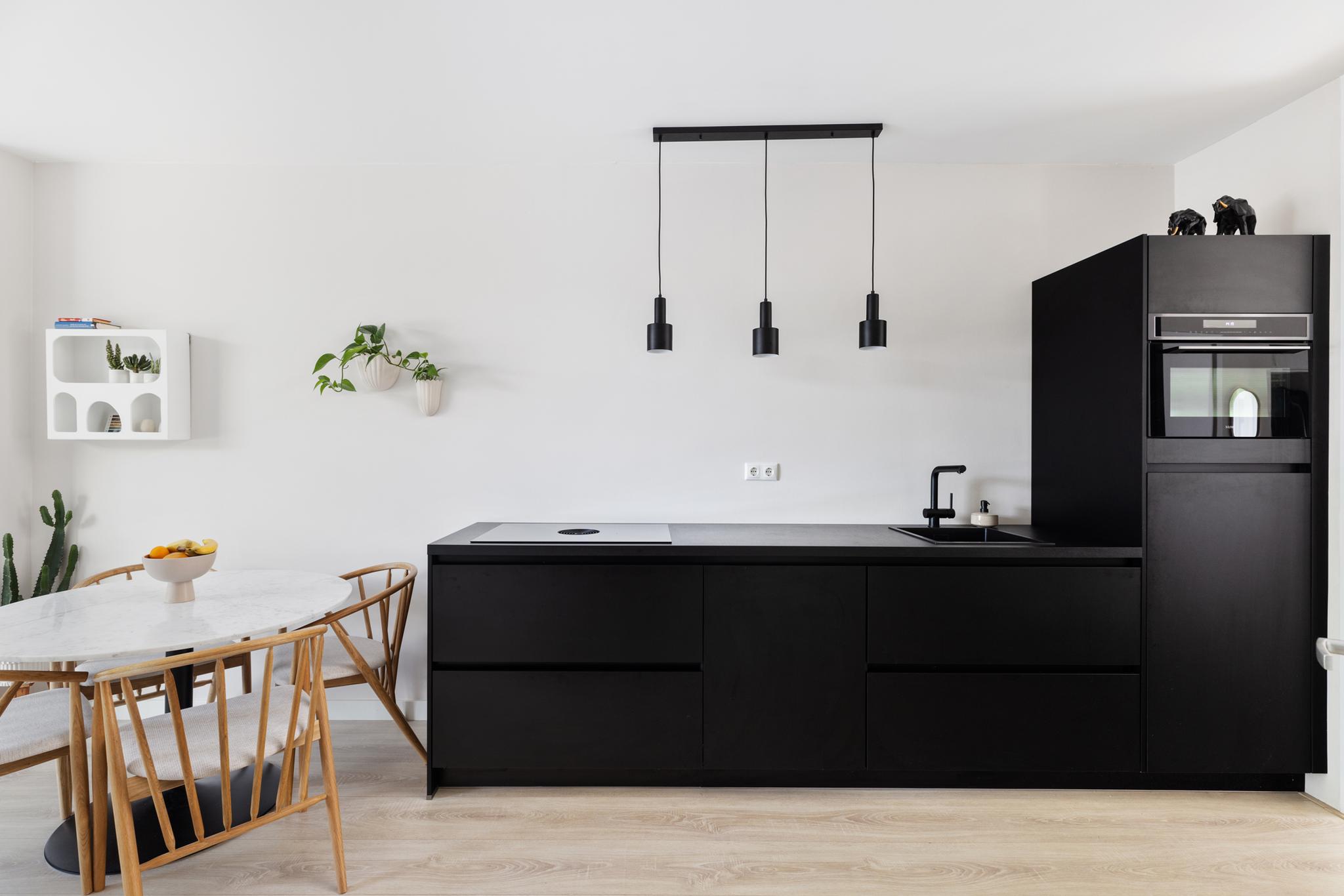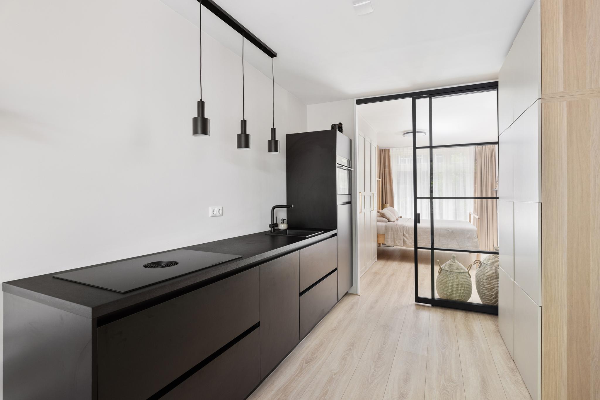Binnenkomst in de entree waar de meterkast, een vaste kast en de deur naar de living zijn gesitueerd. Deze is enorm sfeervol en strak afgewerkt; hierdoor ervaar je direct een warm welkom! De mooie laminaatvloer samen met de grootse lichtinval zorgen voor een licht en ruimtelijk gevoel. De moderne open keuken (2021) straalt luxe uit door onder andere de zwarte frontjes en is voorzien van een Bora-kookplaat met afzuiging, combi-oven, koel- en vriescombinatie en een vaatwasser. Het leefgedeelte en de slaapkamer worden gescheiden door een stalen glazen schuifdeur. Hoe tof! Aan de achterzijde bevindt zich de slaapkamer. De slaapkamer is voorzien van een ingebouwde kledingkast. De naastgelegen kamer is thans half open en bijvoorbeeld goed in te richten als werkkamer of inloopkast. Tevens is hier de cv-opstelling gevestigd en is het balkon (zuidwesten) te bereiken. De badkamer is uitgerust met een douche, wastafel met meubel, toilet en een aansluiting voor de wasmachine. Â Â
