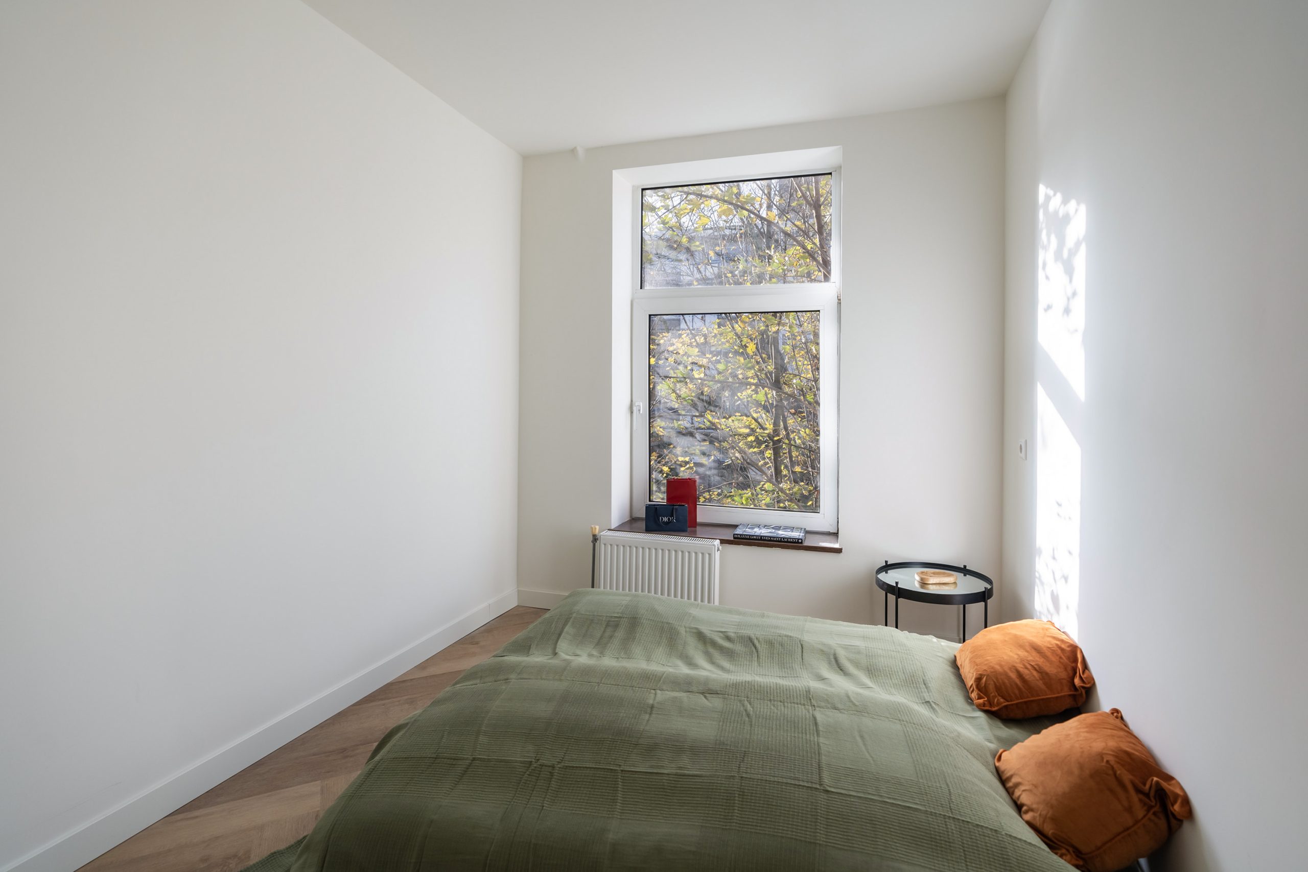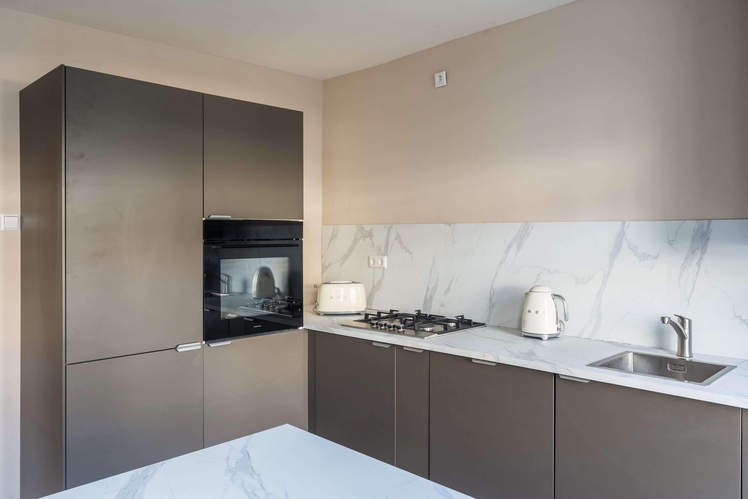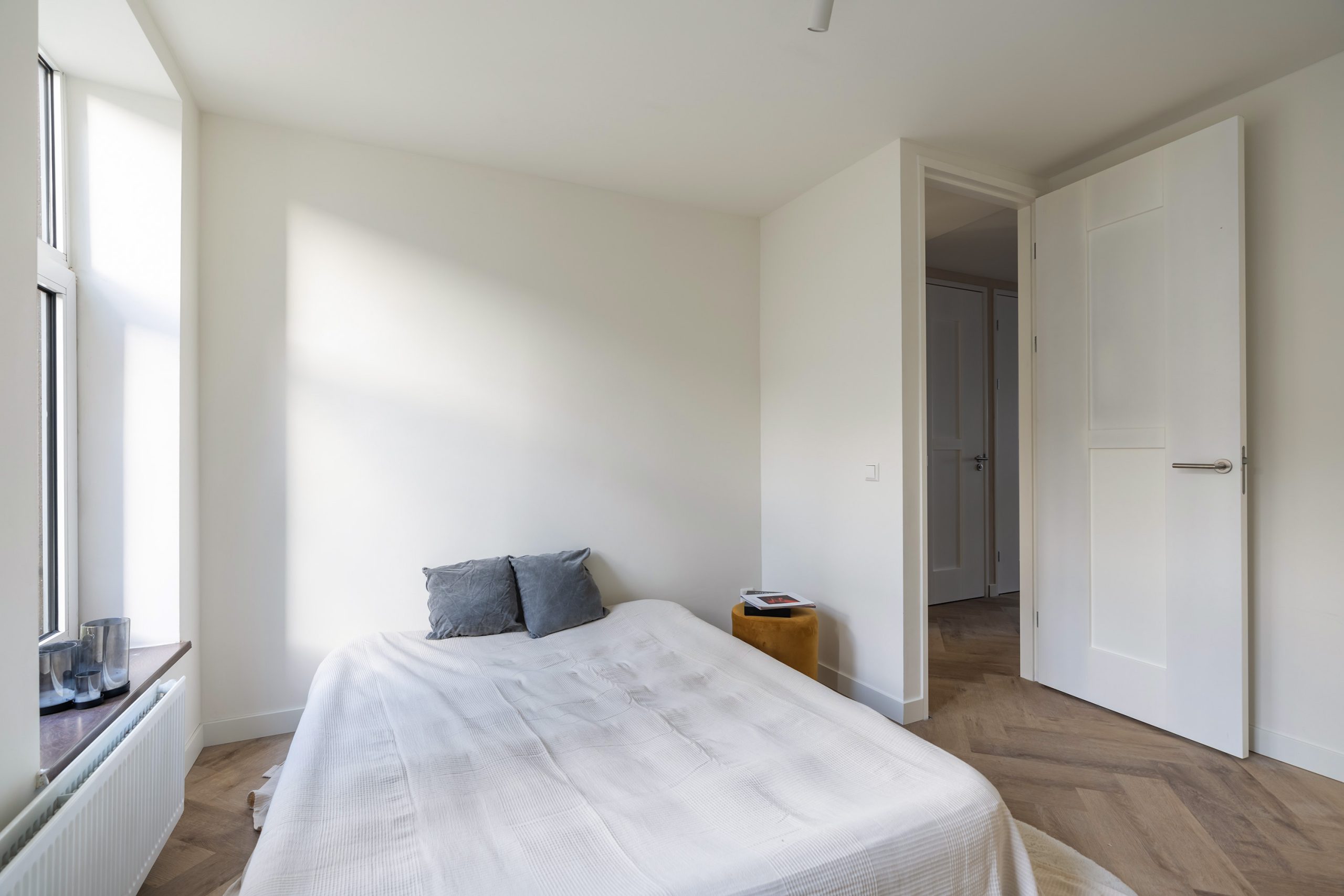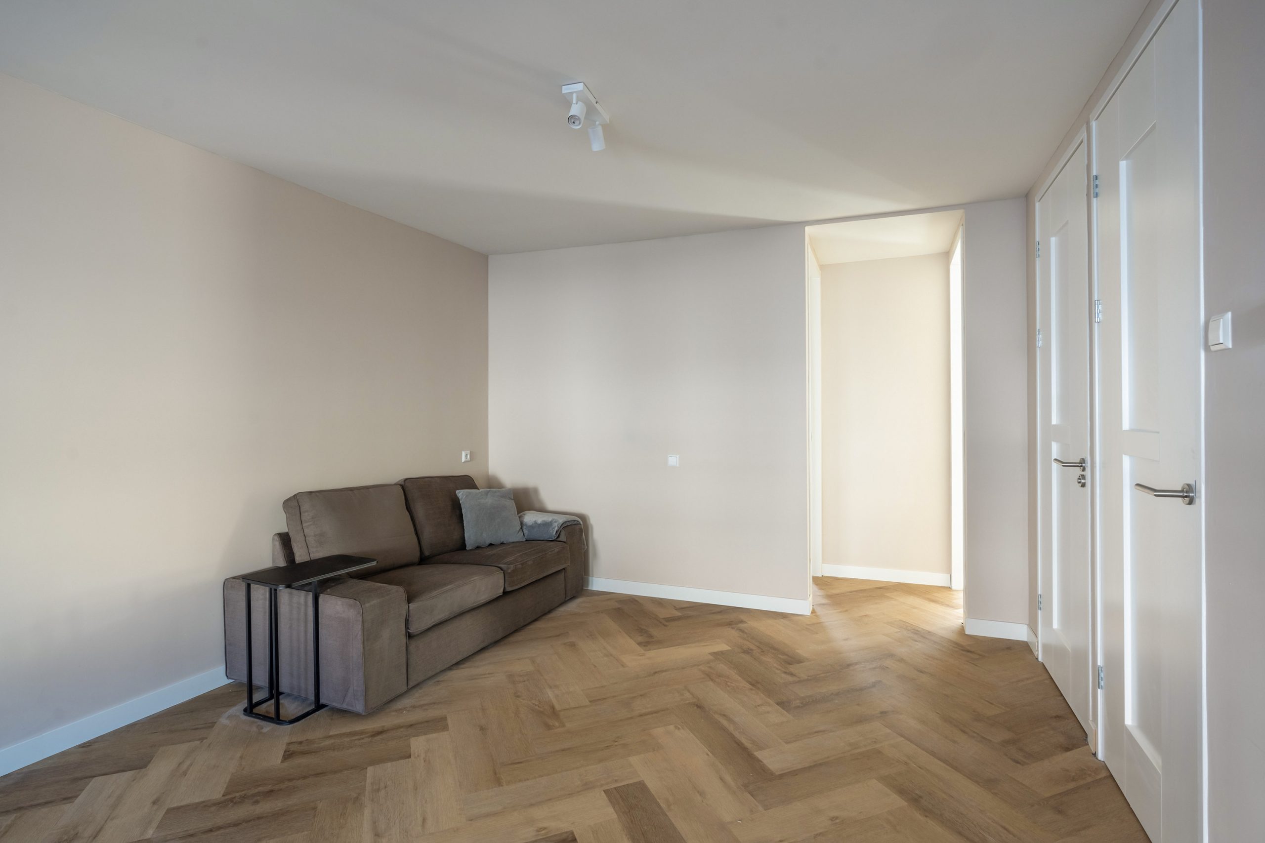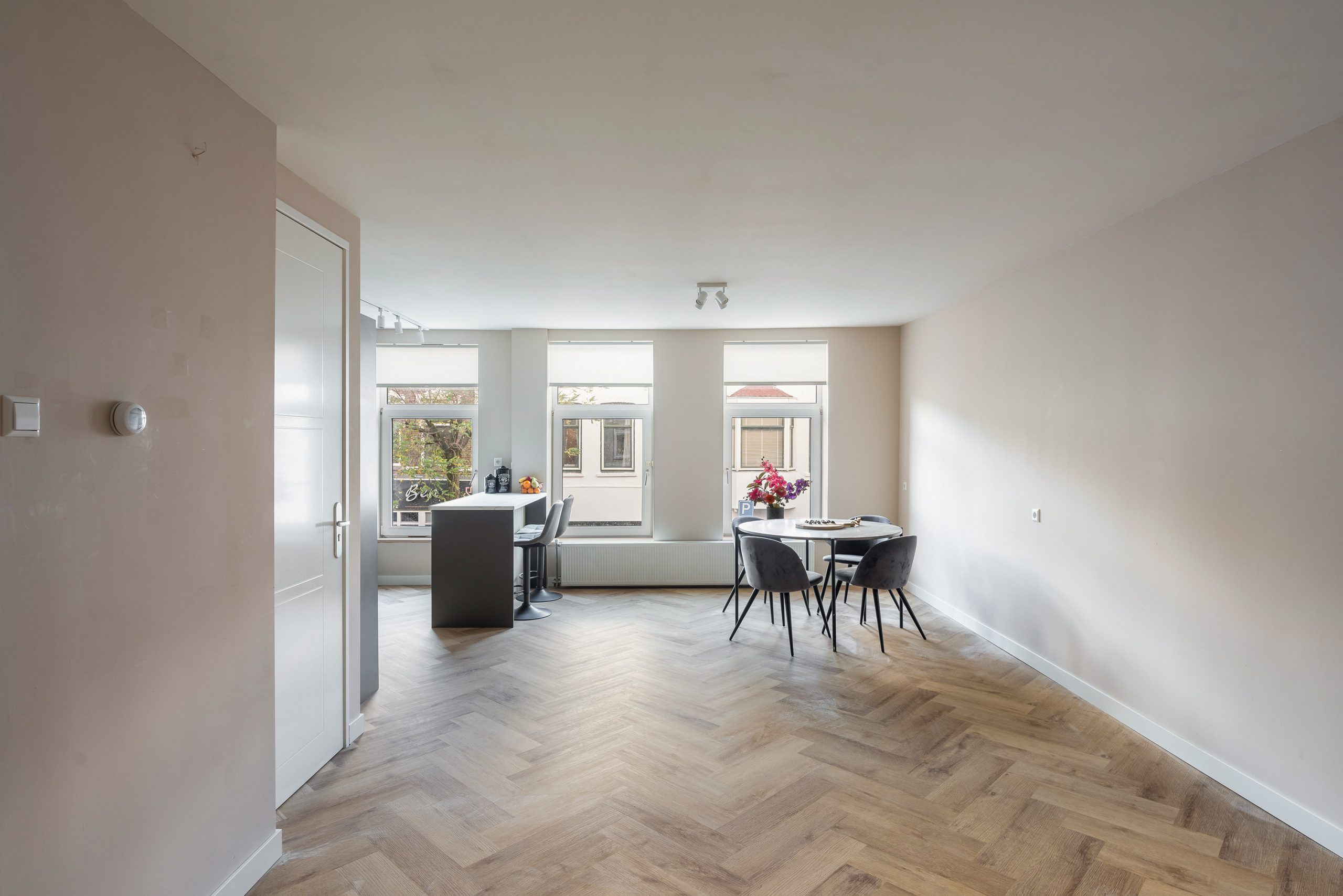 Bij binnenkomst valt meteen op hoe sfeervol en stijlvol dit appartement is! Je stapt direct een prachtige en lichte leefruimte binnen met drie grote raampartijen die zorgen voor een prettige lichtinval en een levendig uitzicht over de straat. De charmante visgraatvloer en strak afgewerkte wanden combineren warmte met een moderne look. Aan de voorzijde bevindt zich de keuken met het eetgedeelte. De stijlvolle keuken trekt meteen de aandacht dankzij de mooie keukenbar en marmerenlook aanrechtblad. Wat een plaatje! Verder is deze voorzien van een 4-pits gasfornuis, afzuigkap, combi-oven, koel-vriescombinatie, vaatwasser en is de cv-opstelling netjes weggewerkt. Een plek waar kookplezier en gezellig samenzijn moeiteloos samengaan, mede door de open verbinding met de rest van de living. Vanuit de woonkamer is de ruime berging te bereiken met een aansluiting voor de wasmachine.Â