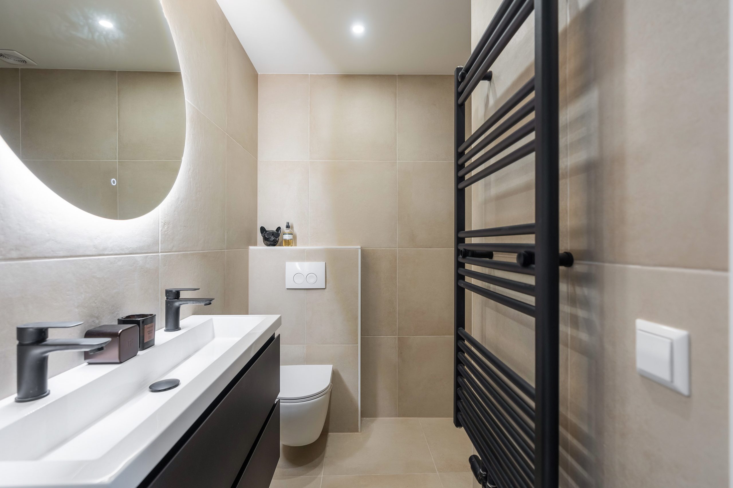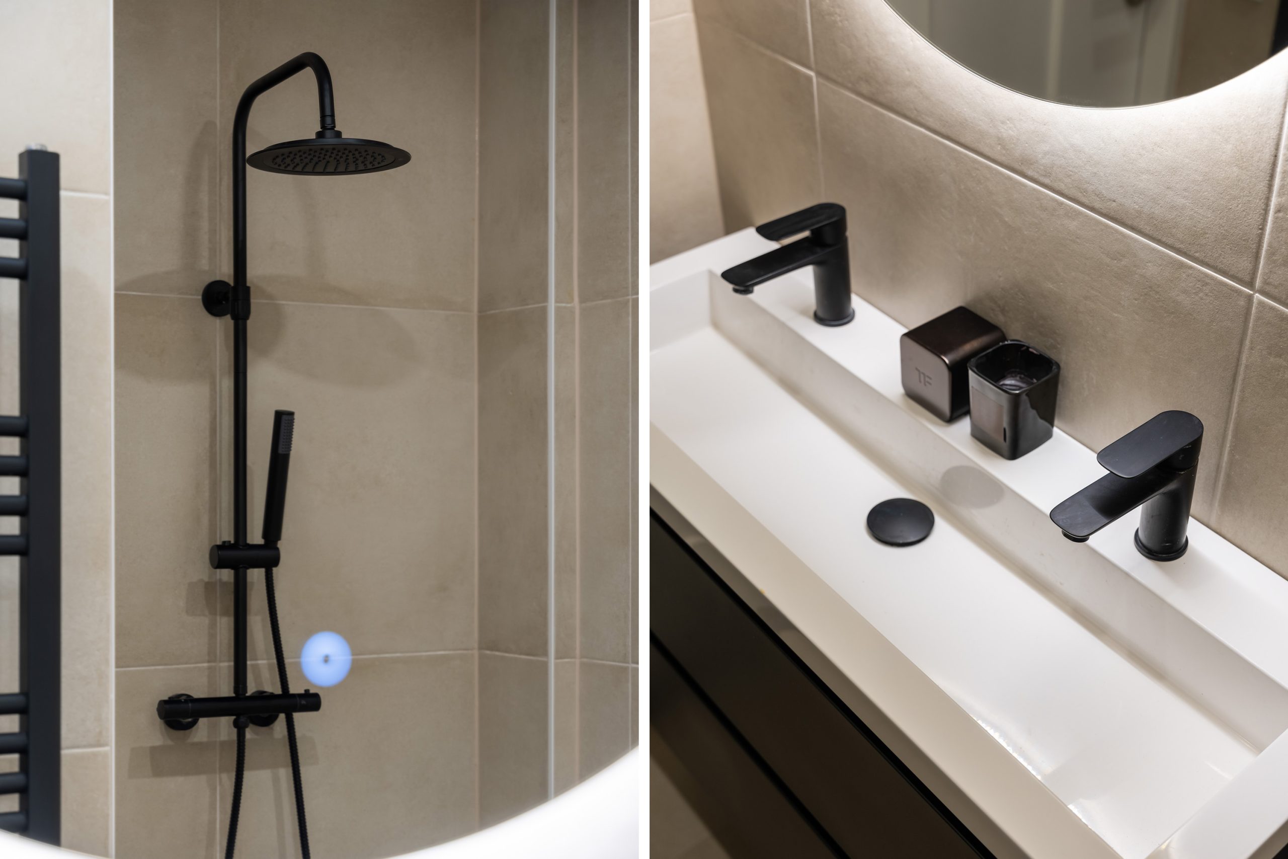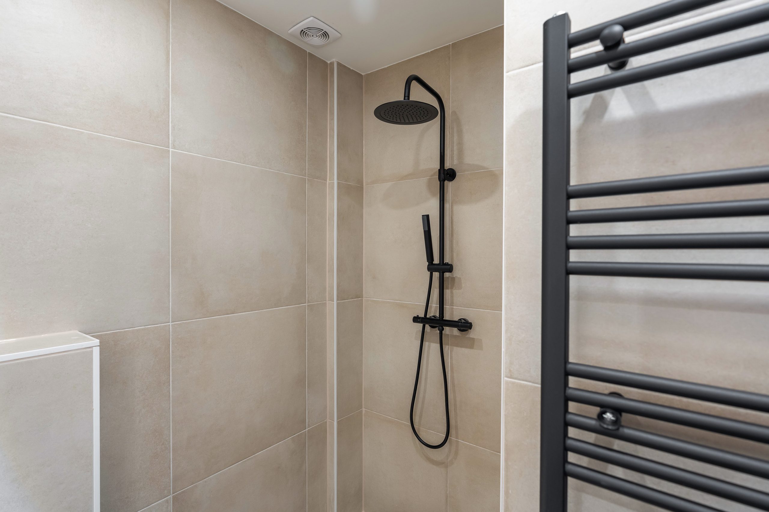 Aan de achterzijde van de woning bevinden zich twee ruime slaapkamers. Beide kamers zijn keurig afgewerkt en bieden volop mogelijkheden om naar eigen wens in te richten. Denk aan een werkkamer, hobbyruimte of zelfs een luxe inloopkast. De luxueuze badkamer is een fijne plek om volledig tot rust te komen. De badkamer is compleet uitgerust met plafondspotjes, een ruime inloopdouche met rainshower, een zwevend toilet, handdoekradiator en een elegante wastafel met dubbele kranen en een zwevend meubel. Tevens bevind zich de meterkast direct naast de voordeur aan de buitenzijde.