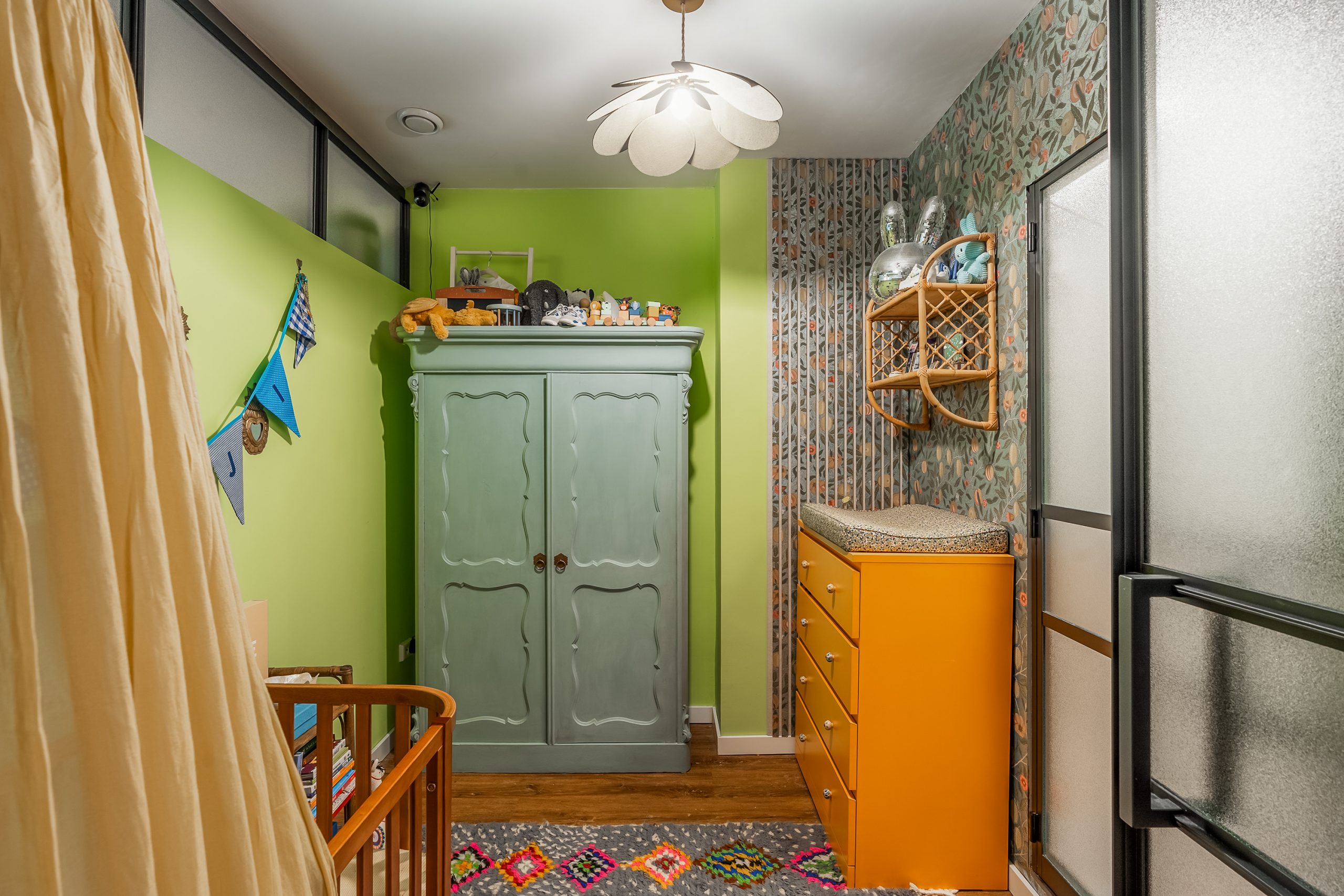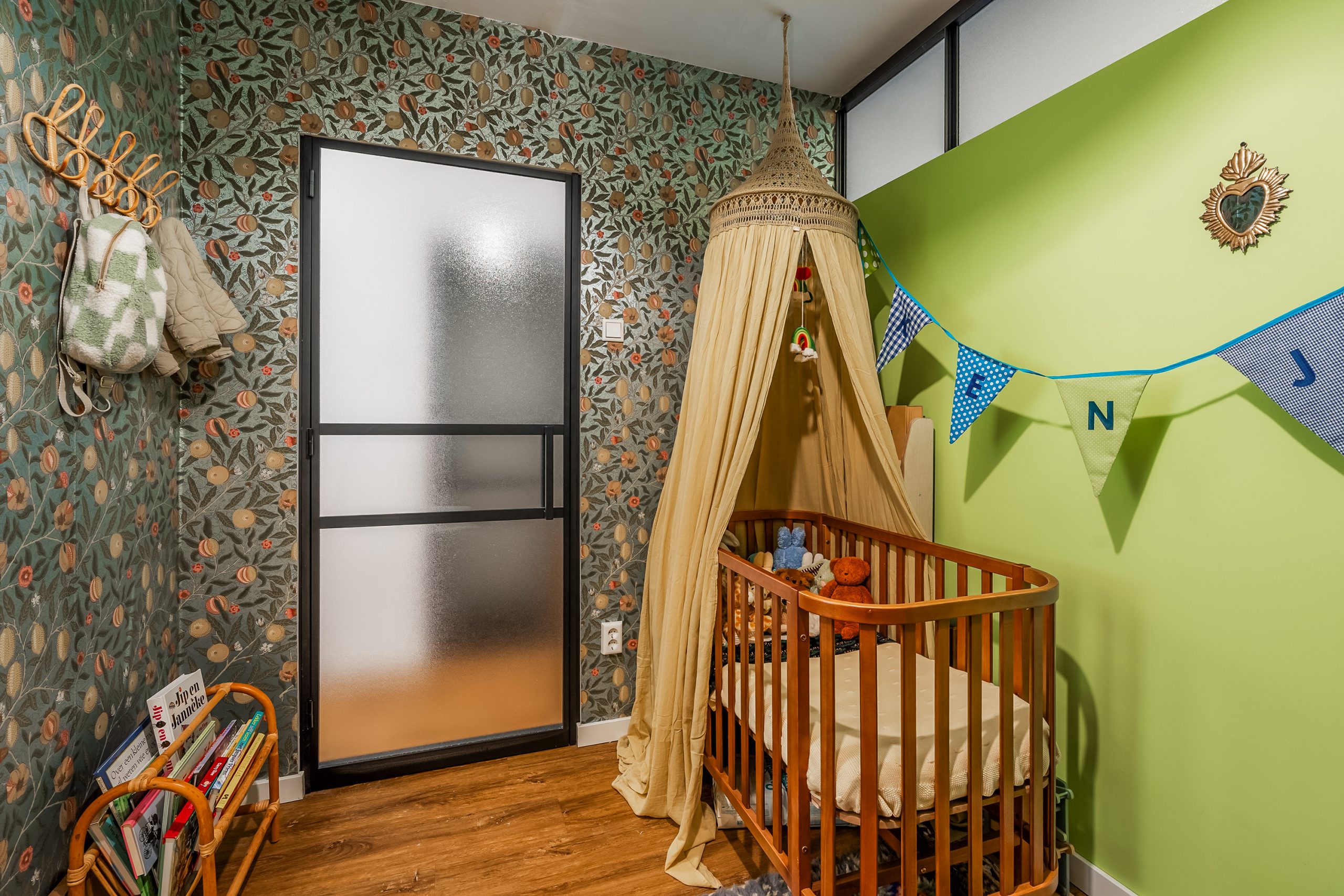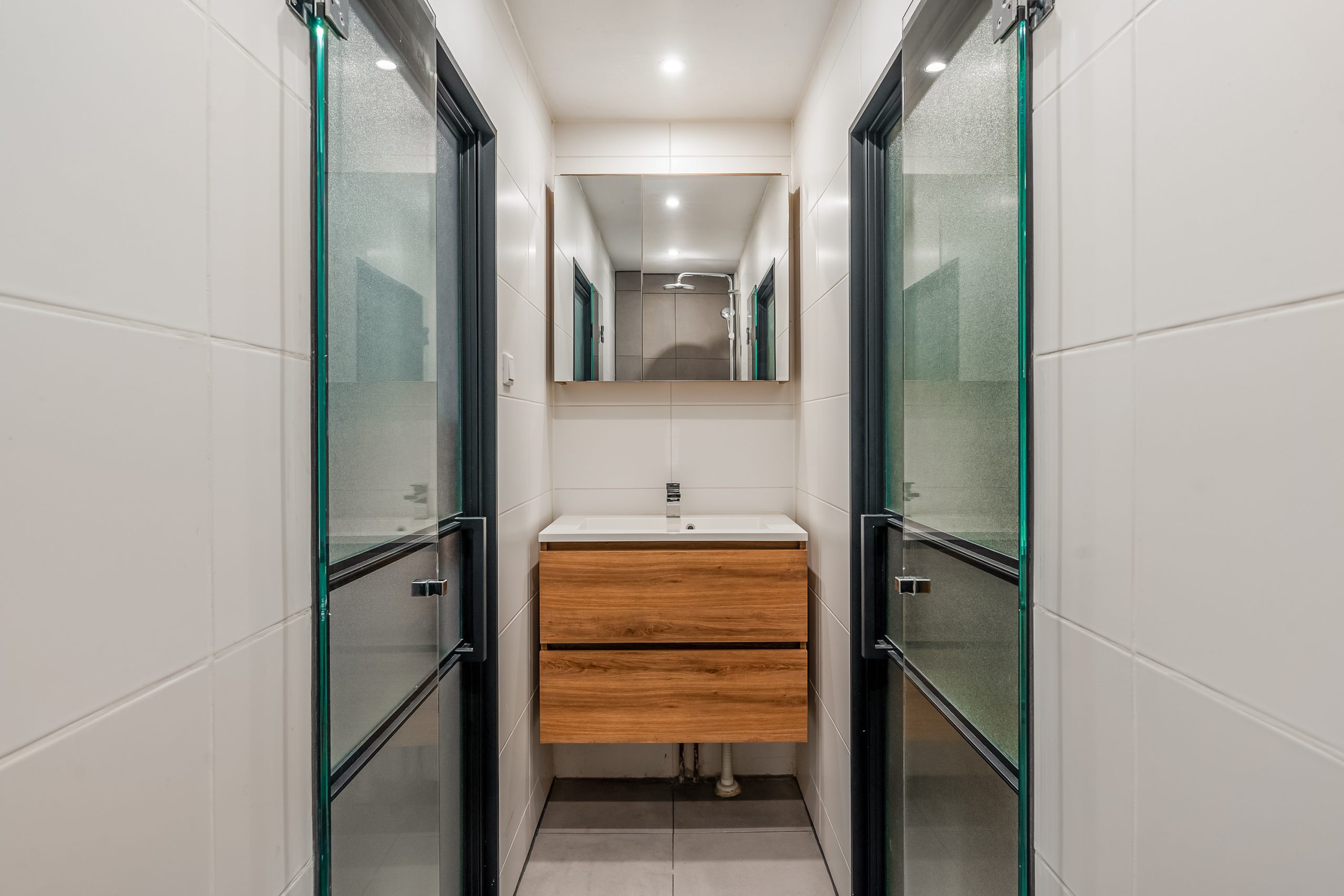 Terugkomend in de entree bereik je de twee slaapkamers, de badkamer, het separate toilet en een praktische inpandige kast met aansluitingen voor wasmachine en droger. Alle ruimtes zijn voorzien van stijlvolle glas-in-staal deuren, wat zorgt voor een toffe uitstraling. De hoofdslaapkamer is een rustige, sfeervolle plek om de dag te beginnen. De ruimte is efficiënt ingericht, met voldoende plaats voor een tweepersoonsbed en volop kastruimte. Vanuit deze kamer loop je rechtstreeks de badkamer (2018) in, die met zorg is afgewerkt en beschikt over een wastafelmeubel en een ruime inloopdouche. De tweede slaapkamer grenst eveneens aan de entree en biedt diverse inrichtmogelijkheden. Perfect als kinderkamer, werkkamer of extra kastenkamer. Zo kun je de ruimte helemaal naar eigen wens indelen.