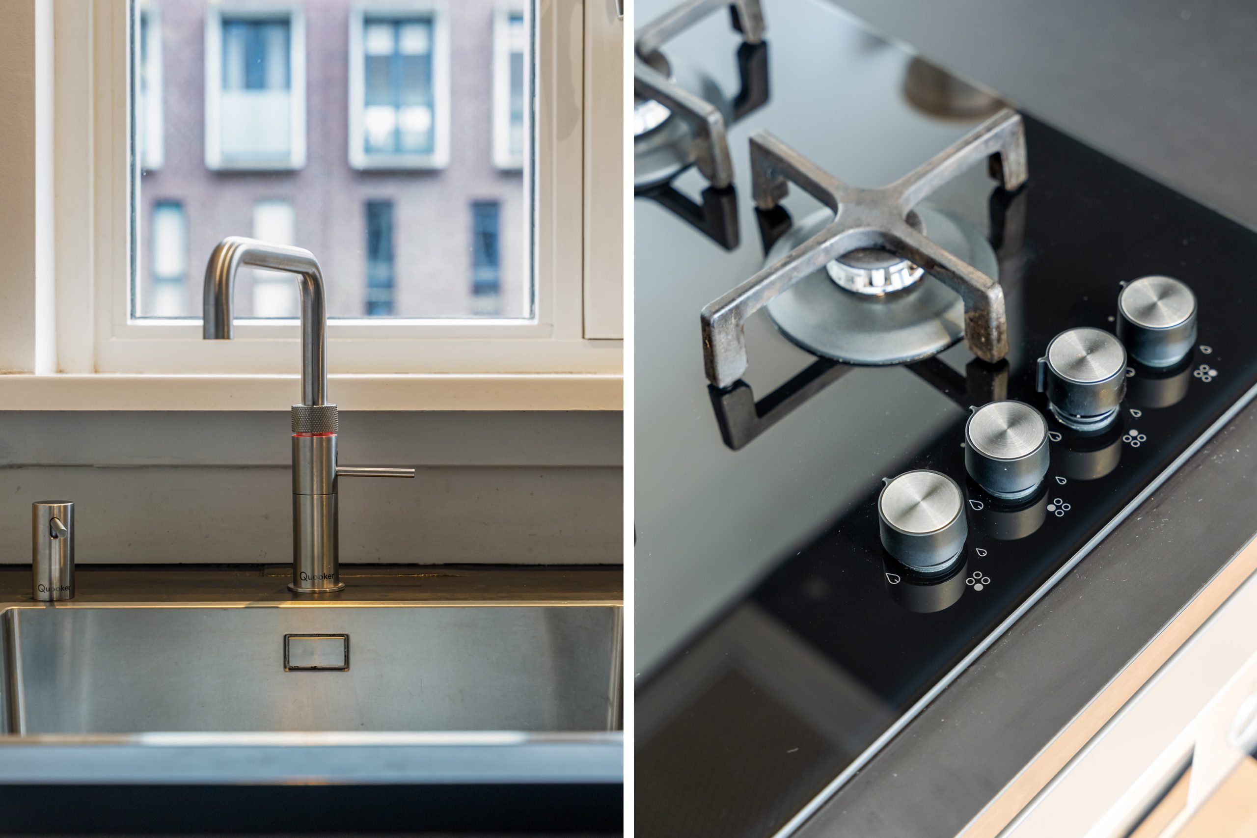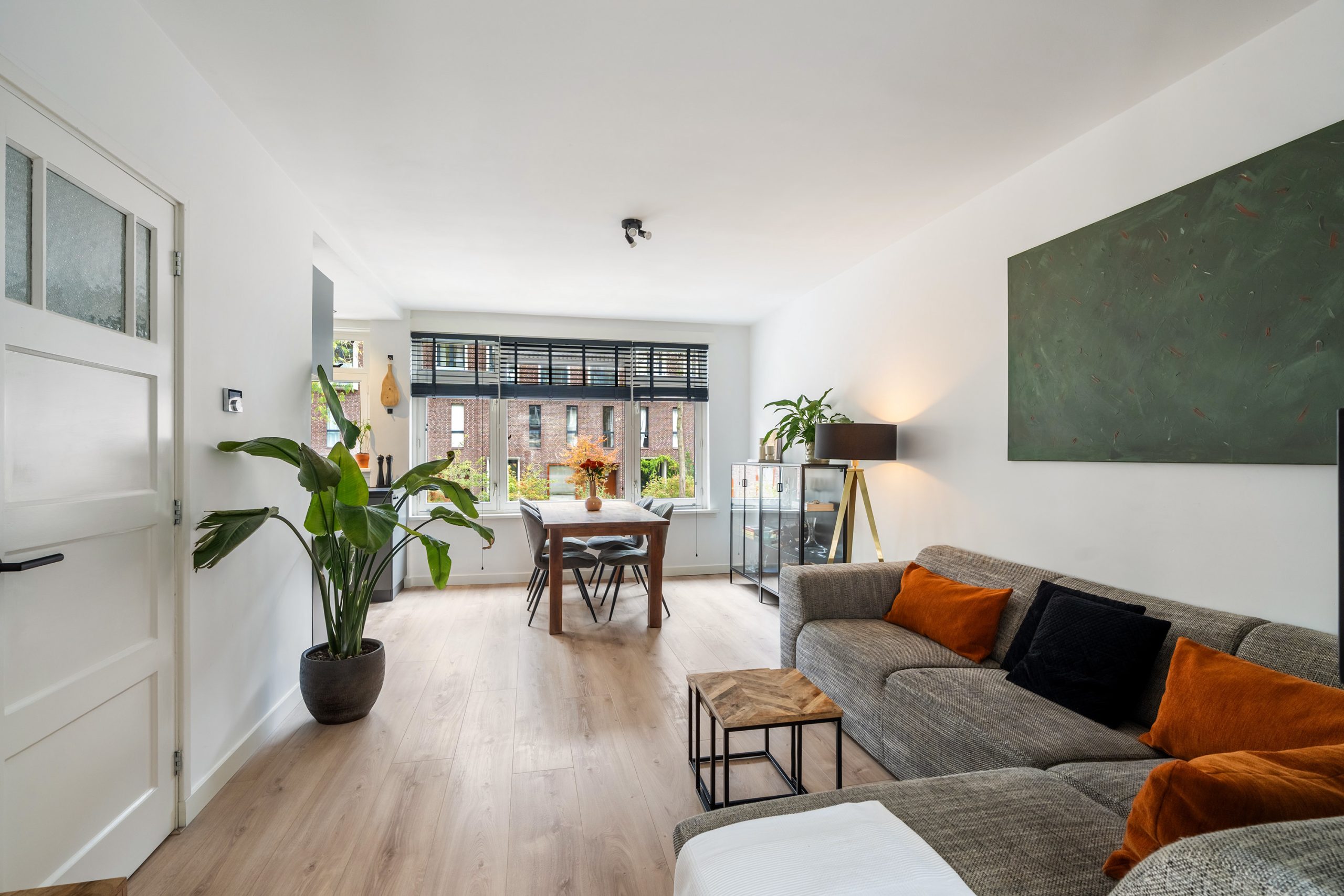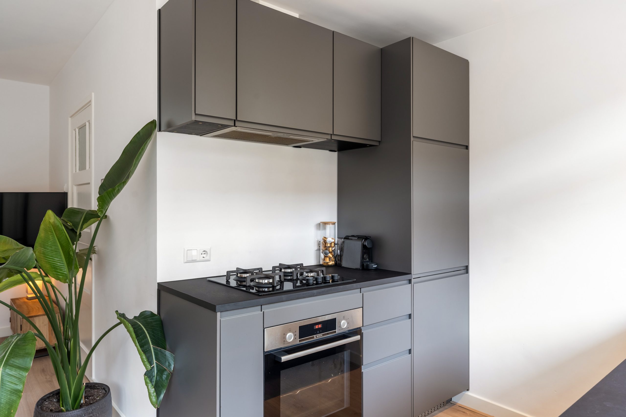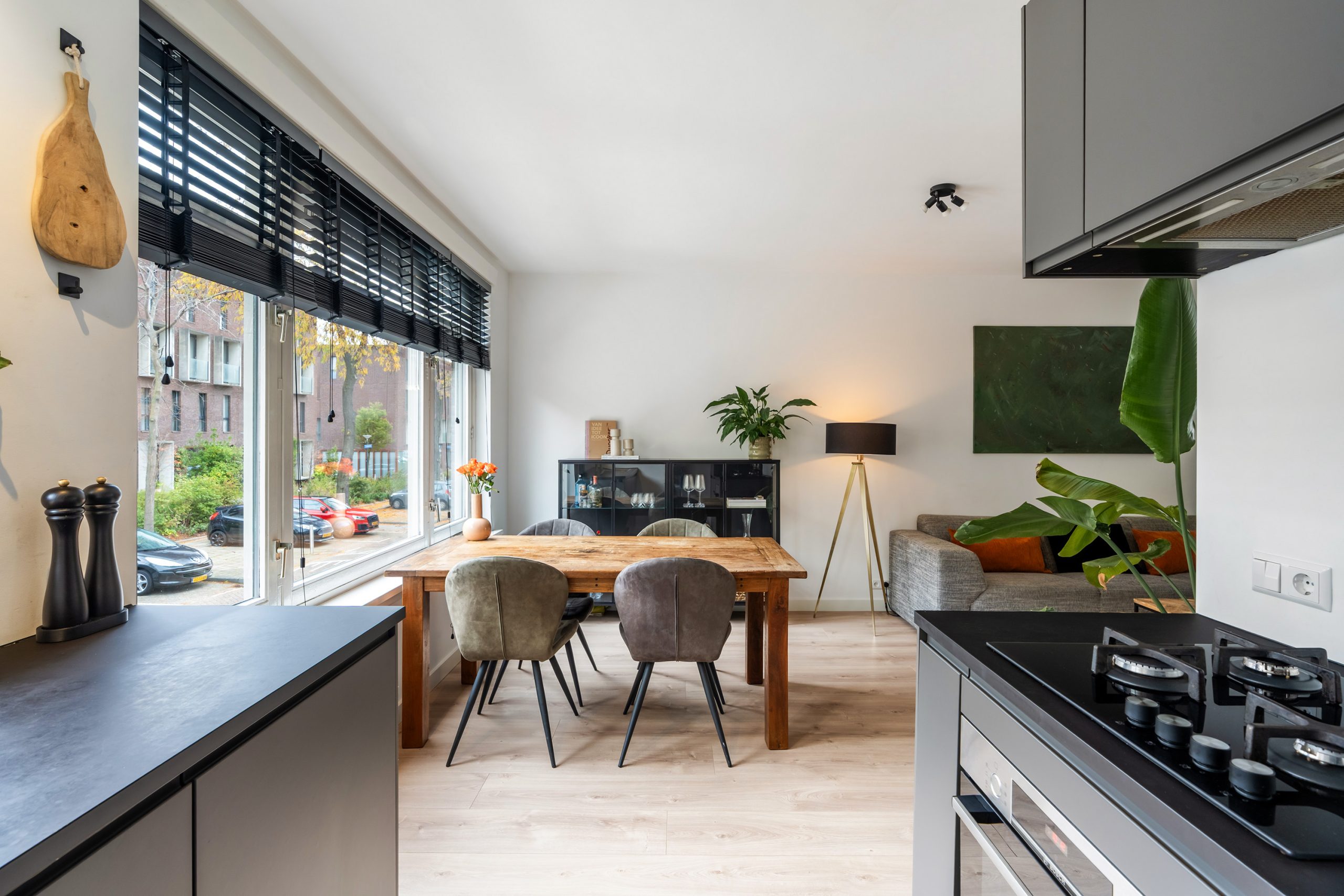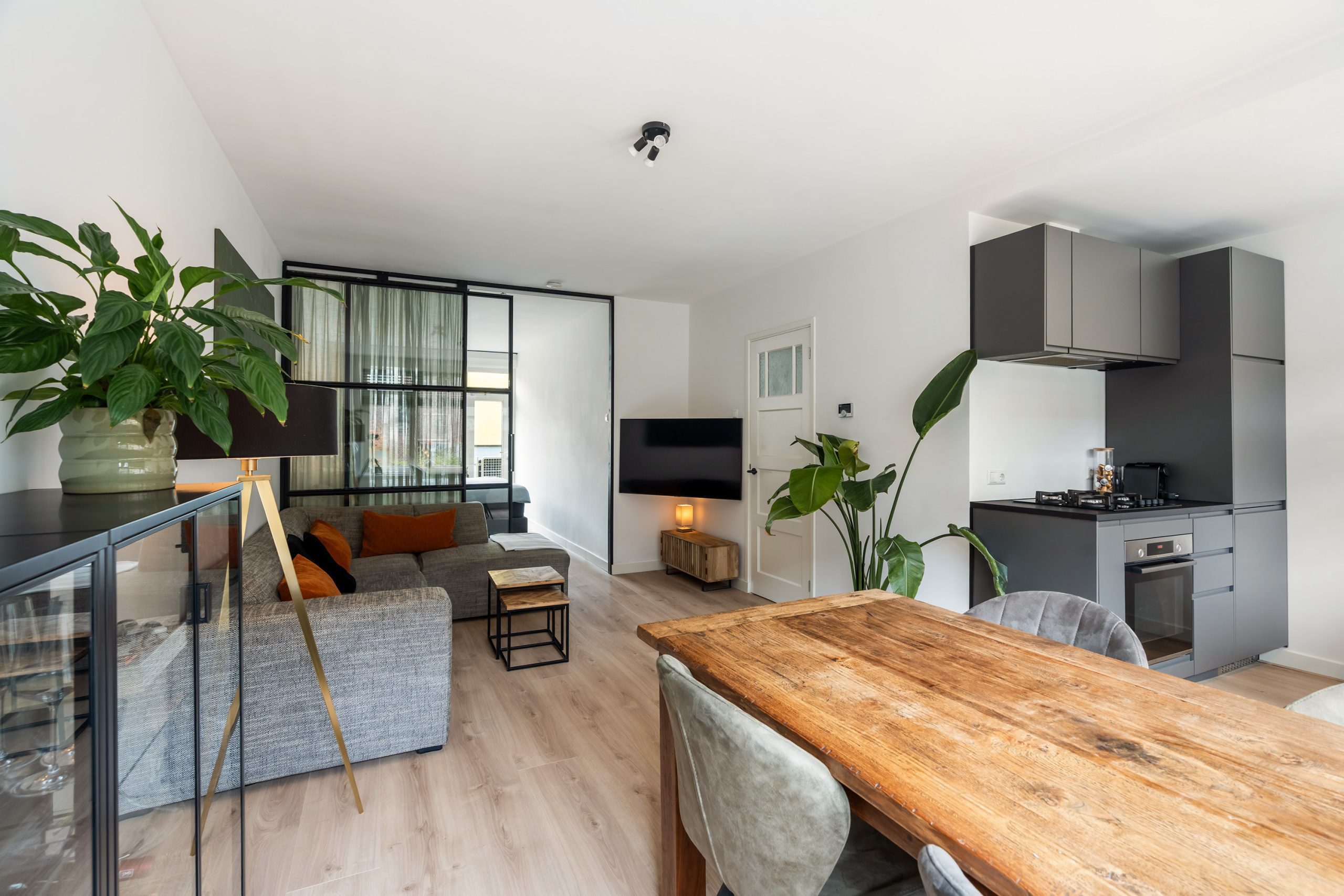 Kom binnen in de nette entree, vanwaar je toegang hebt tot de verschillende vertrekken. De prachtige laminaatvloer met vloerverwarming, strak gestucte wanden en de moderne inbouwspotjes geven direct een verzorgde en eigentijdse indruk. Hier ervaar je van een gerenoveerde woning! In de woonkamer trekt aan de voorzijde meteen de moderne open keuken de aandacht. Deze is uitgerust met een 4-pits gasfornuis, afzuigkap, oven, koel-vriescombinatie, vaatwasser en een Quooker. Een stijlvolle, luxe én praktische keuken, van alle gemakken voorzien. Terwijl hier heerlijke maaltijden worden bereid, is er aan de eettafel volop ruimte voor gezellig samenzijn. Koken en genieten komen hier perfect samen!