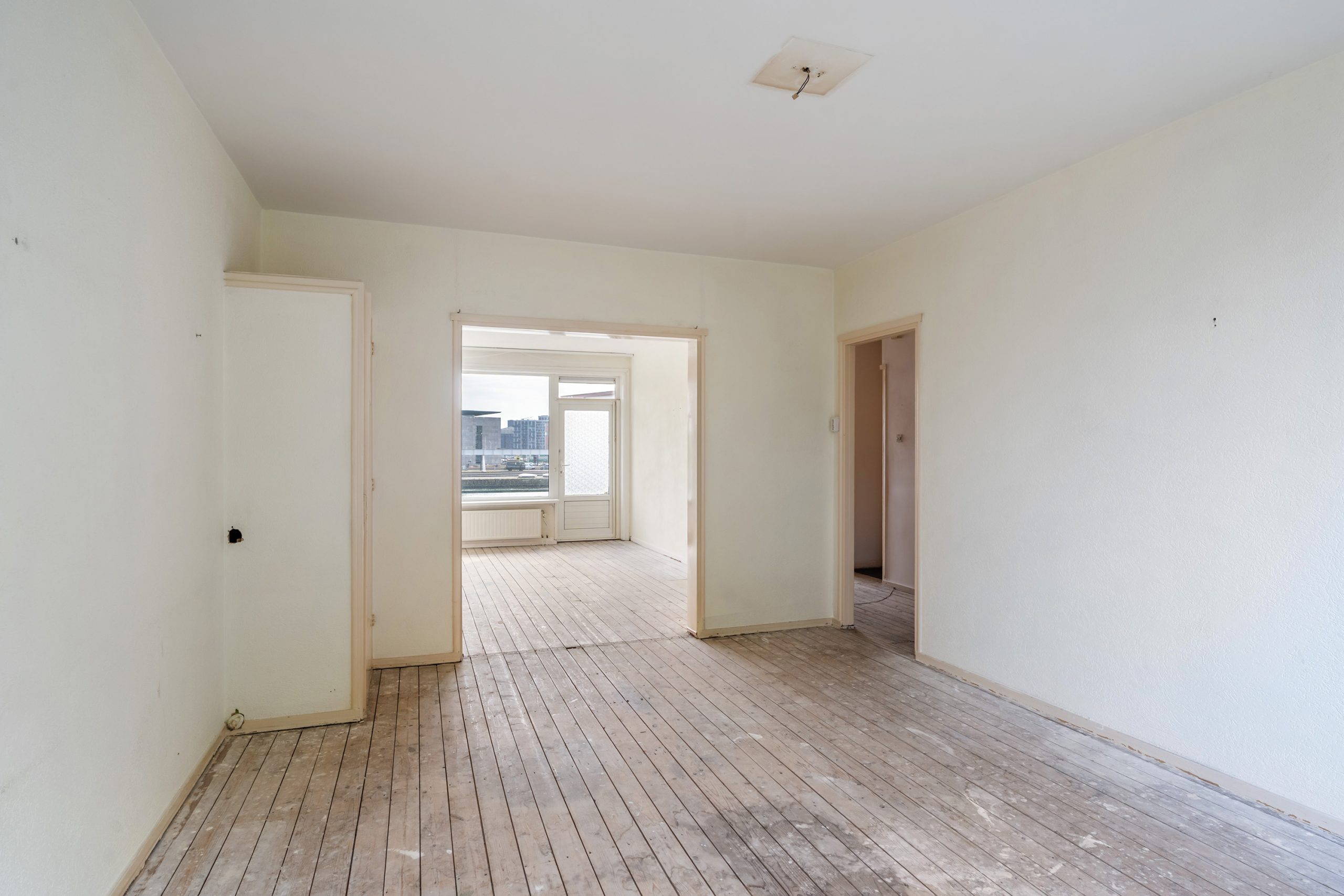 Binnenkomend in de entree welke toegang geeft tot alle vertrekken. Meteen bij binnenkomst in de living valt het royale licht op dat vanuit beide zijden van de voormalige en suite woonkamer naar binnen stroomt. Grote raampartijen zorgen hier voor een levendige sfeer en een geweldig uitzcht, terwijl je de ruimte geheel naar eigen smaak kunt inrichten. Zie jij jezelf al aan een lange eettafel zitten, omringd door vrienden of familie of relaxen op een grote bank? De living strekt zich uit over de volledige lengte van het appartement en biedt daarom talloze mogelijkheden. Een royale eethoek, een fijne zithoek of juist een extra slaapkamer realiseren? Het kan hier allemaal! Vanaf de voorzijde stap je op het balkon welke gelegen is op het zuidoosten: een plek waar je kunt wegdromen met een glas wijn in de hand en uitzicht op het indrukwekkende Rotterdamse stadsbeeld. Wat een manier om de dag af te sluiten!