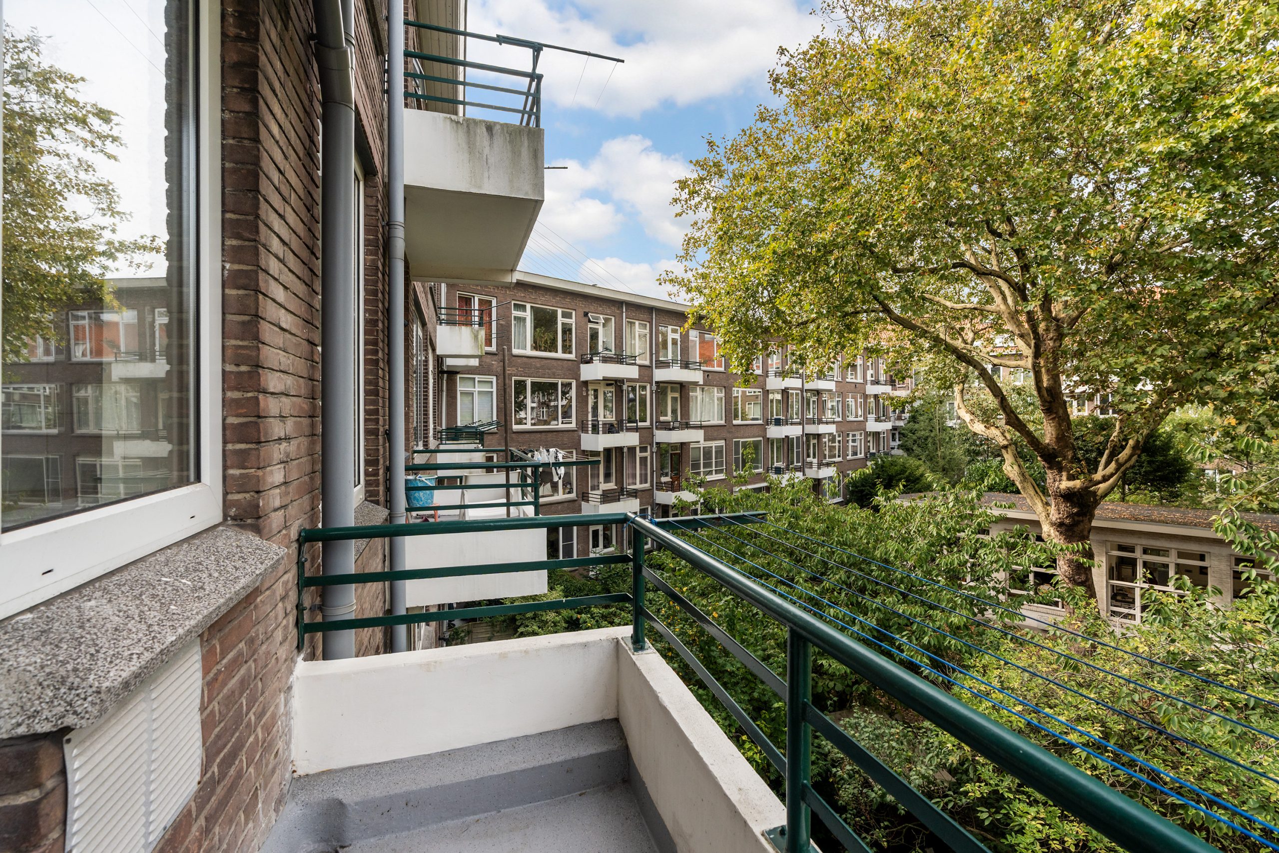 Aan de achterzijde van de woning ligt de keuken, die is uitgerust met een kookplaat, afzuigkap en koel-/vriescombinatie. Vanuit hier bereik je het tweede balkon, waar je 's ochtends in alle rust geniet van je eerste kopje koffie, terwijl de stad langzaam ontwaakt.