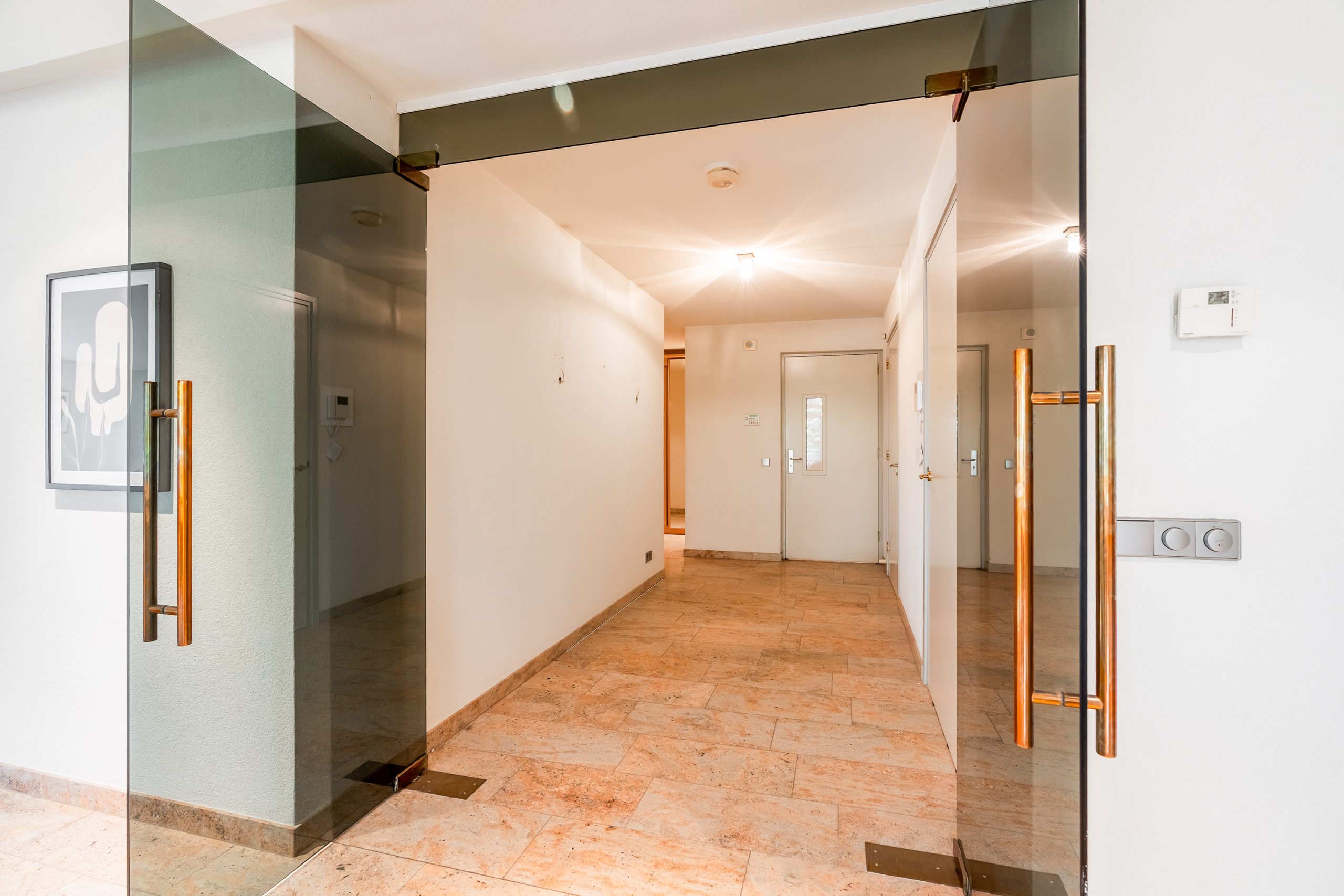 Via de lift bereikt u de algemene hal op de derde verdieping. Bij binnenkomst wordt direct duidelijk hoe bijzonder deze woning is. De ruime hal leidt naar de diverse vertrekken.