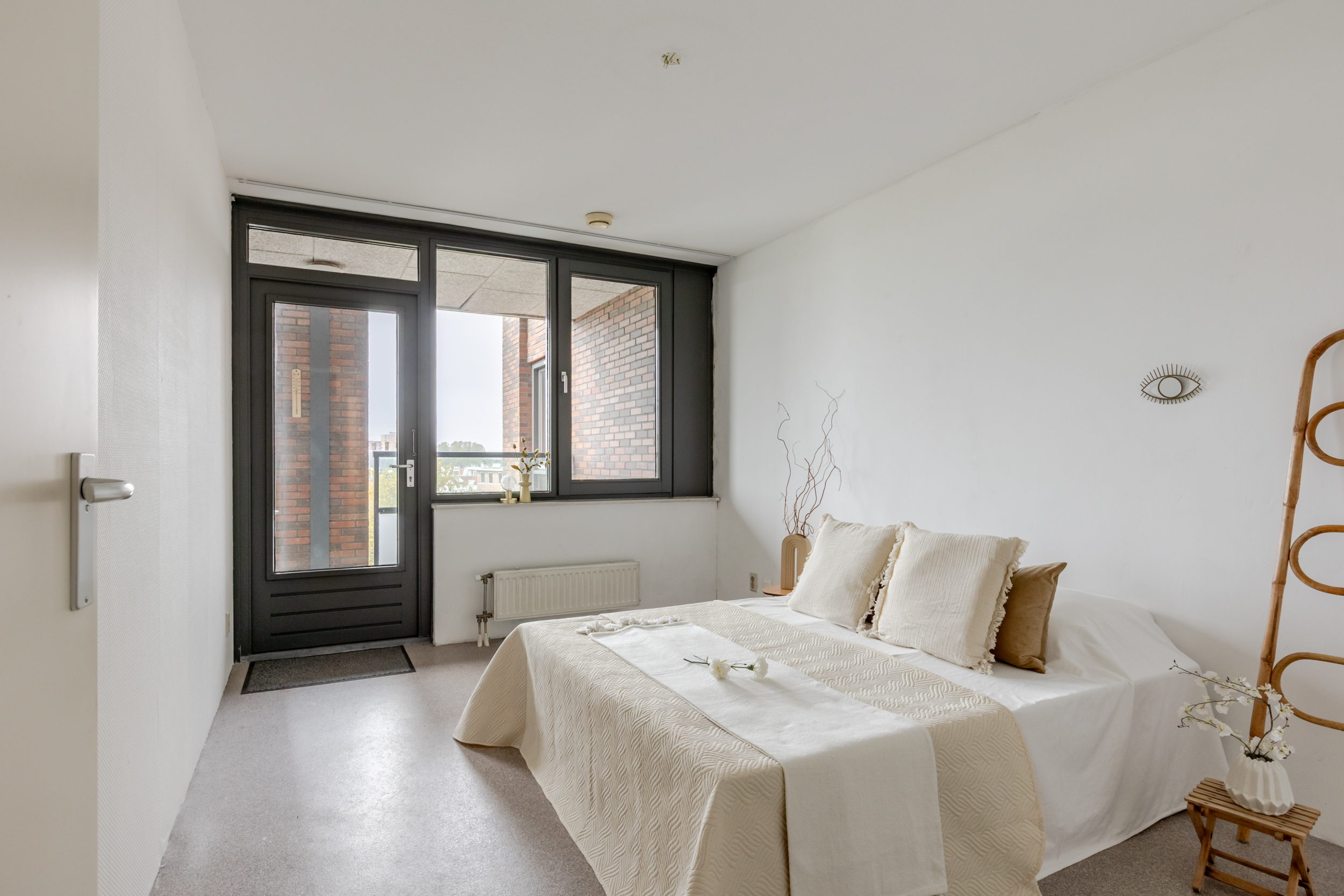 De woning beschikt over twee slaapkamers, waarvan de grootste direct toegang biedt tot het overdekte balkon. Een heerlijke buitenruimte waar je het hele jaar door van kunt genieten. Dankzij de ligging aan de westzijde is dit de ideale plek om aan het einde van de dag nog even neer te strijken met een goed glas wijn, terwijl de zon langzaam achter de stad zakt.