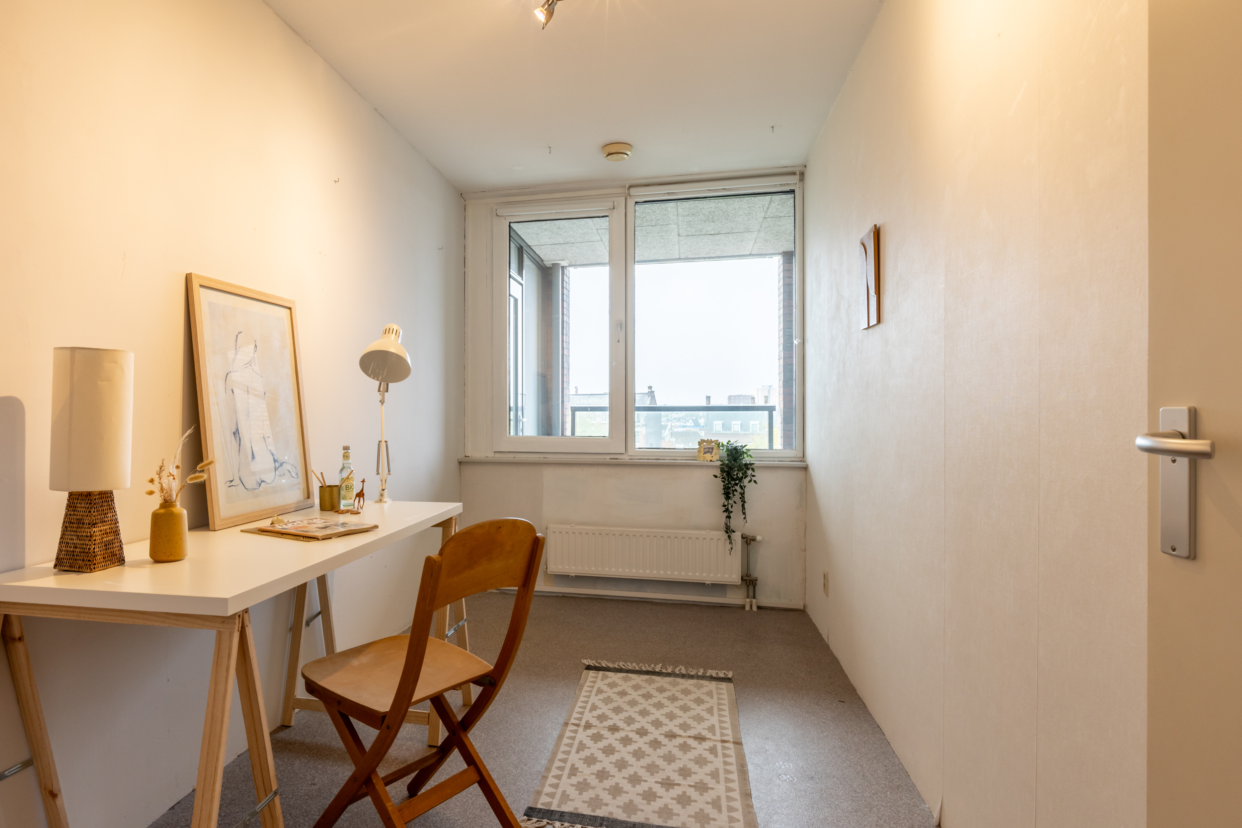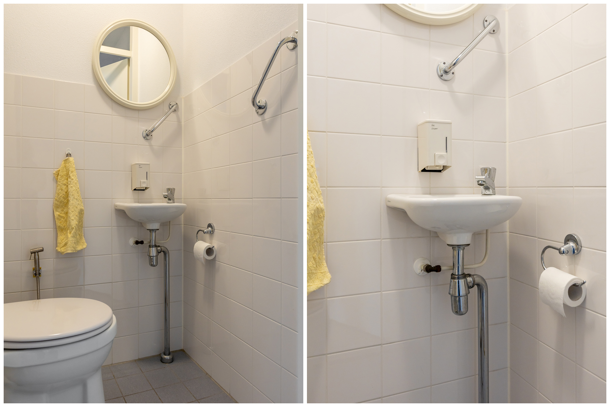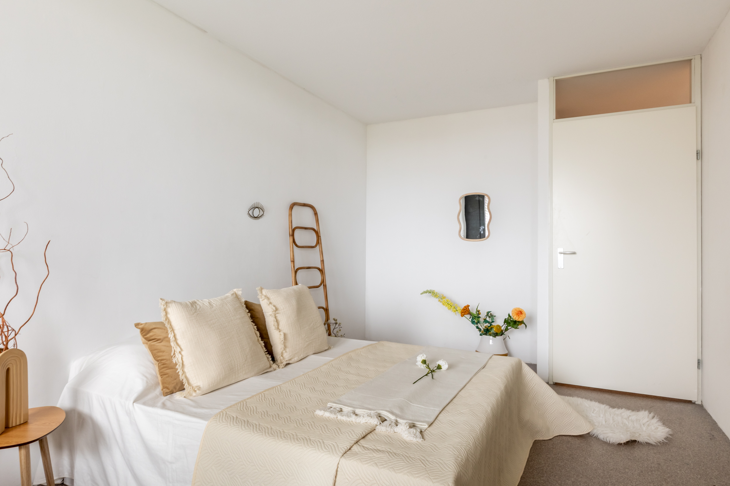 De tweede slaapkamer is ideaal als logeer- of werkkamer — de perfecte thuiswerkplek met veel daglicht. De badkamer is praktisch ingedeeld en verrassend ruim van opzet. Hier vind je alles wat je nodig hebt voor een comfortabel begin en einde van de dag: een ligbad, een aparte douche, een wastafel en een design radiator
