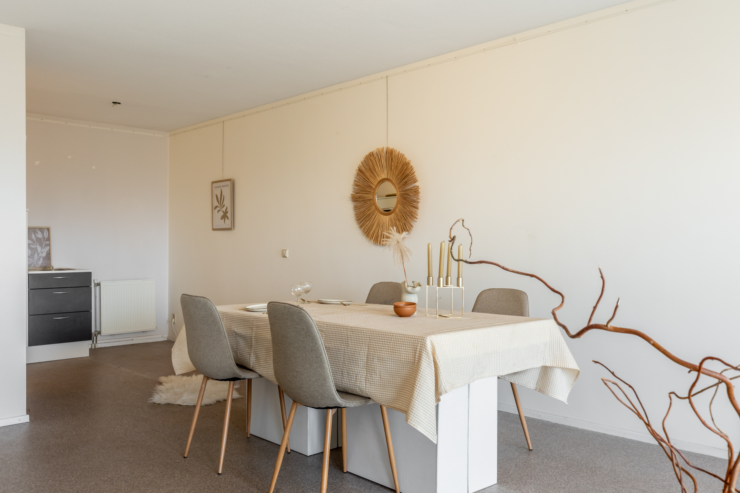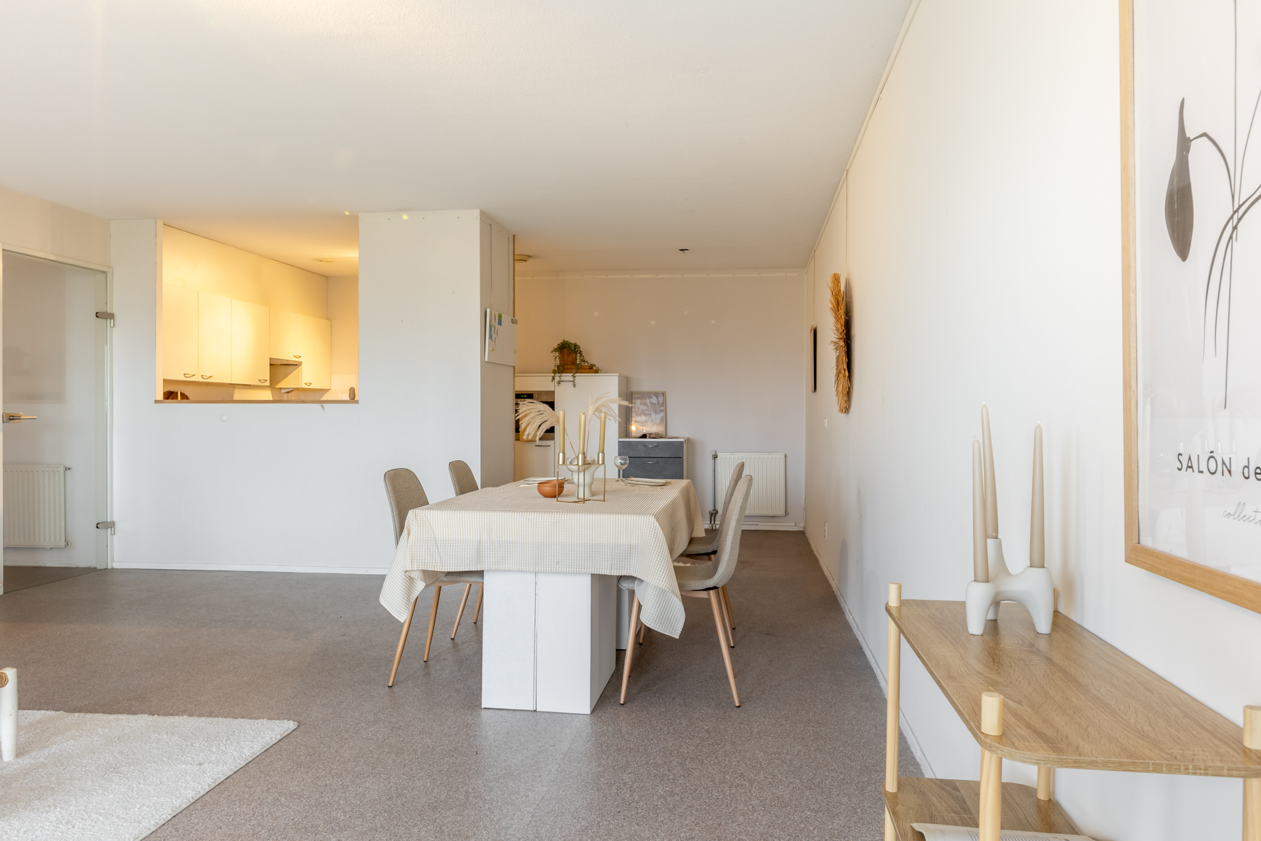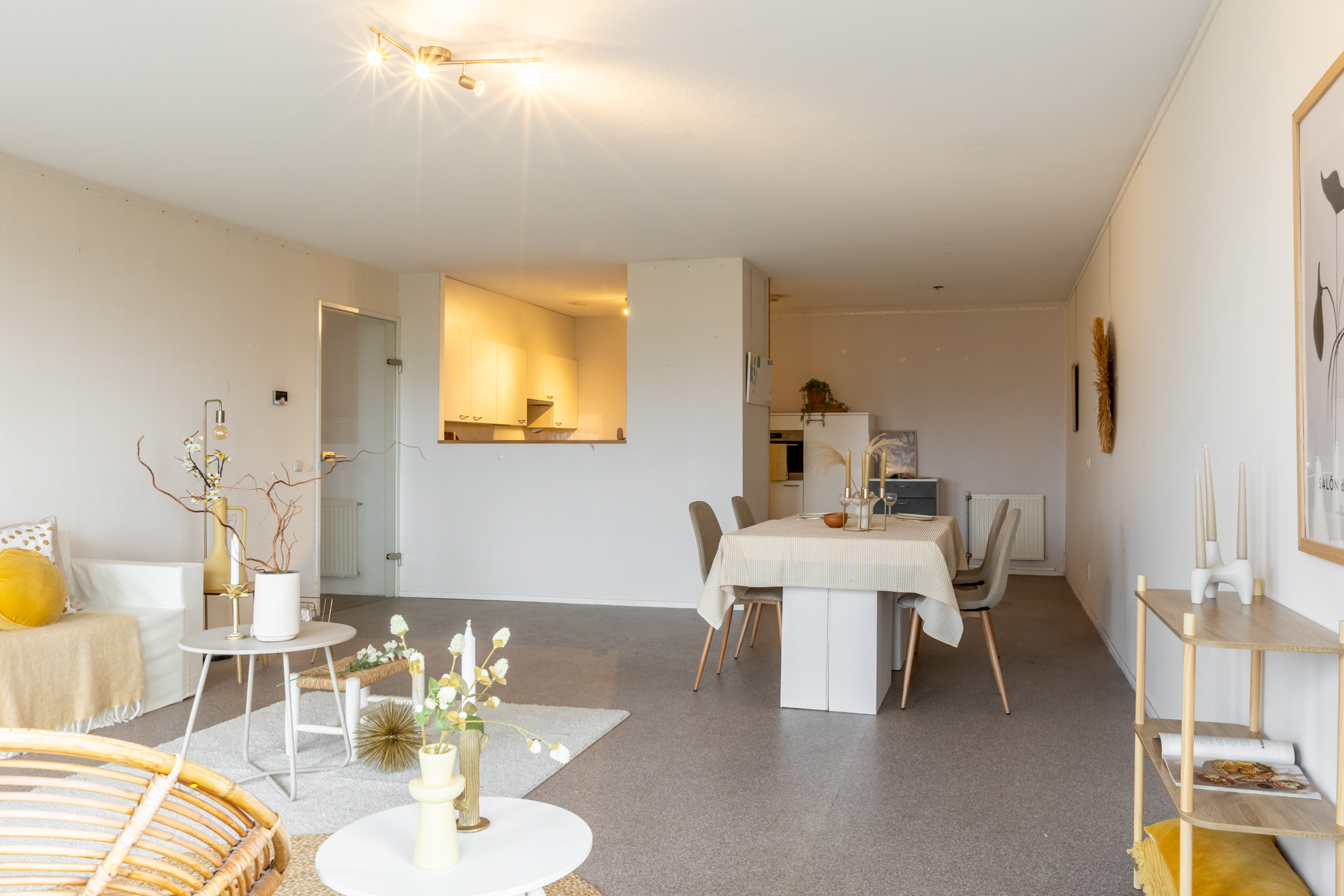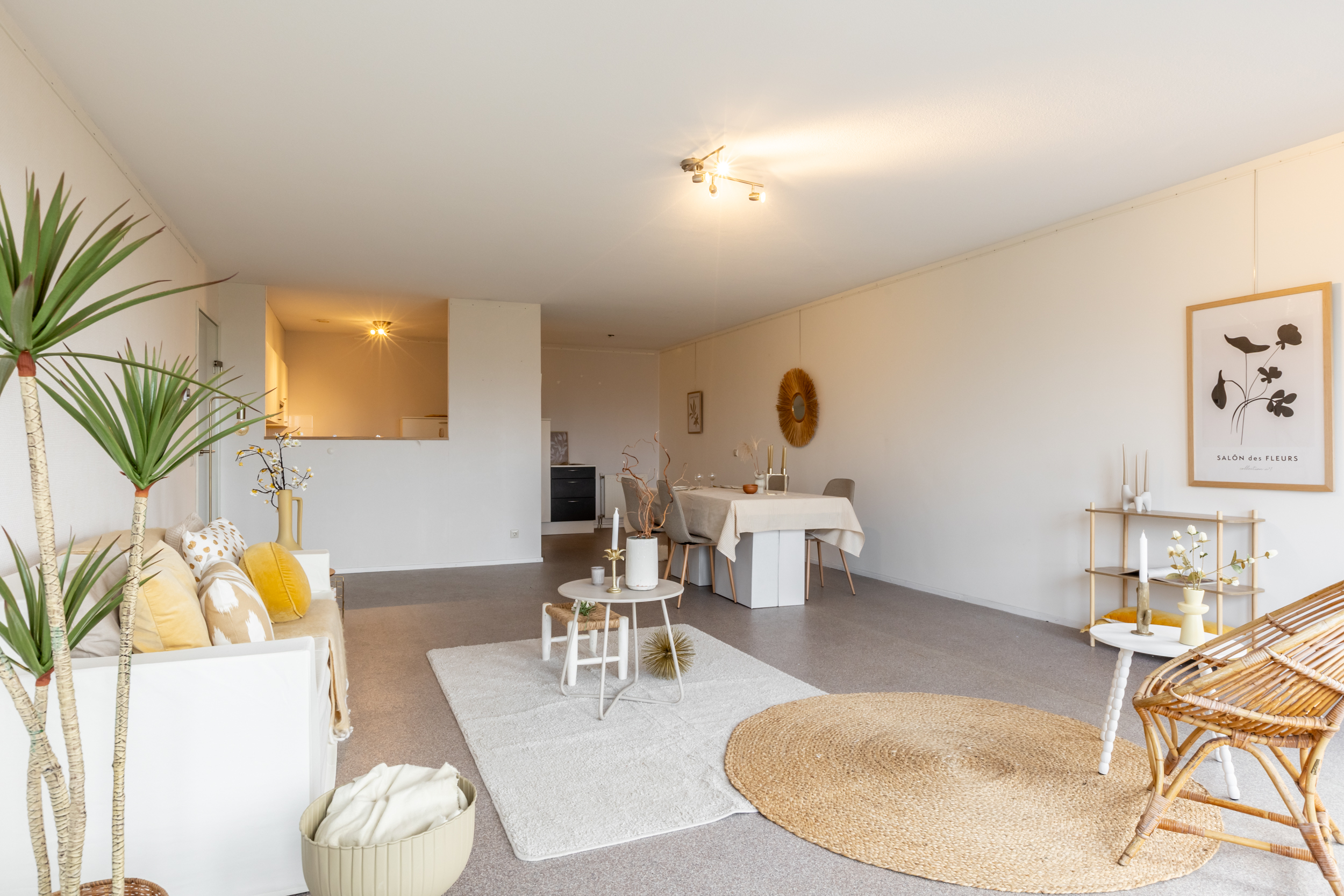 Zodra je binnenkomt, voel je het: dit appartement ademt ruimte. De royale woonkamer strekt zich uit over de volle breedte van de woning en heeft grote raampartijen die zorgen voor een zee van licht en een wijds uitzicht over de skyline van Rotterdam. Er is meer dan genoeg plek voor een comfortabele zithoek én een royale eettafel, perfect voor gezellige etentjes met vrienden.