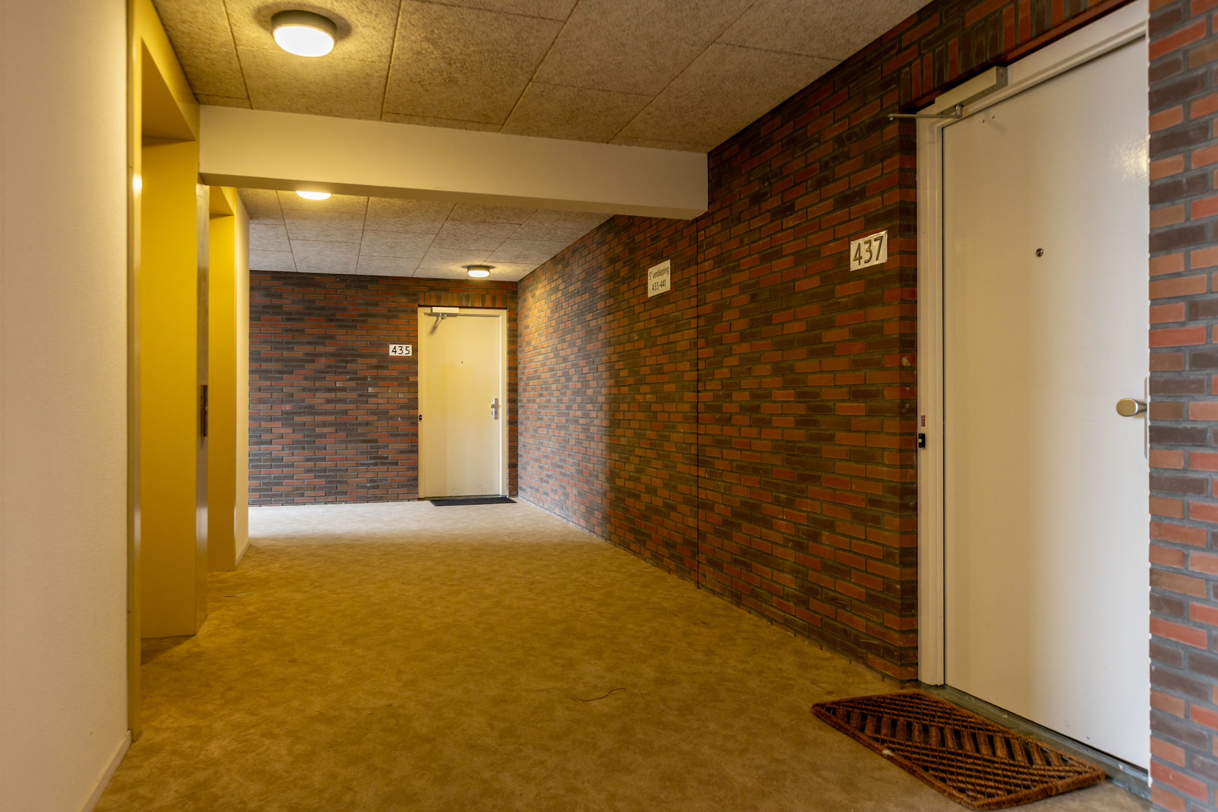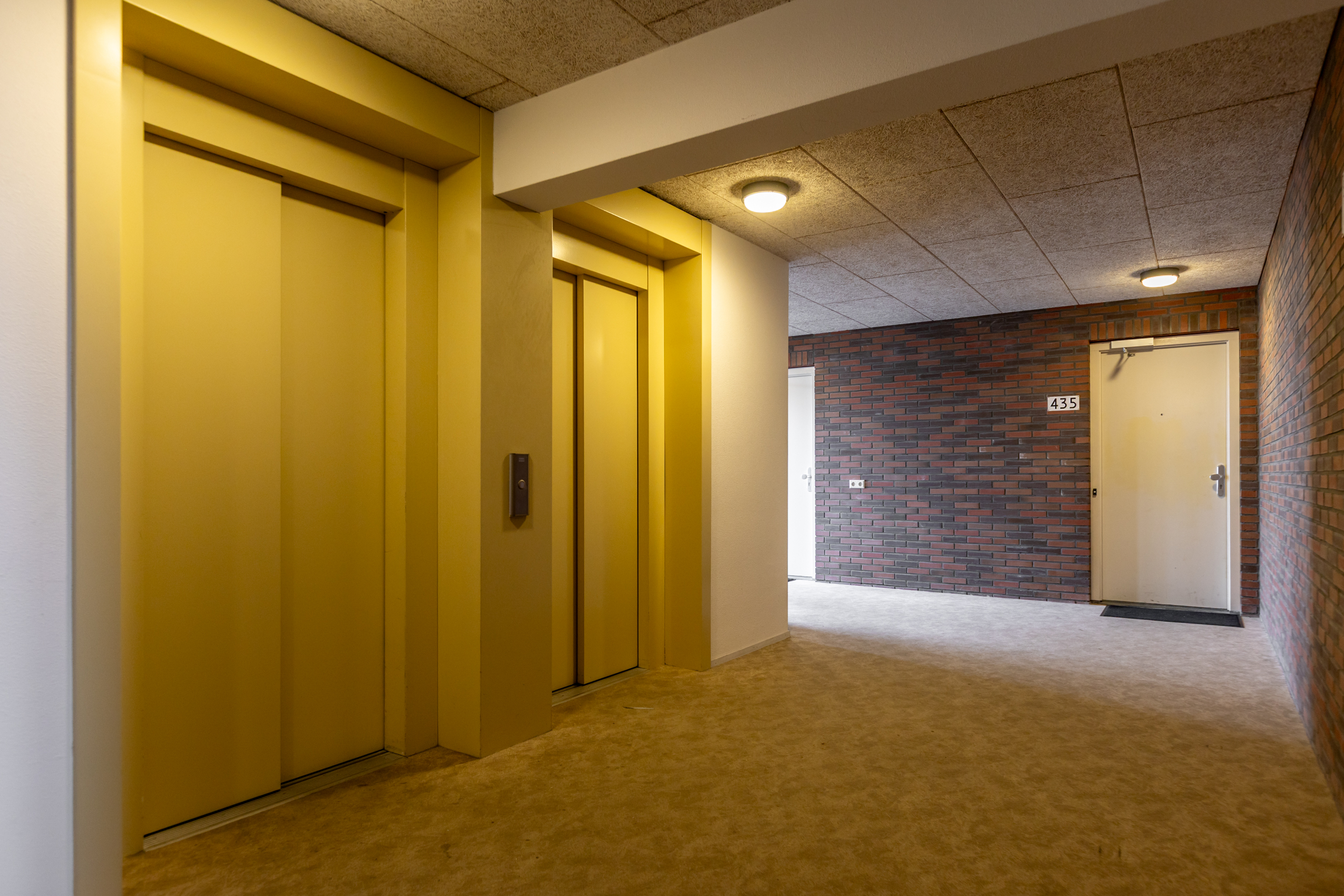 Centrale entree met liften en trapopgang naar de verdiepingen.