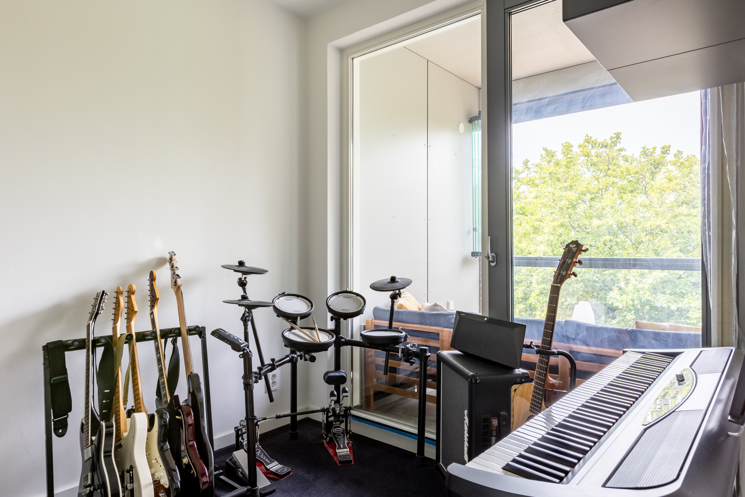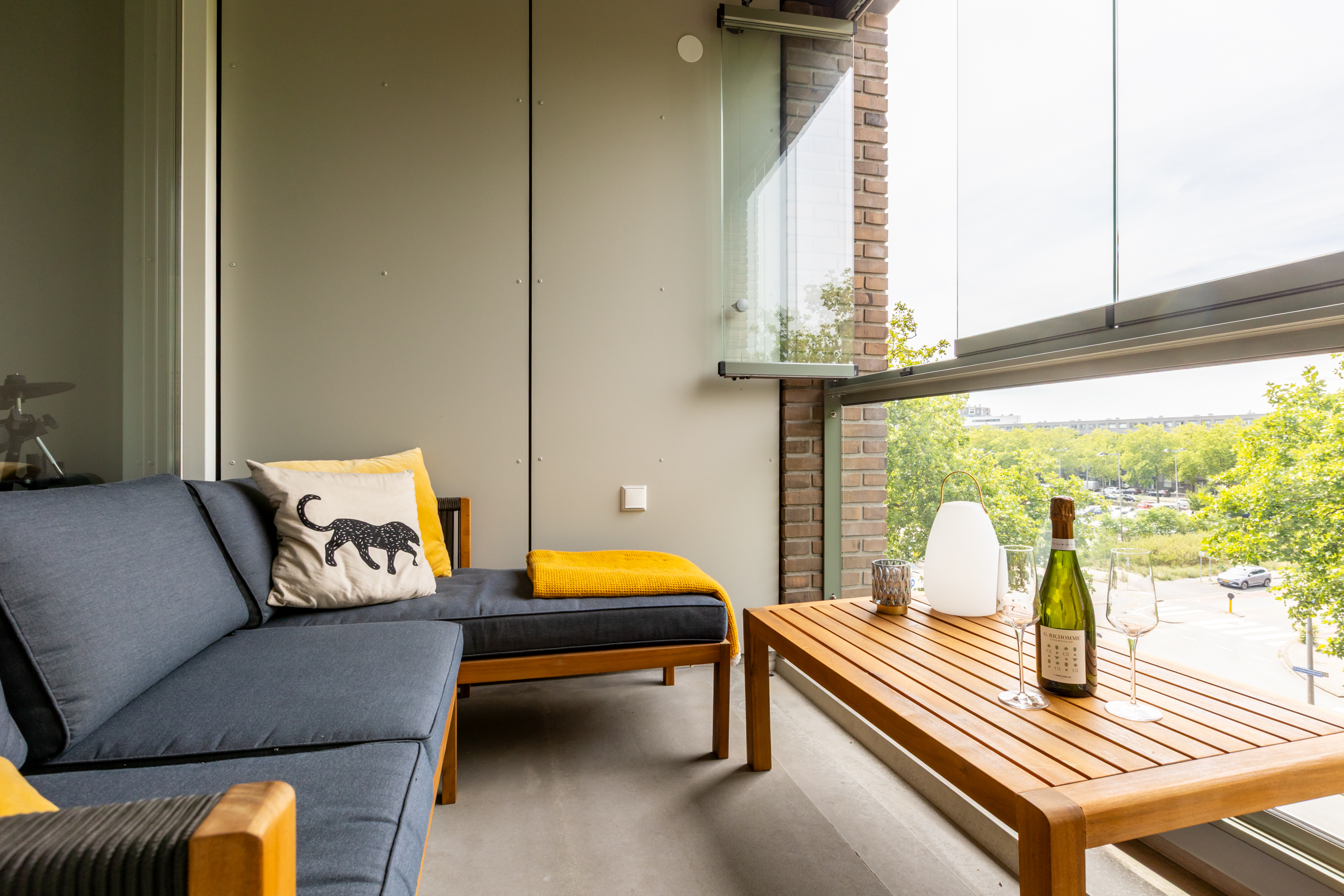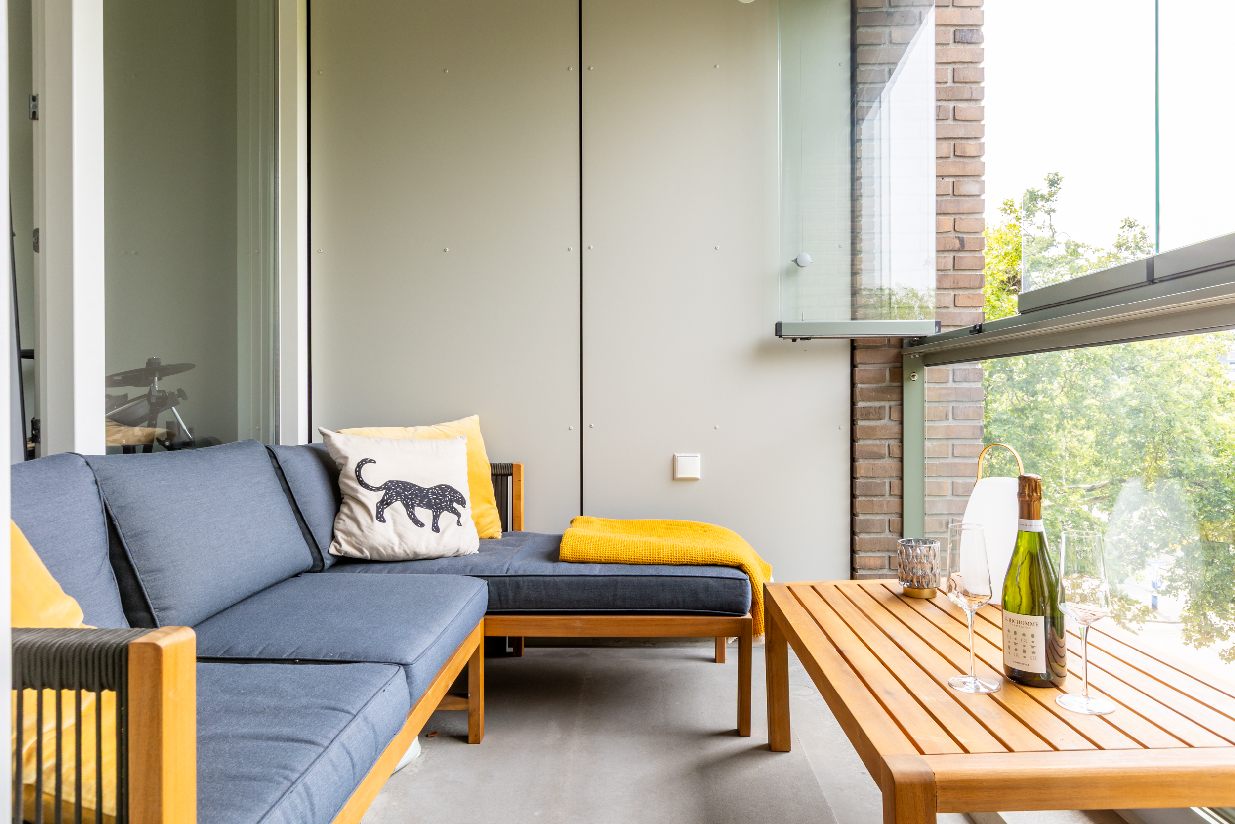 Aangrenzend aan de woonkamer bevindt zich het zonnige balkon op het zuidwesten, waar je in alle rust kunt genieten van de middag- en avondzon.