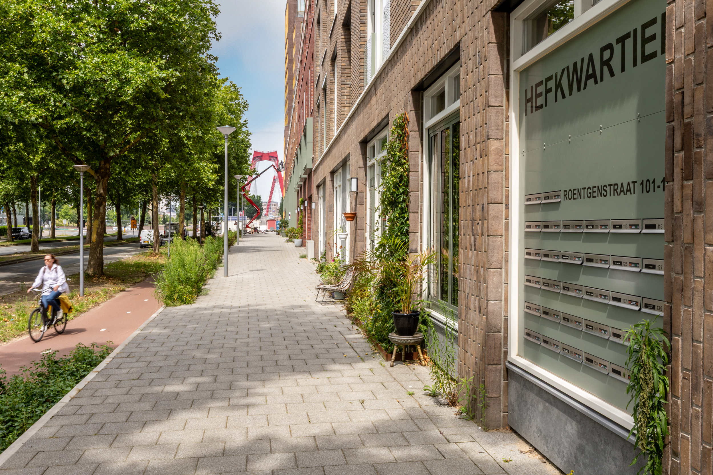 De woning ligt in de buurt Feijenoord, waar je altijd omringd bent door water, ruimte en groen. Je woont er heerlijk rustig, in een wijk vol ambitie en ontwikkeling. En toch ben je binnen enkele minuten in het centrum of bij diverse voorzieningen. Op de fiets zit je al binnen 5 minuten op de Wilhelminapier, met hotspots als de Foodhallen en Hotel New York. Kook je liever zelf? Dan is het goed om te weten dat de Jumbo in het Entrepotdok, op slechts 5 minuten lopen, het hele jaar door geopend is. Ook fijn: het Nassauhavenpark ligt letterlijk om de hoek, met prachtige oude bomen, goed onderhouden grasvelden, speeltuinen en zitjes. De wijk uit? Binnen 10 minuten fiets je naar het centrum en met de bus doe je daar nog geen 7 minuten over. Met de trein vanaf Station-Zuid of via de snelweg zit je bovendien zo de stad uit. Alles binnen handbereik dus!