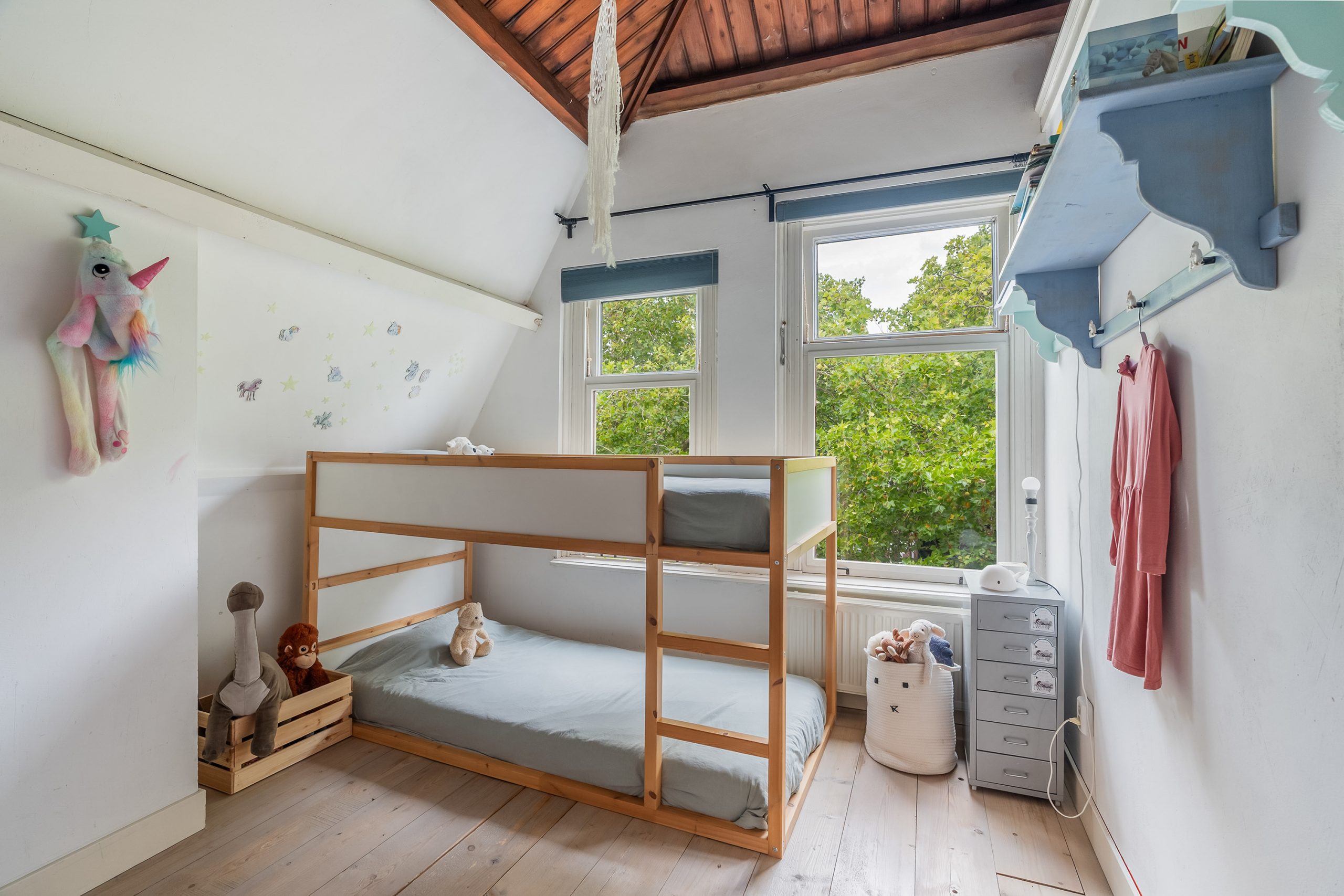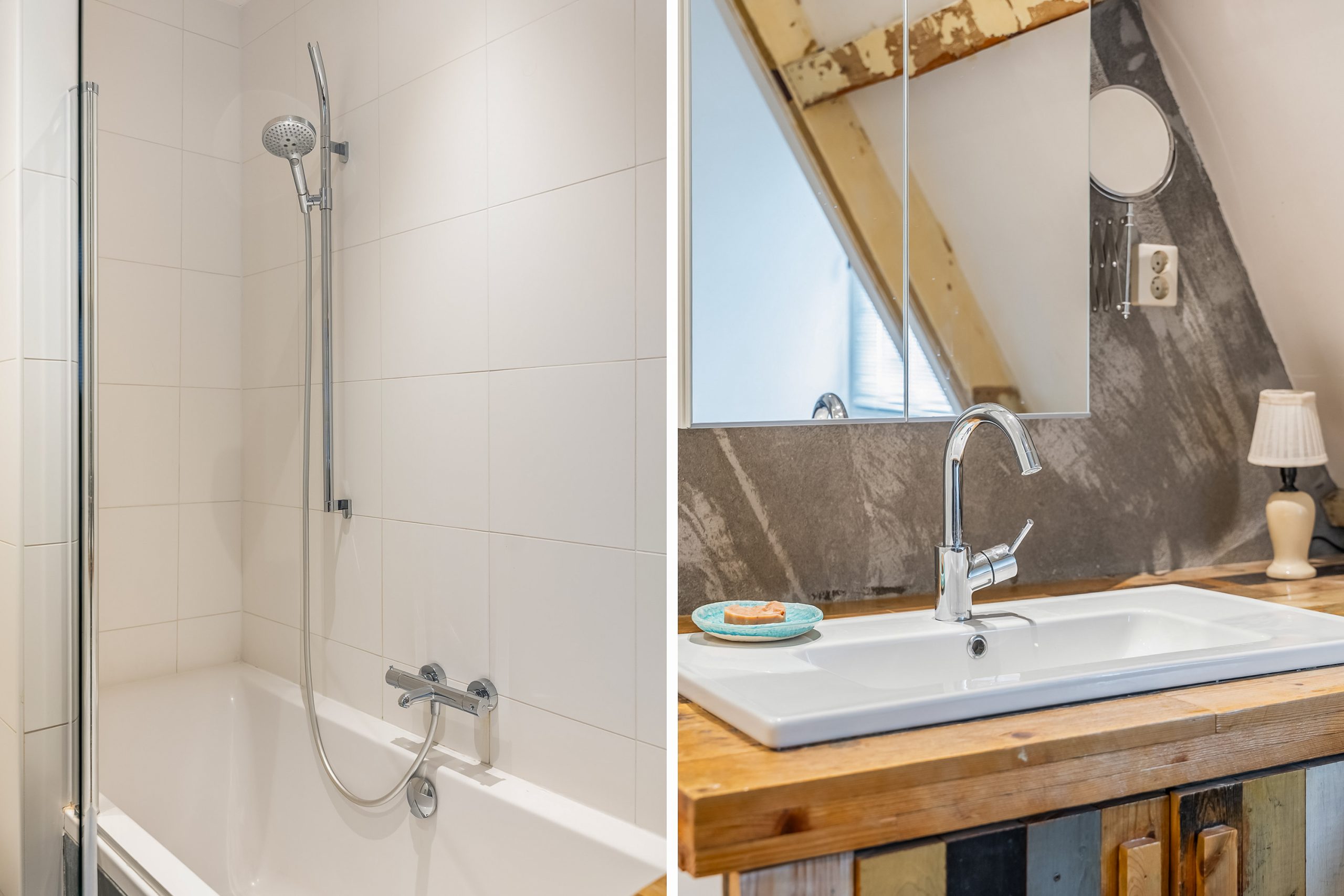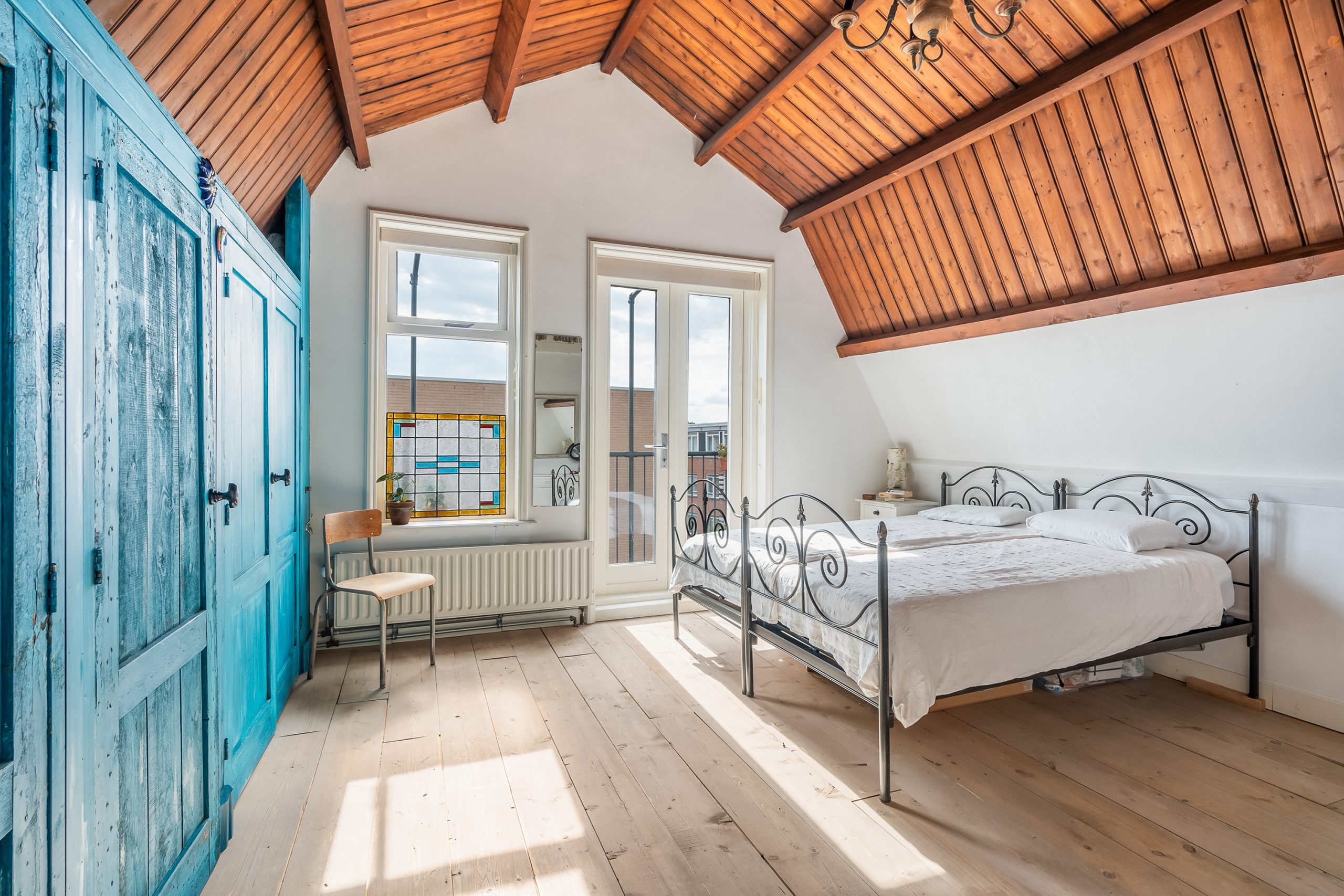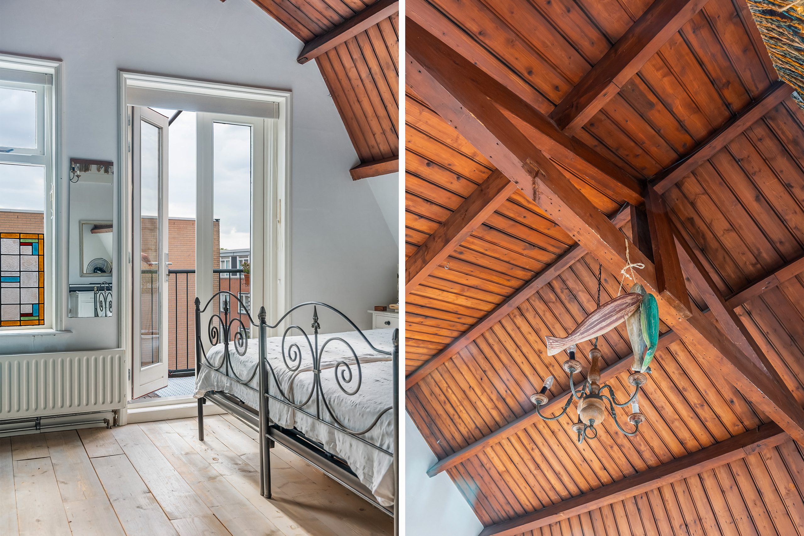 Op deze etage bevinden zich drie slaapkamers. De master bedroom is ruim en licht, de houten balken en mansardedak geven de kamer een unieke uitstraling. Er is voldoende ruimte voor een tweepersoonsbed en kasten, als kers op de taart heeft deze kamer toegang tot het zonnige balkon, gelegen op het zuidwesten! De ideale plek om in de namiddag en avond te genieten van de zon. De twee andere slaapkamers zijn naar wens in te richten, perfect als kinderslaapkamer, logeer-, kantoor- of hobbykamer. De badkamer is voorzien van alle gemakken zoals een ligbad, aparte douche, wastafel met meubel, design radiator en tweede toilet.