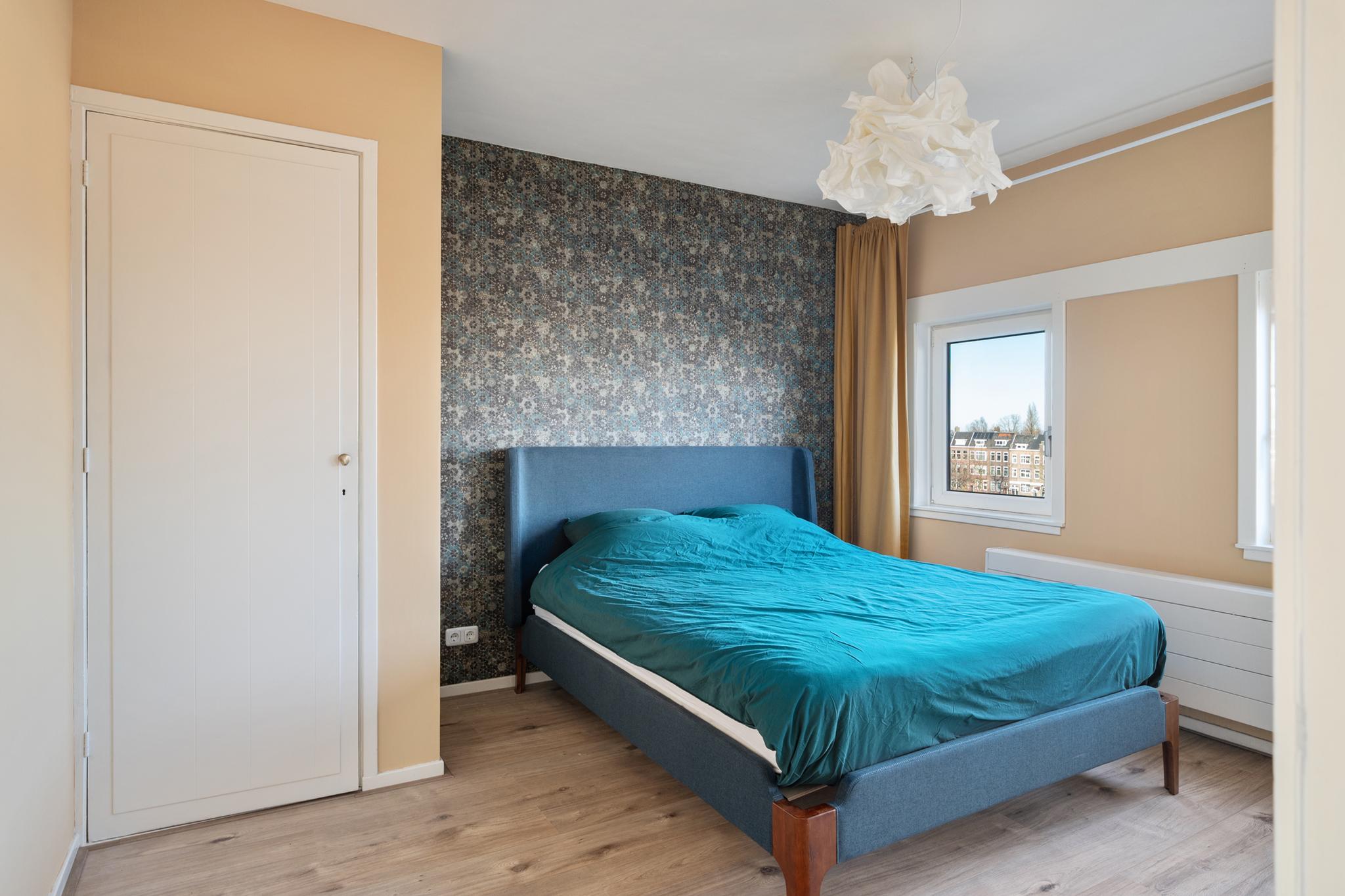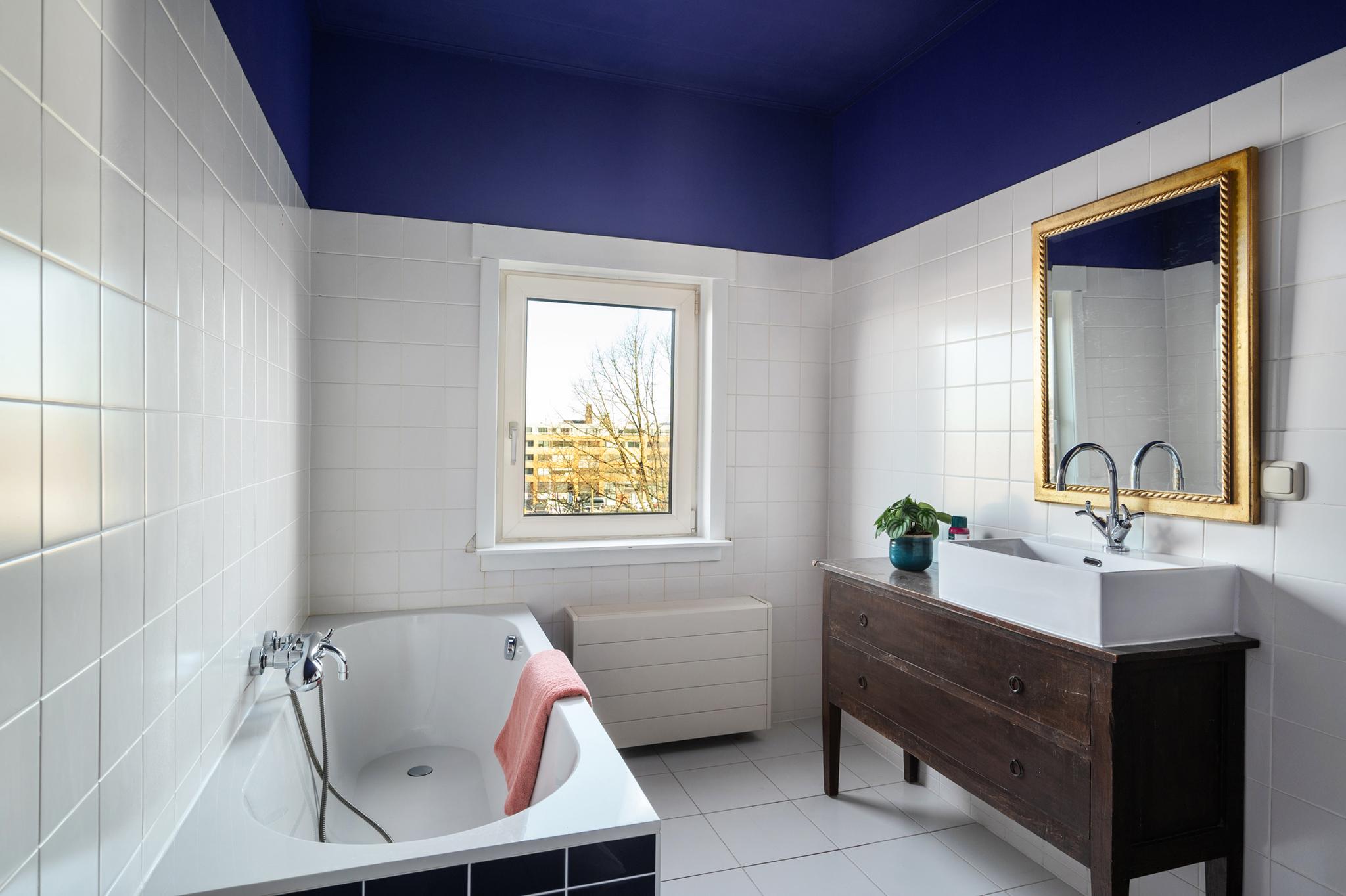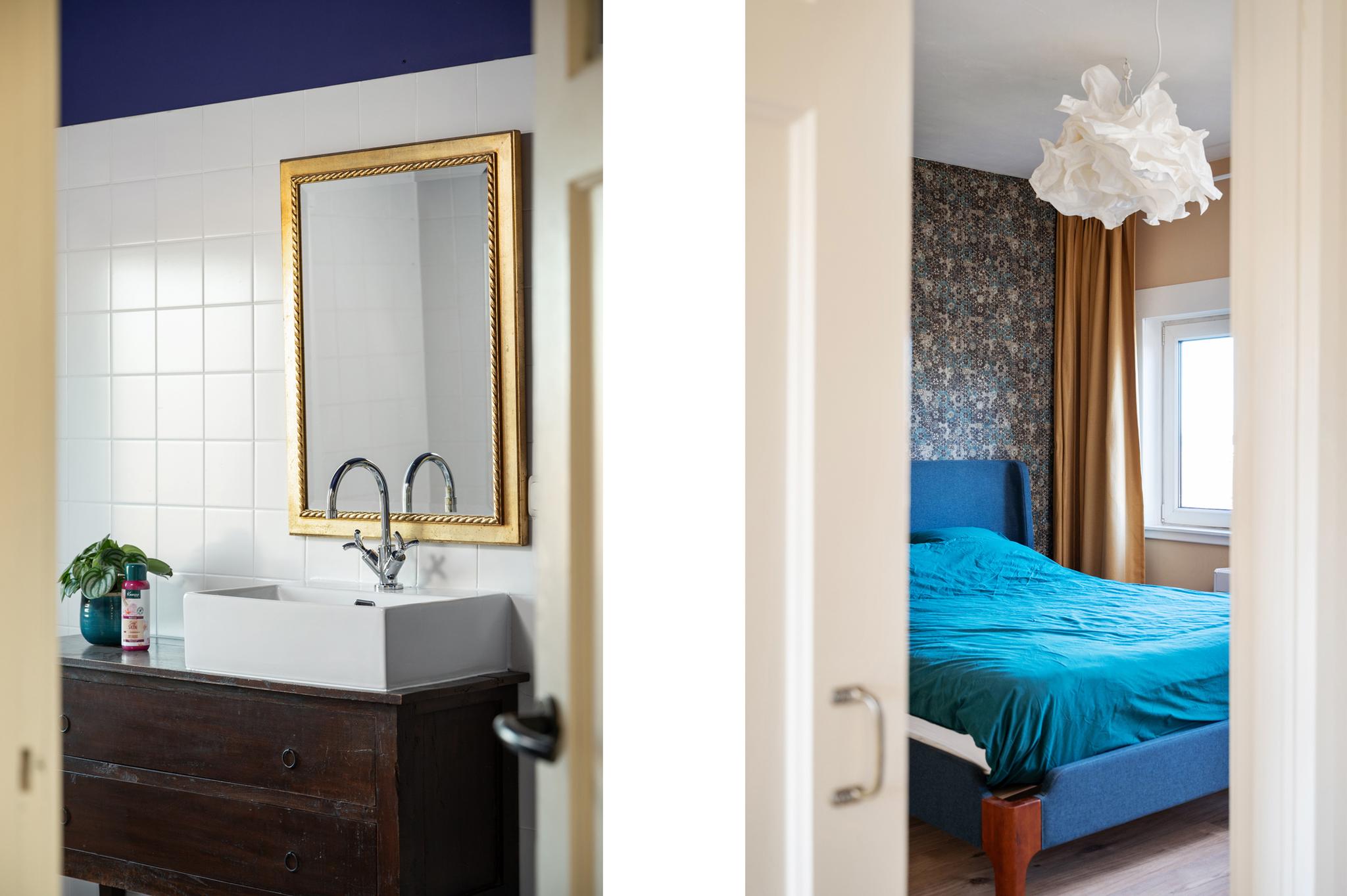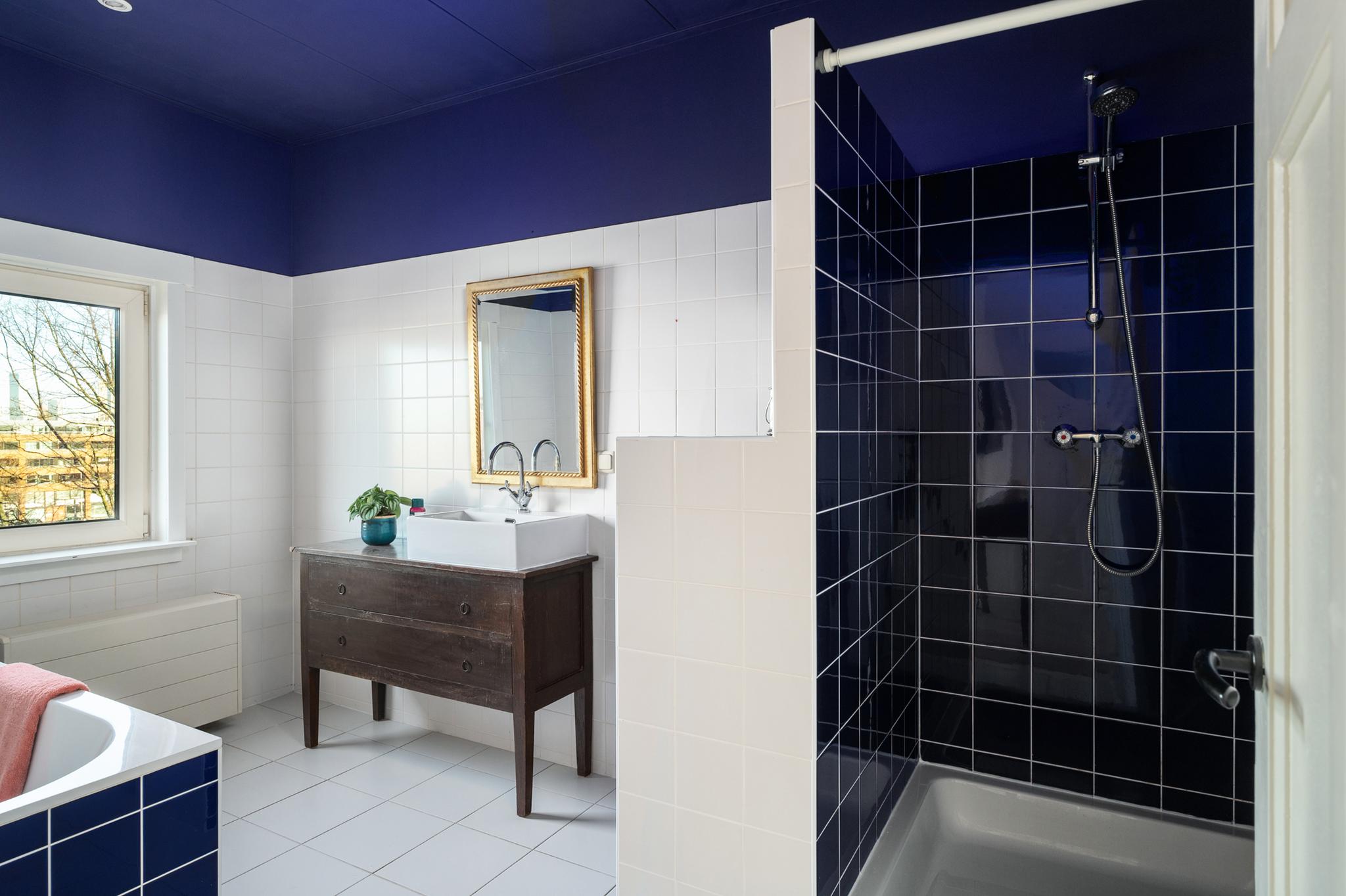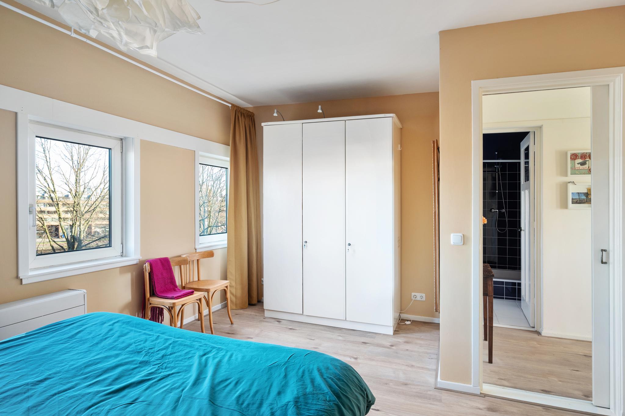Op deze verdieping zijn twee ruime slaapkamers gesitueerd. Beide kamers zijn te bereiken via een schuifdeur, hebben grote raampartijen over de gehele breedte en zijn voorzien van een fraaie laminaatvloer. De hoofdslaapkamer, gelegen aan de voorzijde, heeft een vaste kast. De leuke badkamer met blauw gekleurde tinten beschikt over een inloopdouche, ligbad en een wastafel met meubel. Op de overloop is er een wasruimte gevestigd met een aansluiting voor een wasmachine en droger en de cv-opstelling.