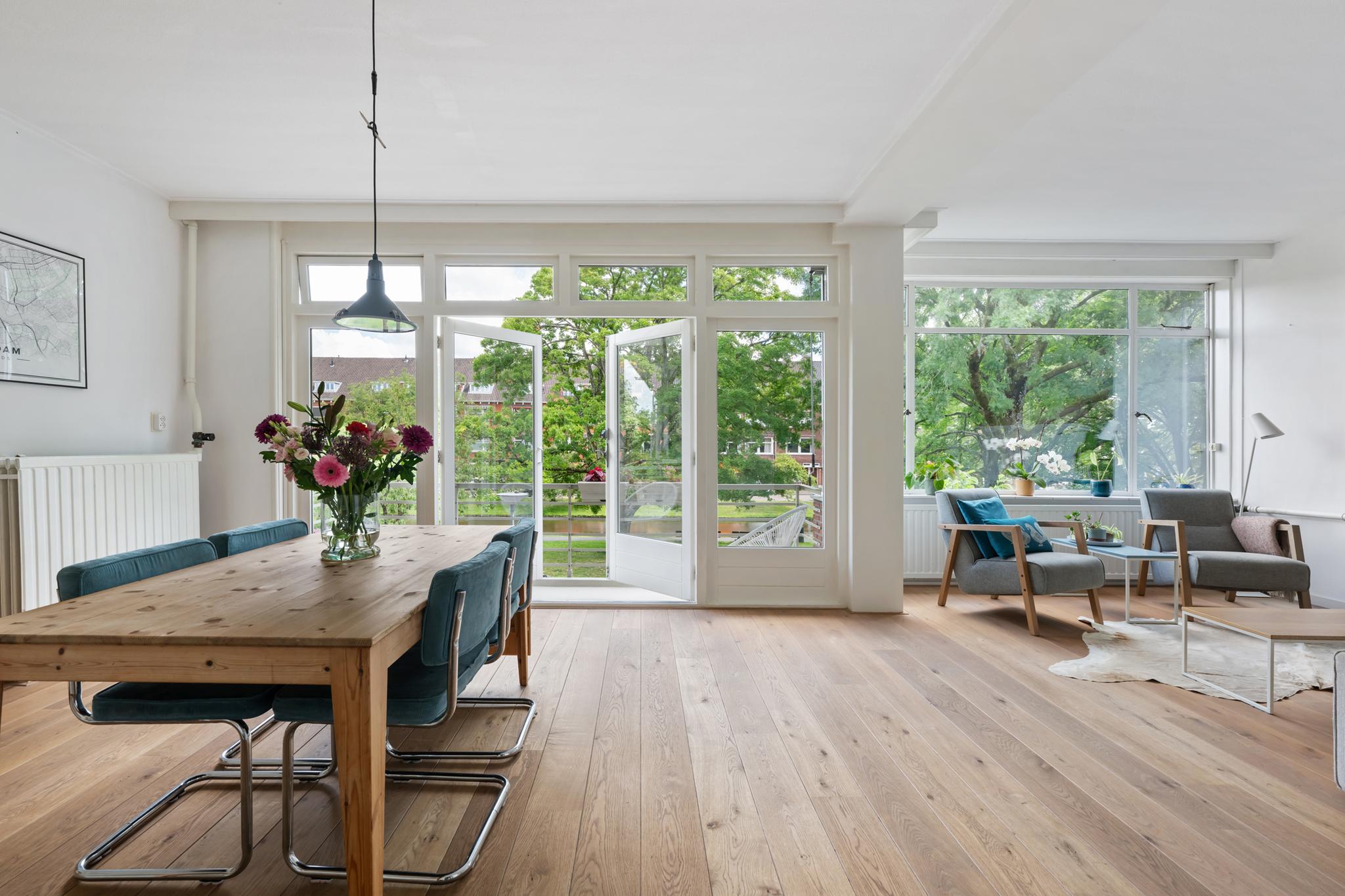 Via de openslaande deuren heb je direct toegang tot een van de balkons waar je heerlijk buiten kunt zitten en genieten van het uitzicht op de groene singel.