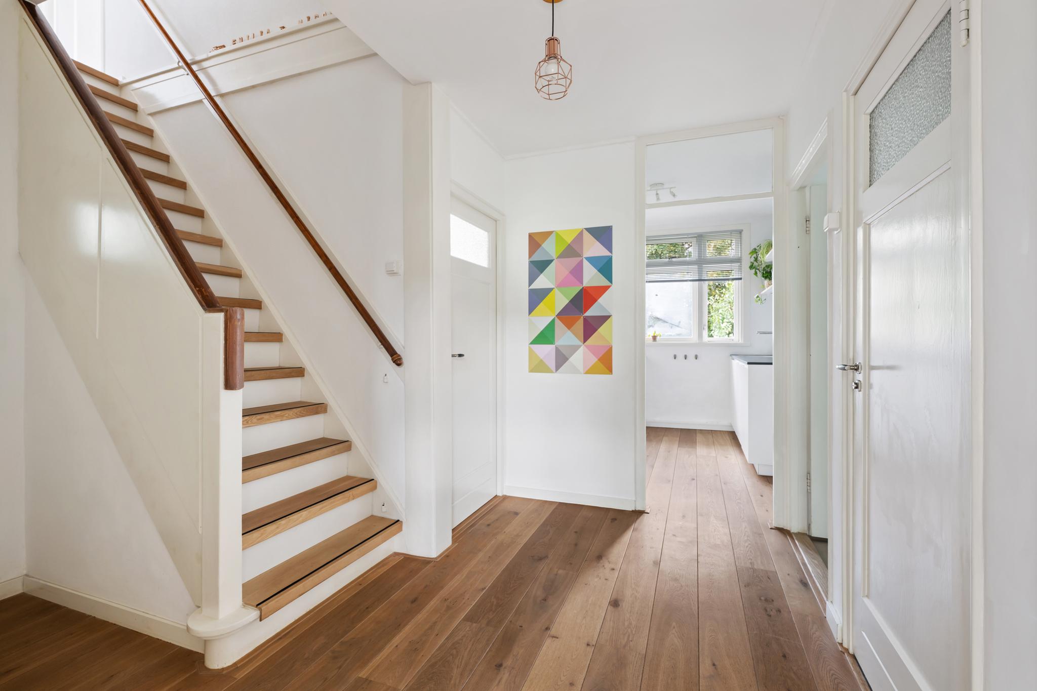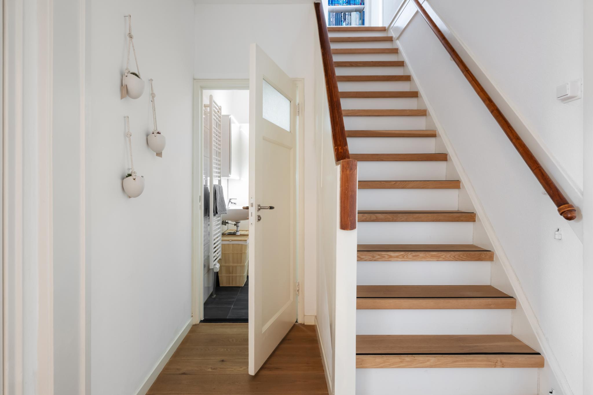 Je stapt binnen in de ruime en uitnodigende hal met stijlvolle trapopgang naar de verdieping.
