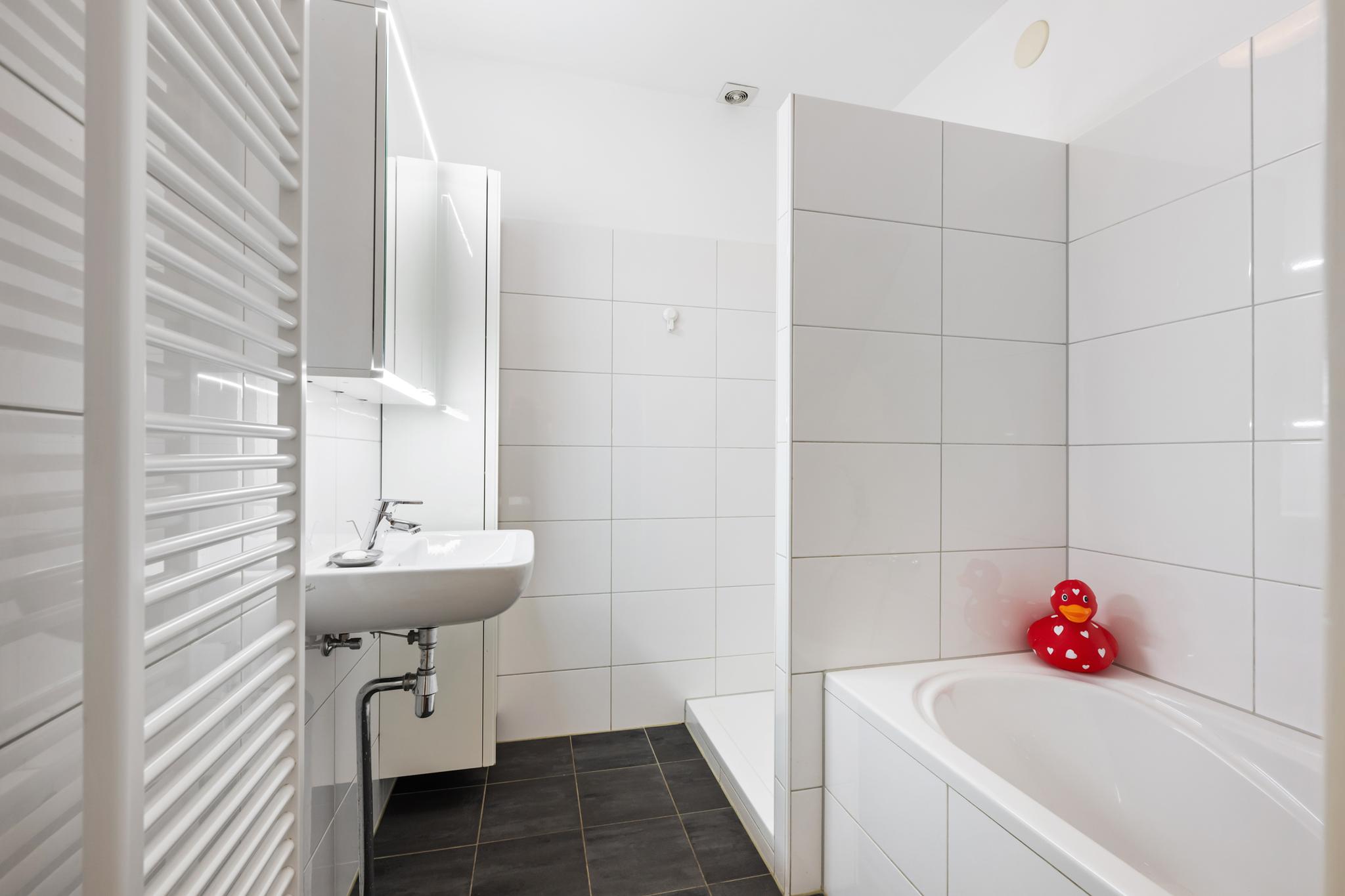 Aan de achterzijde zijn twee ruime slaapkamers gelegen met toegang tot het balkon. De badkamer is compleet uitgerust met ligbad, douche, wastafel en design radiator. Het toilet is separaat.