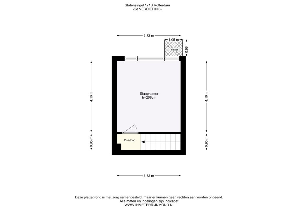 De informatie is door ons met de nodige zorgvuldigheid samengesteld. Alle verstrekte informatie moet beschouwd worden als een uitnodiging tot het doen van een bod of om in onderhandeling te treden. Onzerzijds wordt echter geen enkele aansprakelijkheid aanvaard voor enige onvolledigheid, onjuistheid of anderszins, dan wel de gevolgen daarvan. Alle opgegeven maten en oppervlakten zijn indicatief.