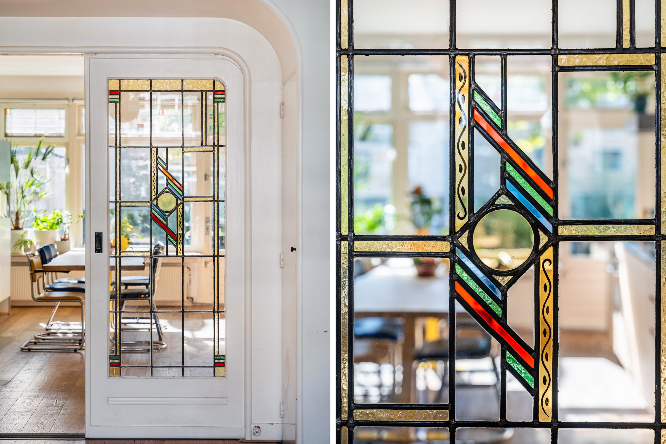 Op deze woonlaag bevindt zich de lichte en ruime woonkamer met sfeervolle details, zoals glas-in-lood elementen en grote raampartijen die zorgen voor veel daglicht. De open keuken is modern en praktisch ingericht en voorzien van diverse inbouwapparatuur. Vanuit zowel de woonkamer als de keuken heb je toegang tot twee balkons, ideaal voor een kop koffie in de ochtendzon of namiddag. Verder vind je op deze verdieping twee slaapkamers, welke je naar wens kunt inrichten. De badkamer is net en compleet uitgerust met een ligbad, douche, wastafel en toilet. Met de trap in de hal kom je op de bovenste verdieping.
