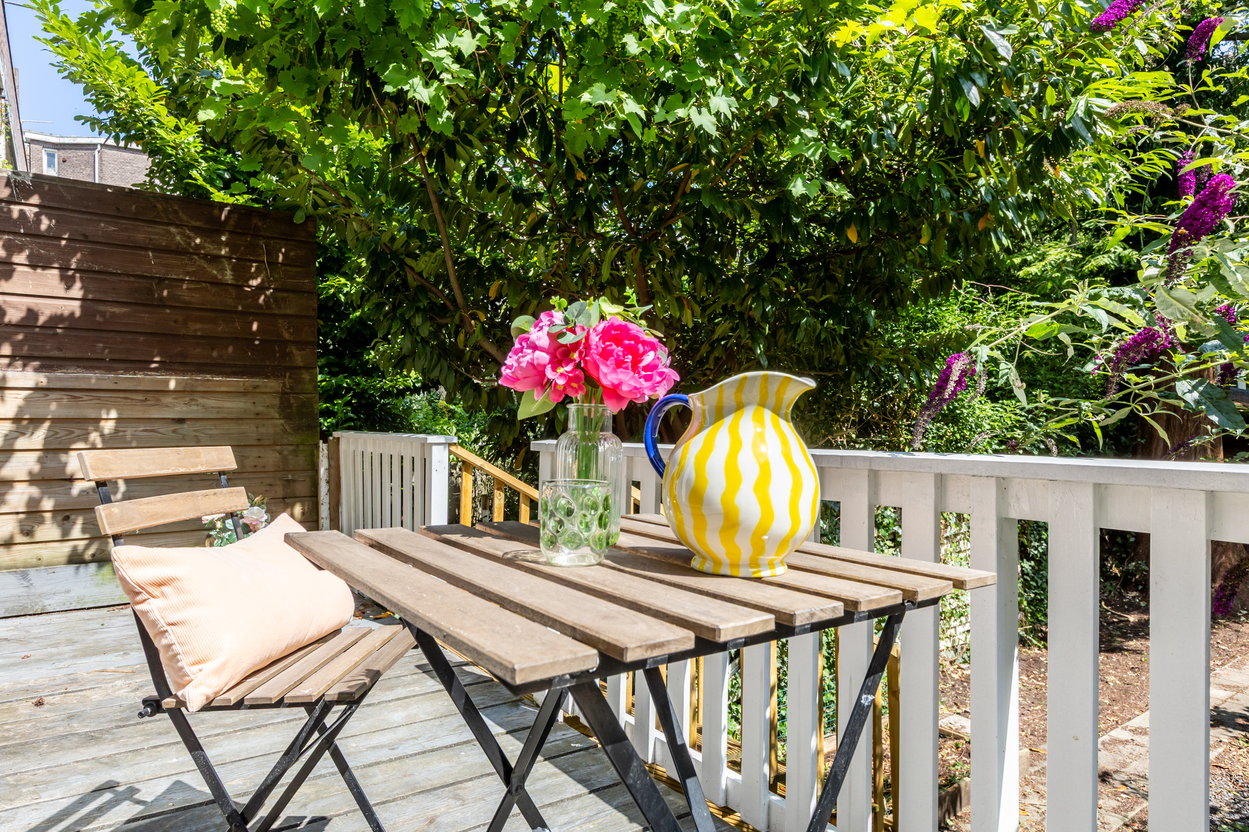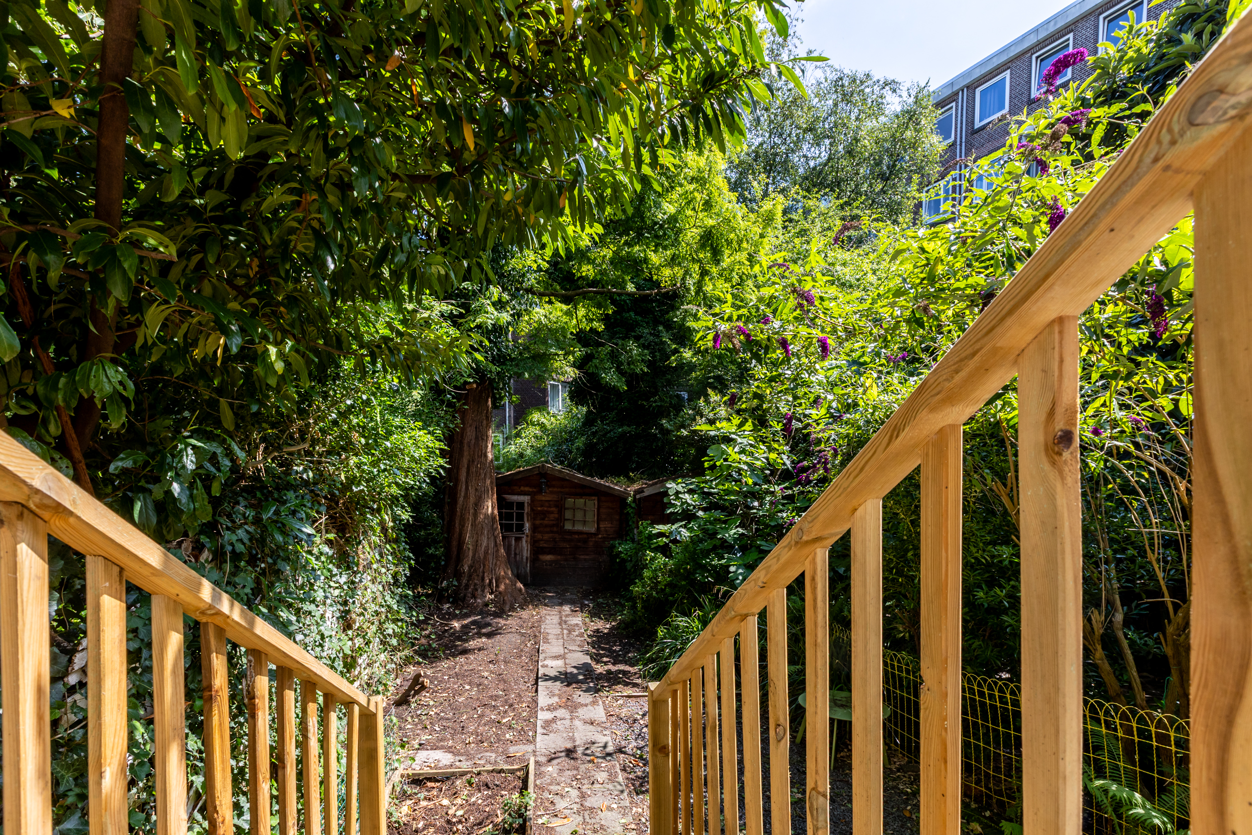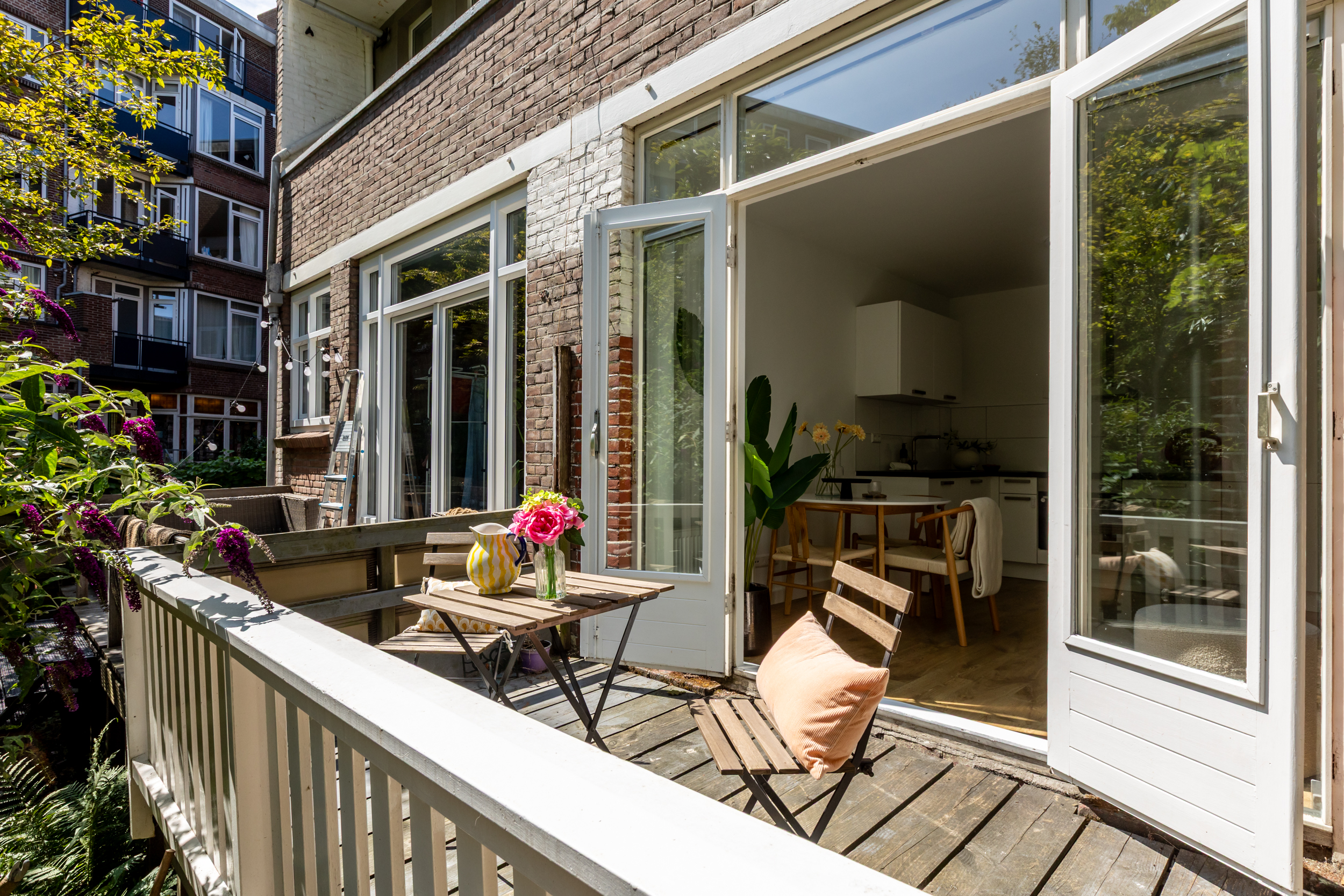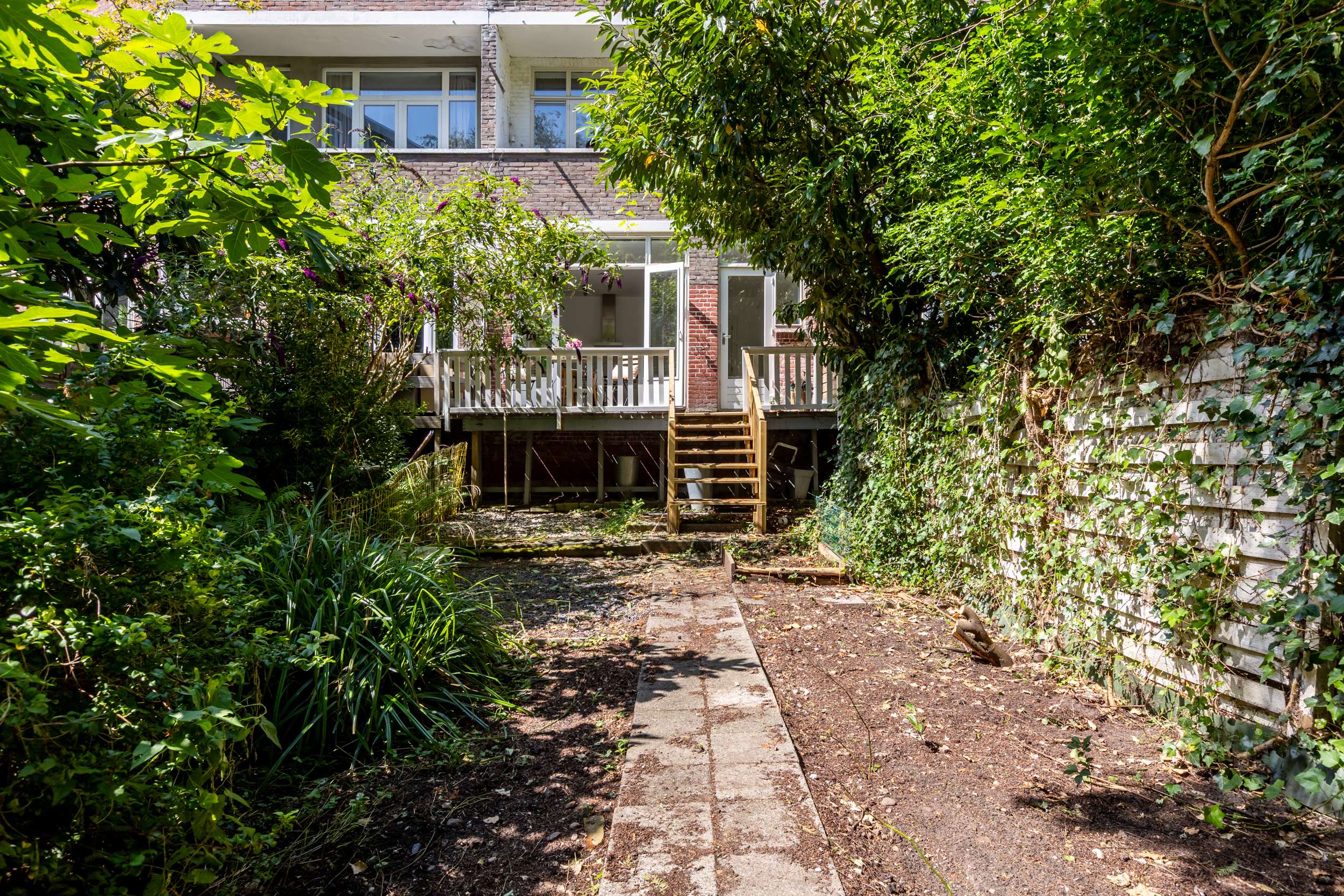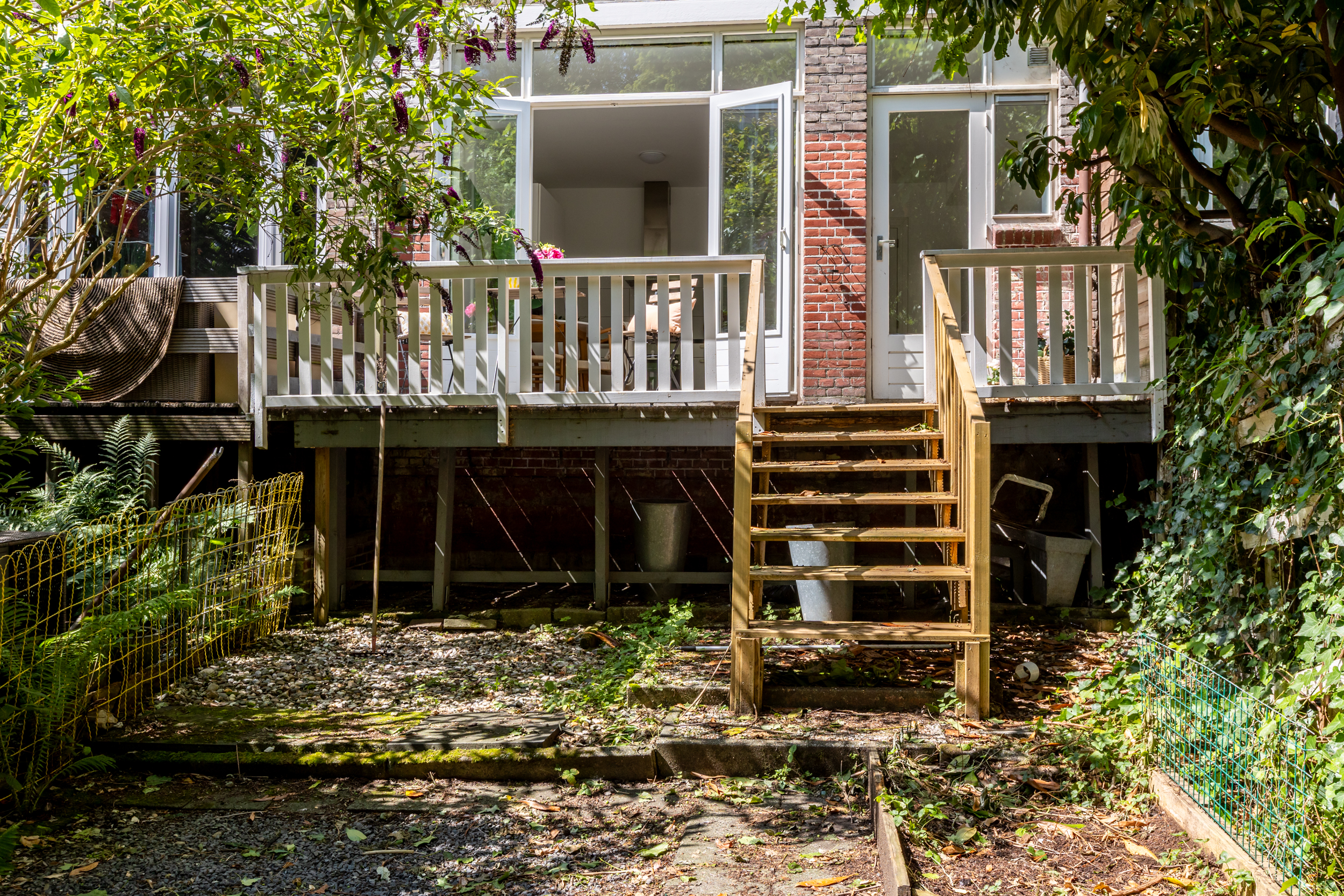 Toch wel dé highlight van dit huis: de royale achtertuin van ca. 62 m². De tuin biedt volop privacy en heeft een terras direct aan de woning. Hier geniet je van de ochtendzon tot in de middag. Achterin de tuin staat een houten berging, ideaal voor je fiets, gereedschap of tuinspullen. Dankzij de diepte en breedte voelt deze tuin als een oase van rust midden in de stad.