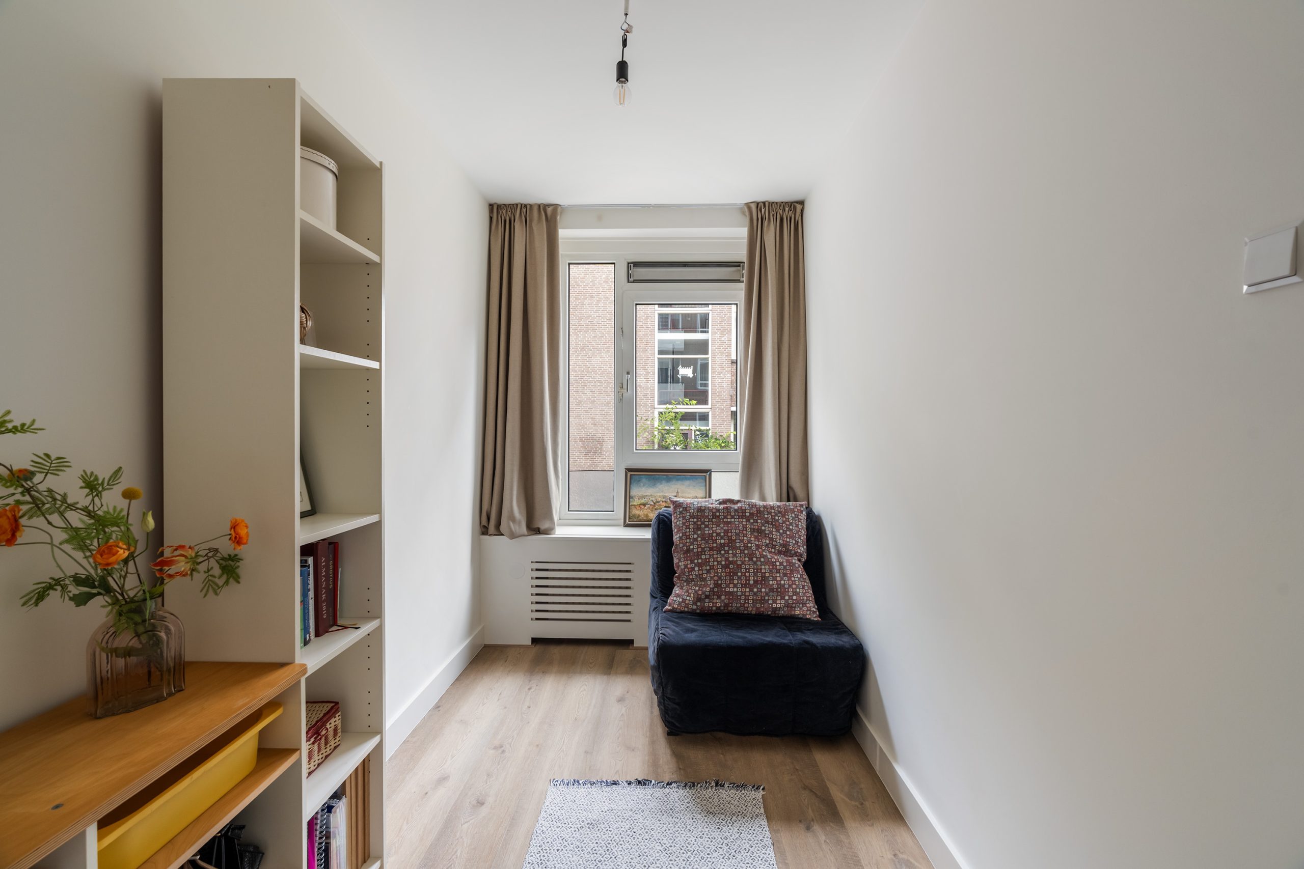 Terug in de woning is aan de voorzijde de tweede slaapkamer gesitueerd. Ideaal om in te richten als thuiswerkplek of inloopkast. Tevens tref je in de hal een inpandige kast met de wasmachine aansluiting en het separate toilet.