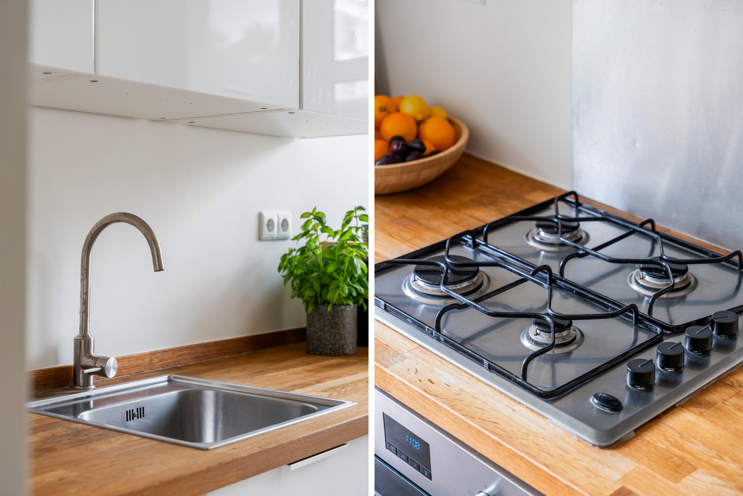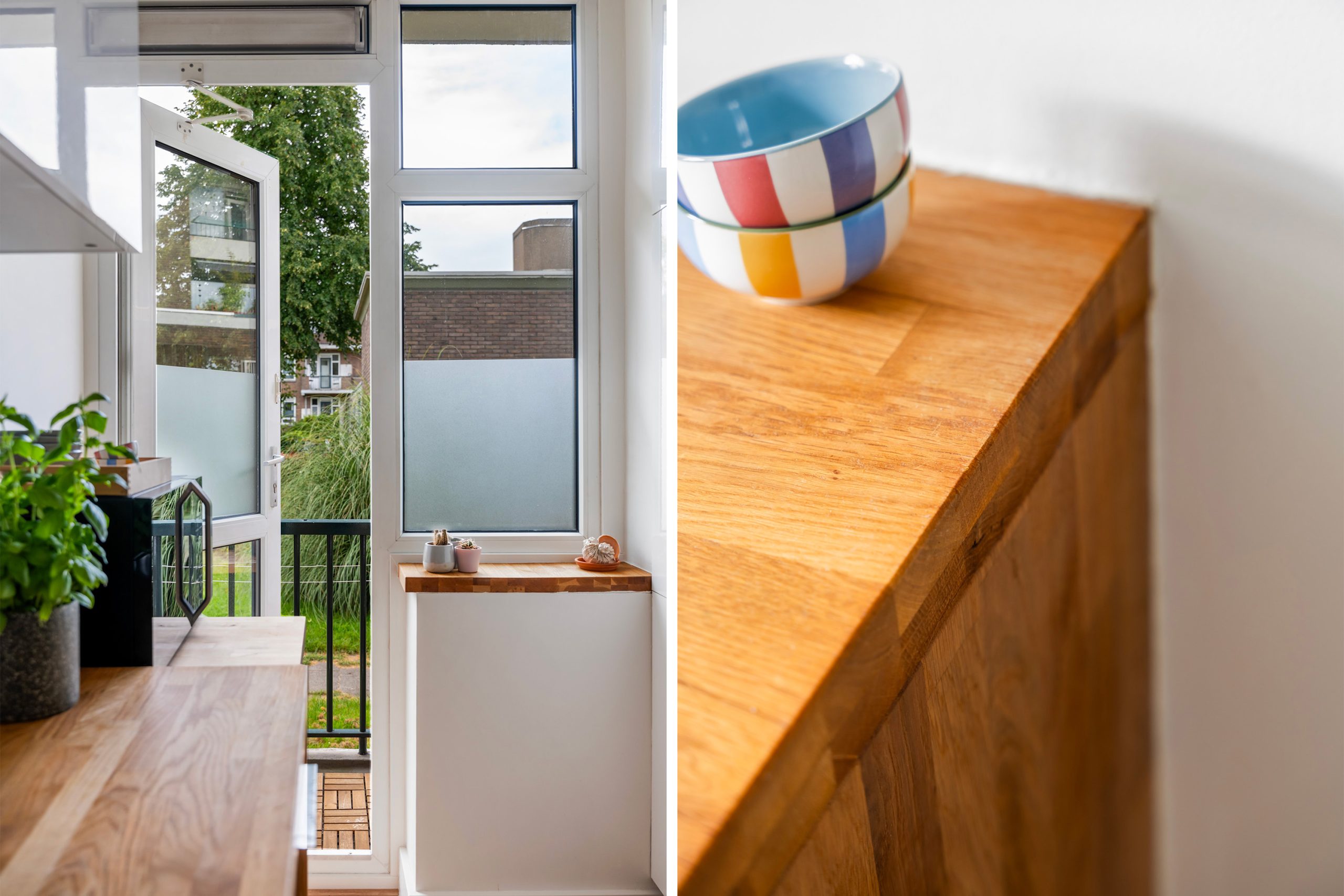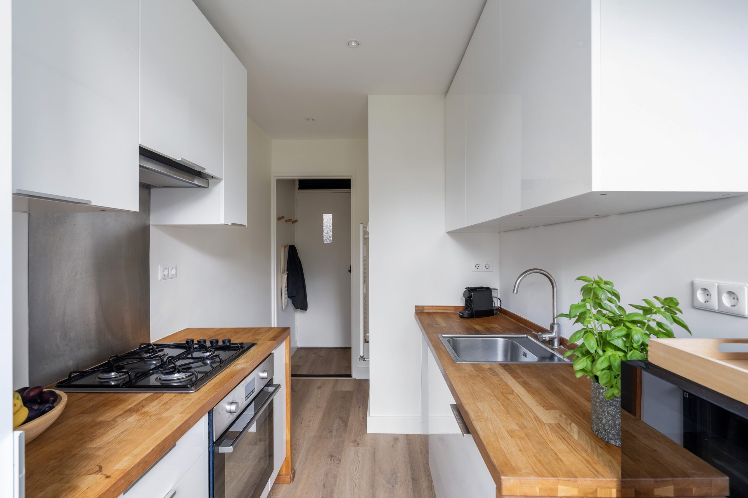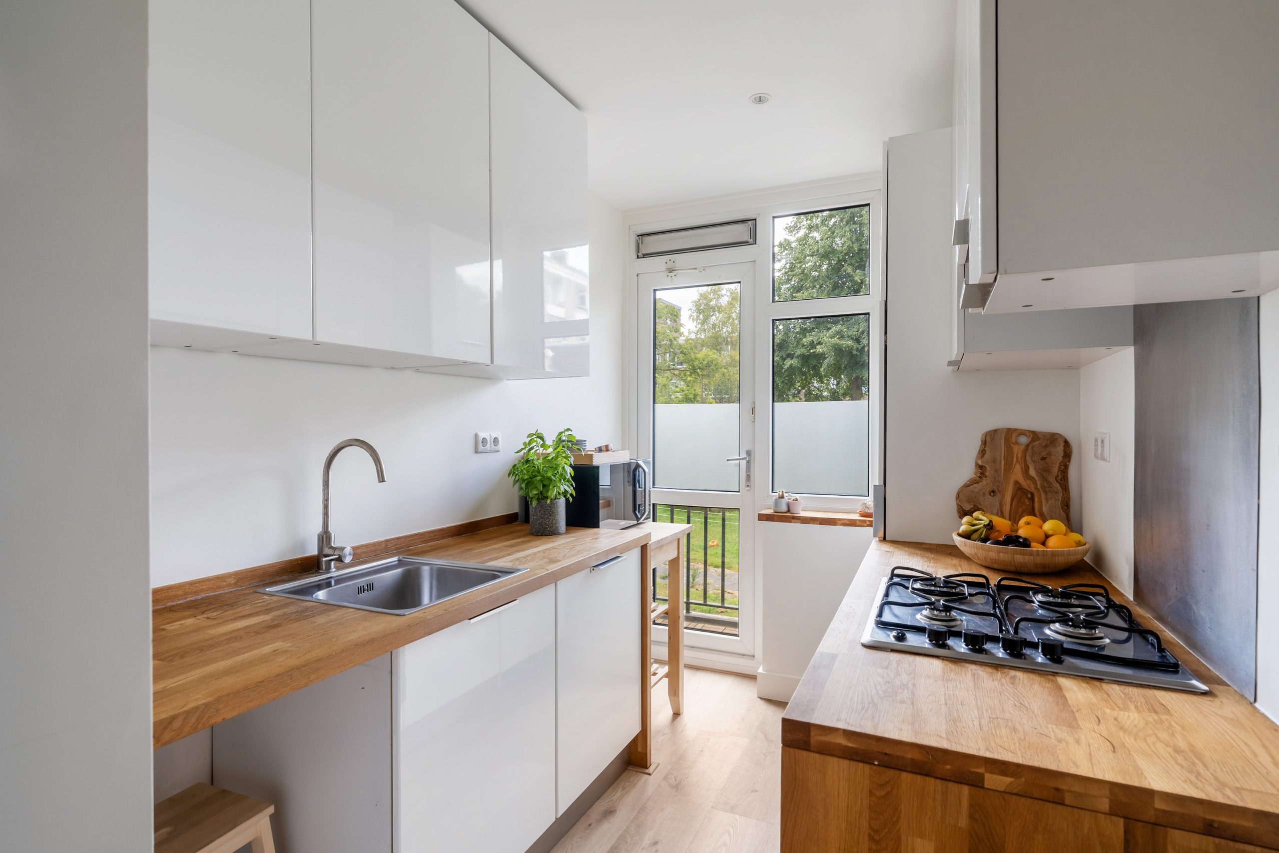 De keuken beschikt over een 4-pits gasfornuis, oven, afzuigkap, koel-vriescombinatie, een vaatwasser en voldoende opbergruimte! Loop vanuit de keuken het balkon op. Door de ligging op het zuiden is dit de ideale plek voor zonaanbidders. Daarnaast is deze gelegen aan de achterzijde van de woning en kijk je uit op de rustige binnenplaats. Een ware oase van rust in het midden van de stad.