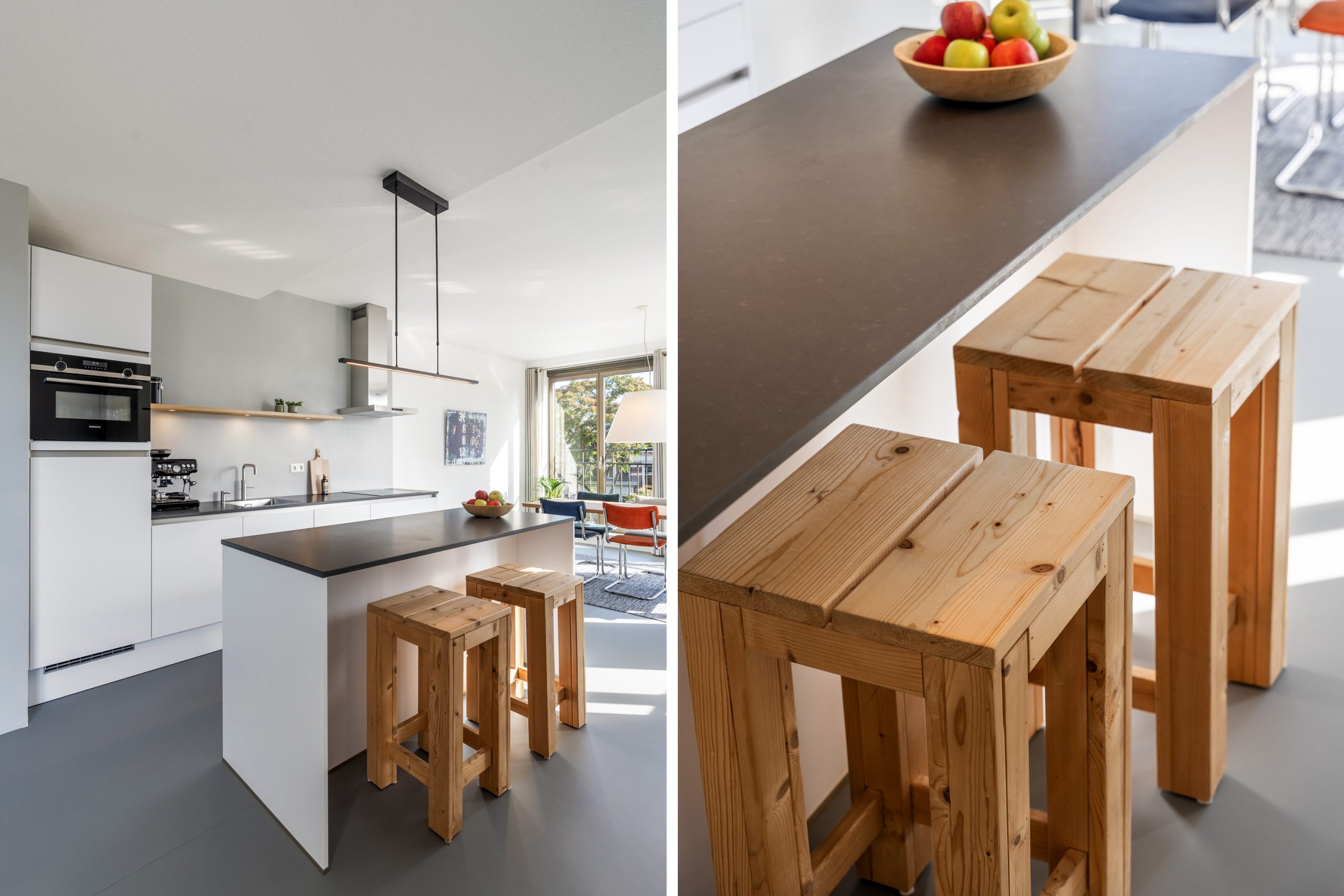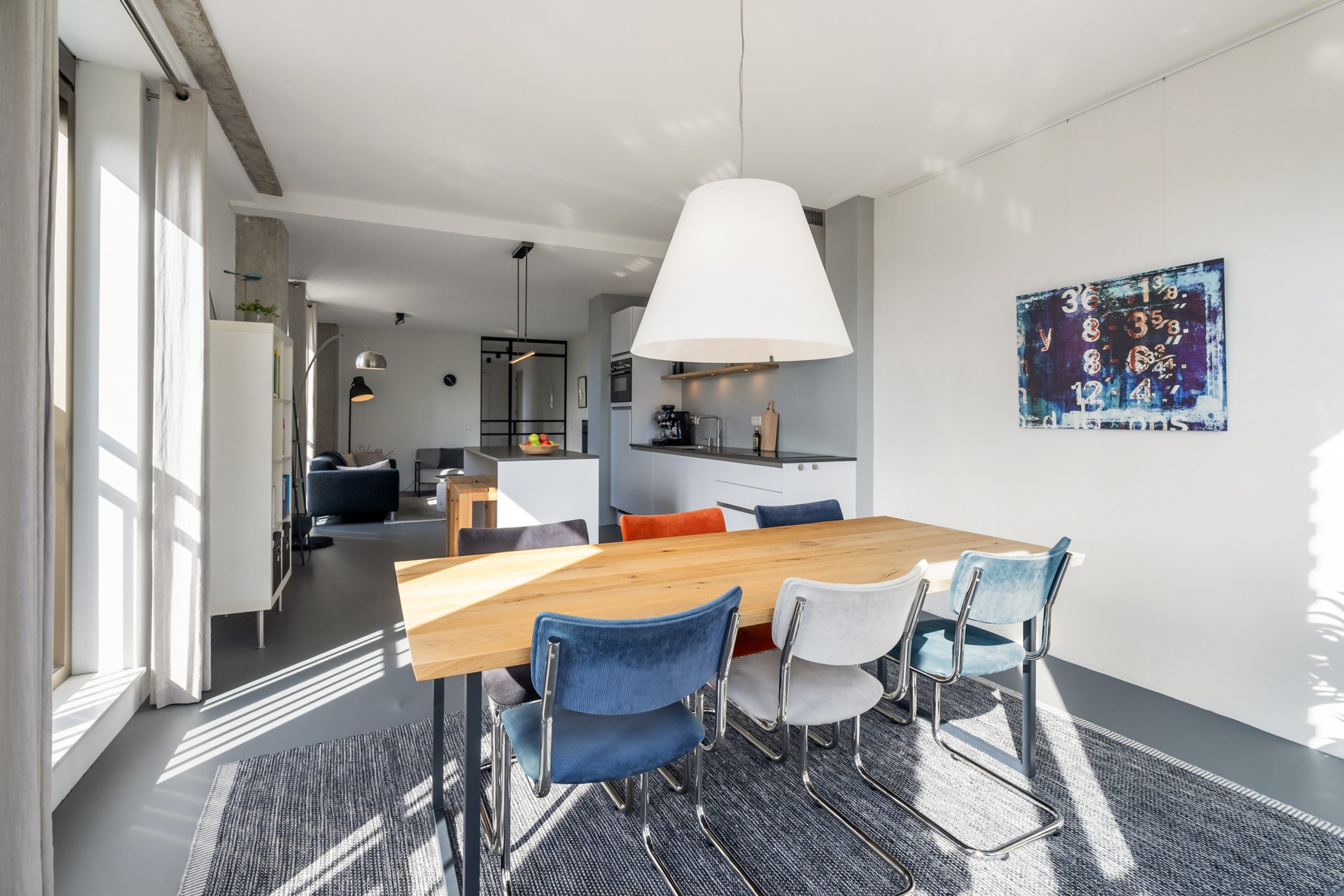 The open kitchen with cooking island forms the heart of the apartment. It is equipped with a Quooker and various built-in Siemens appliances, including an induction hob, combination oven, extractor fan, fridge and dishwasher. The kitchen is not only functional but also the social centre of the home, a place to cook, dine and gather. There is space to sit comfortably at the island, as well as room for a large dining table where you can enjoy meals with family or friends.
