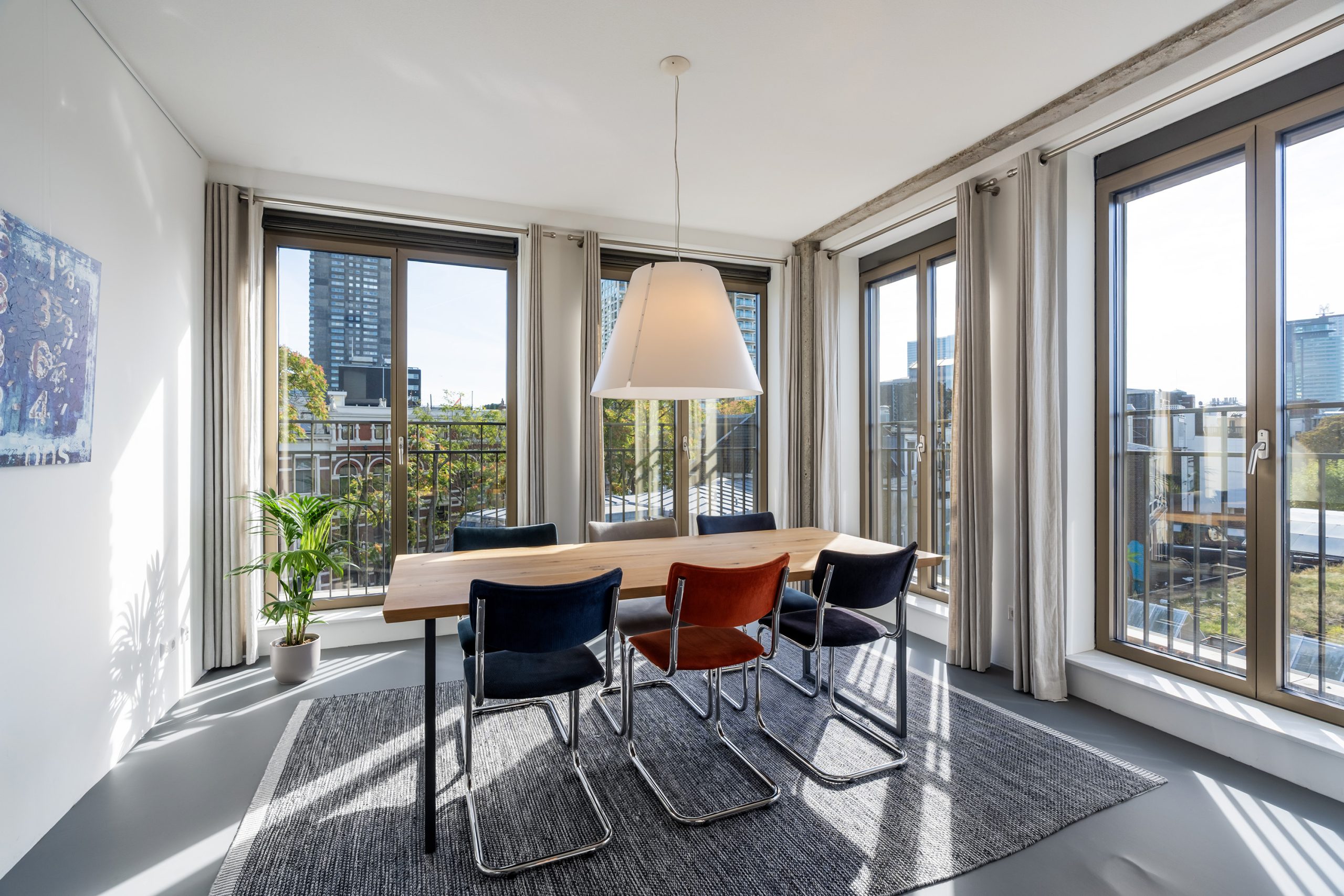 Here, design, comfort and location come together in perfect harmony: a sleekly finished interior, plenty of natural light and panoramic views of the Rotterdam skyline. The spacious living area with open kitchen, the generous bedroom and the shared rooftop terrace overlooking the city make this a place where coming home is a joy every single day. Experience high-end city living in one of Rotterdam’s most desirable neighbourhoods, with everything the city has to offer right around the corner.