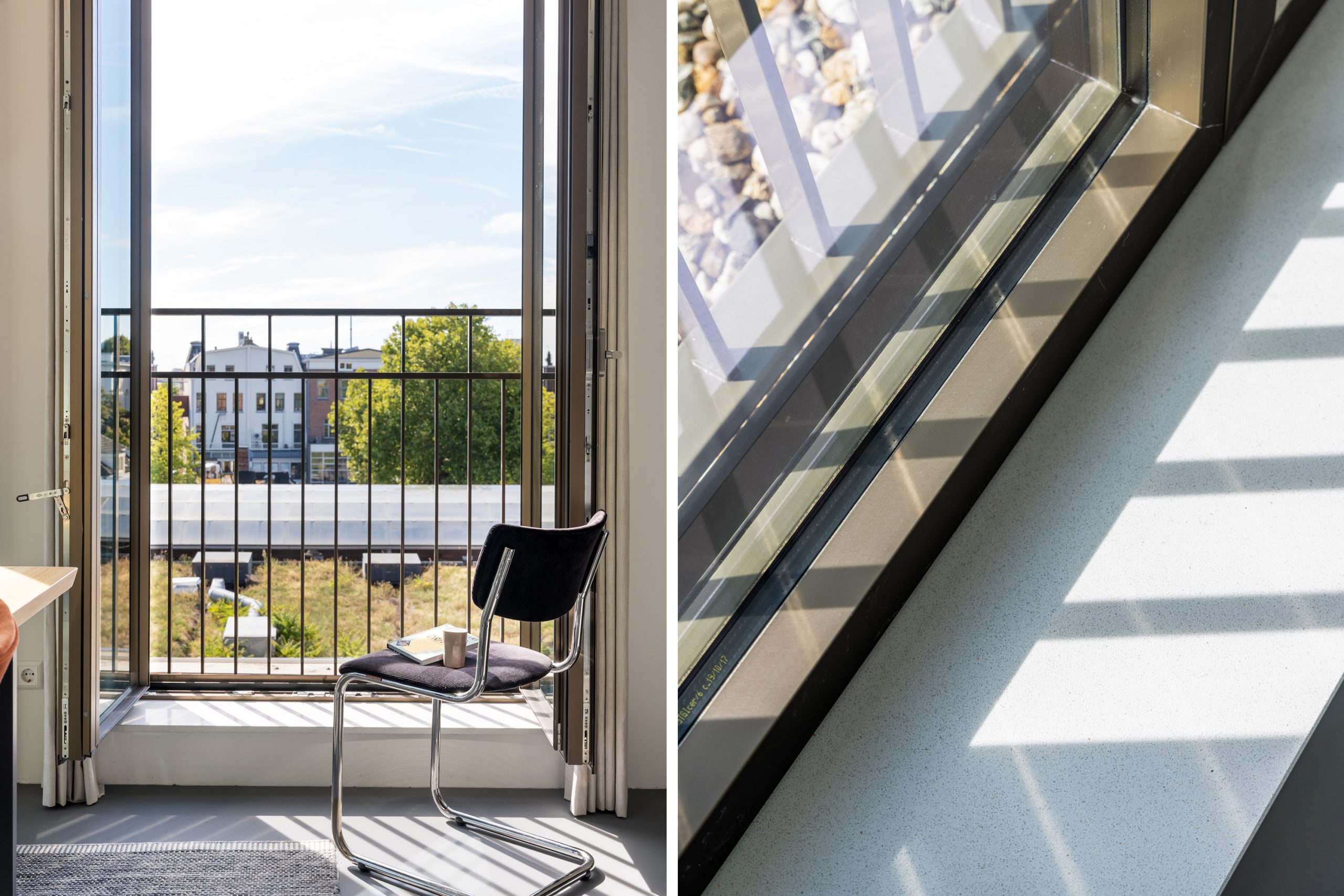 The Van Vollenhovenkwartier building was stylishly transformed in 2018 into luxury Citylofts, designed in line with the area’s existing architecture. It offers a sophisticated entrance hall, an elegant atrium, an underground parking garage and a large communal rooftop terrace on the fifth floor. This beautiful terrace provides various seating areas, green landscaping and magnificent views across the city. It is a perfect place to relax or enjoy the sunshine with others. The building has been completely renewed with a new façade and window layout, resulting in a modern residential complex with a timeless, classic appearance that perfectly complements its surroundings.