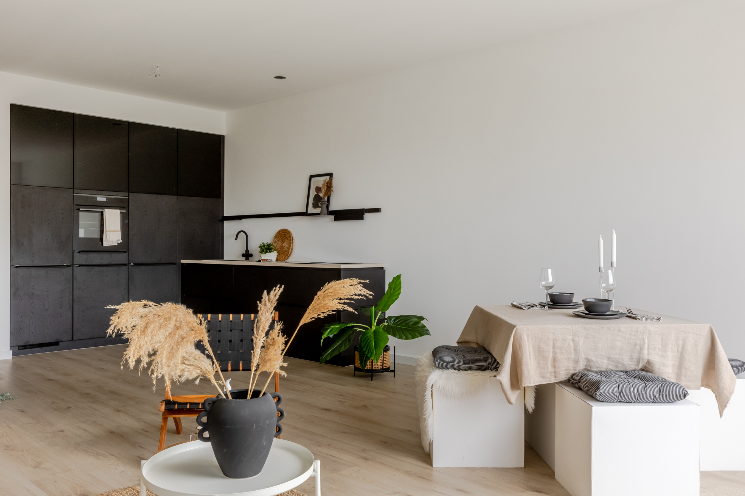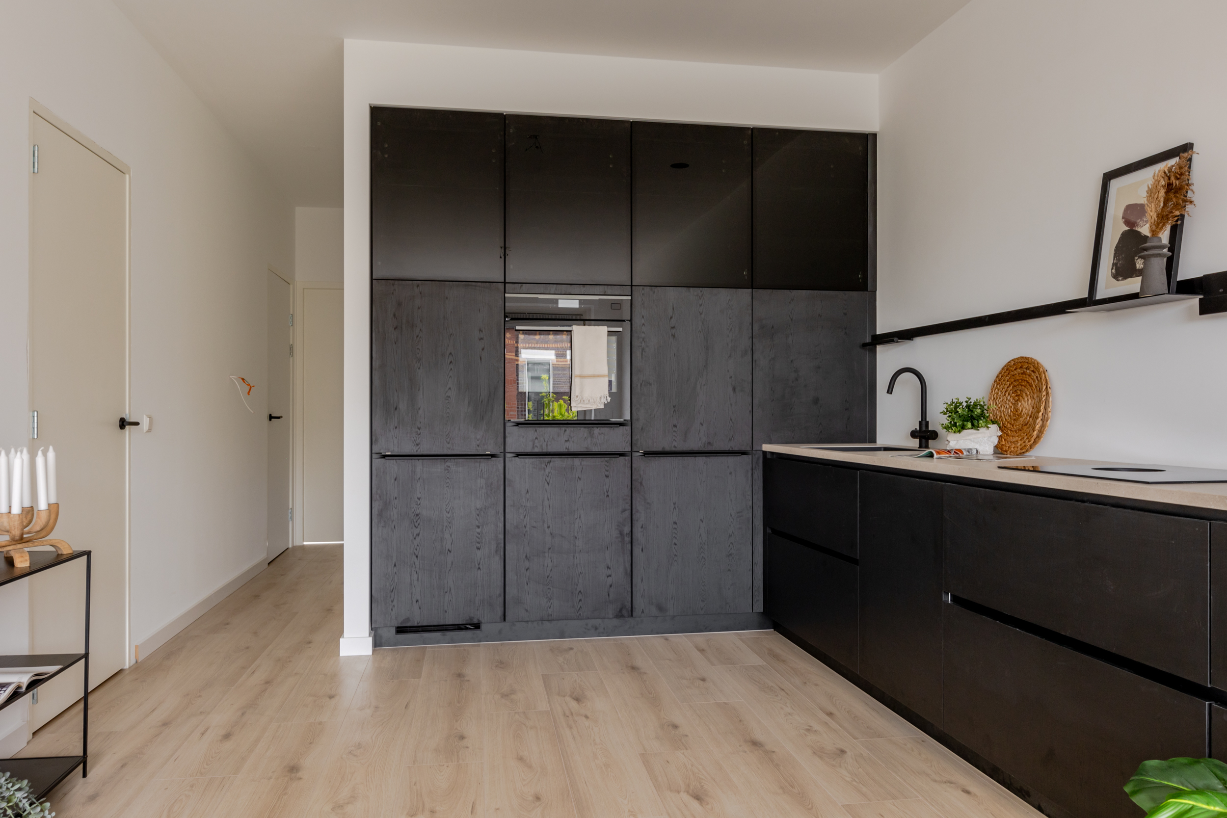 Via de open entree loop je direct het leefgedeelte binnen, dat aan de voorzijde is gelegen op het zuiden. Alles is tot in de puntjes afgewerkt! Dankzij de renovatie in 2025 geniet je hier van optimaal wooncomfort, met een prachtige open keuken, strak afgewerkte wanden en plafonds, en een charmante laminaatvloer die warmte en stijl uitstraalt. De grote raampartijen zorgen voor heerlijk veel lichtinval en versterken het ruimtelijke gevoel. Er is volop plek voor een comfortabele zithoek én een gezellige eethoek waardoor rust en gezelligheid hand in hand gaan. De keuken is voorzien van luxe inbouwapparatuur zoals, een BORA inductiekookplaat met geïntegreerde afzuiging, koel- en vriescombinatie, stoomoven, vaatwasser, direct kokend water en enorm veel opbergruimte.