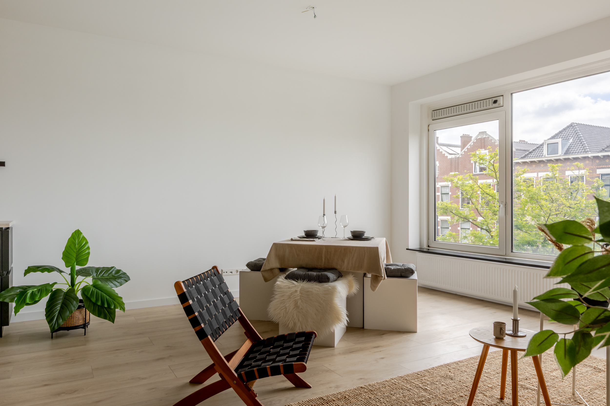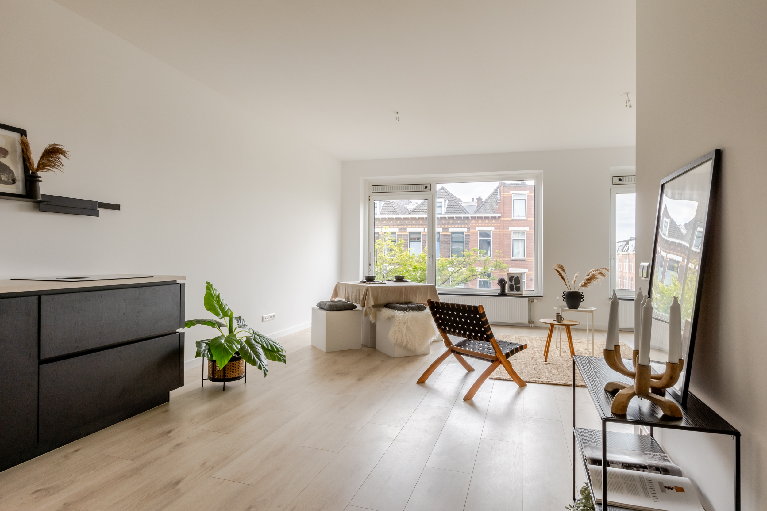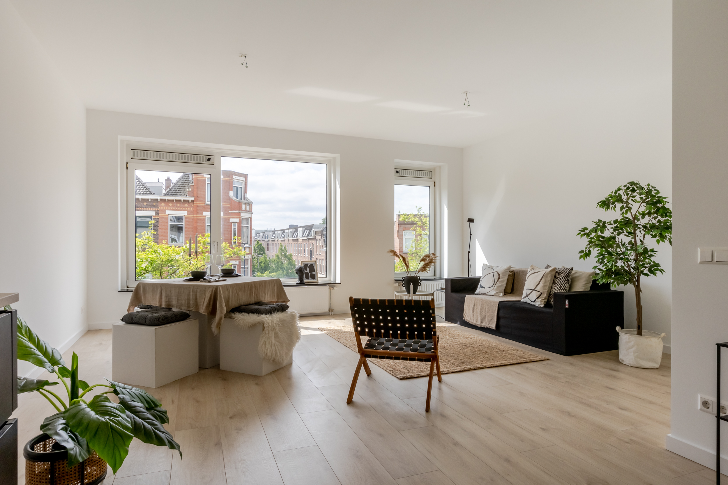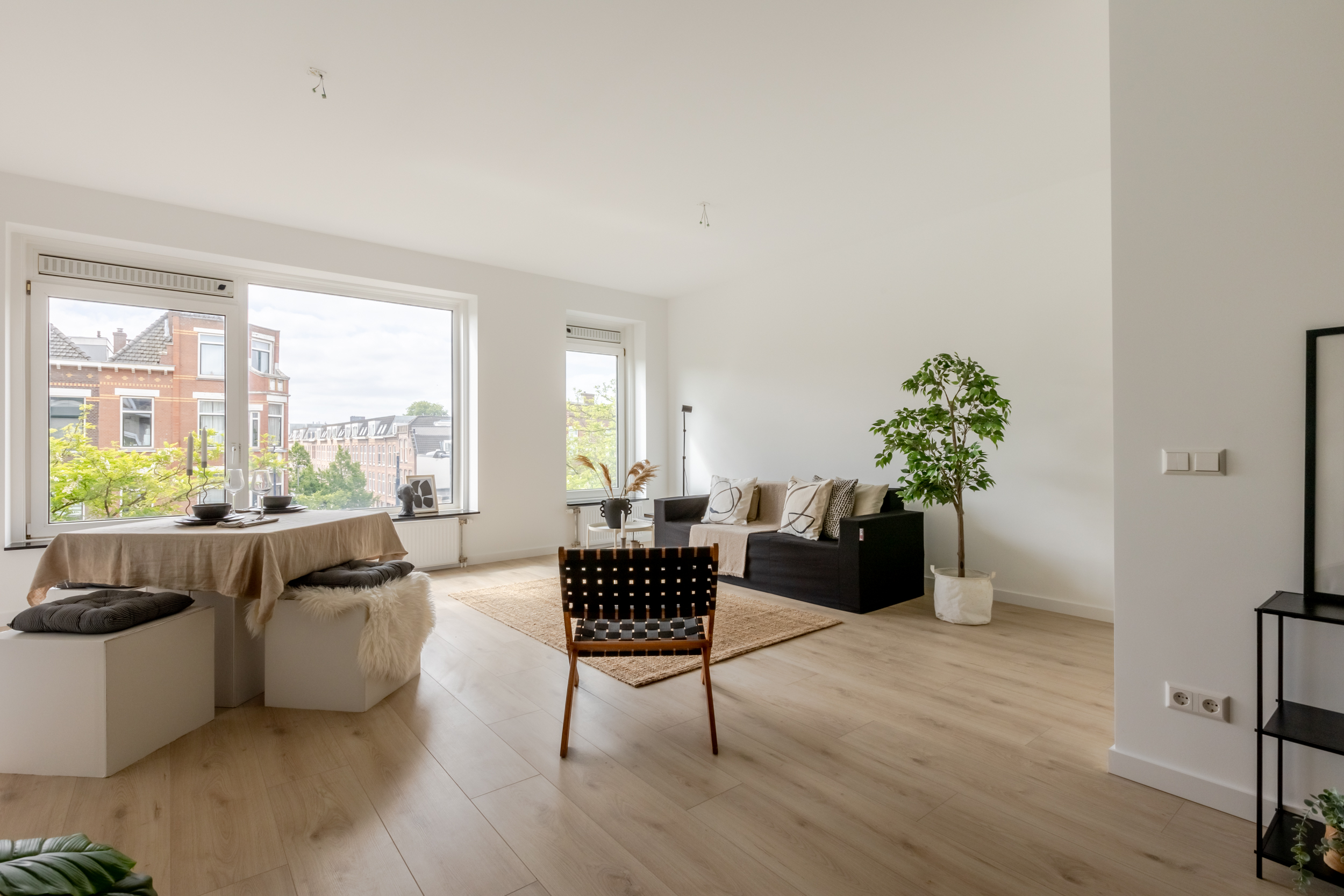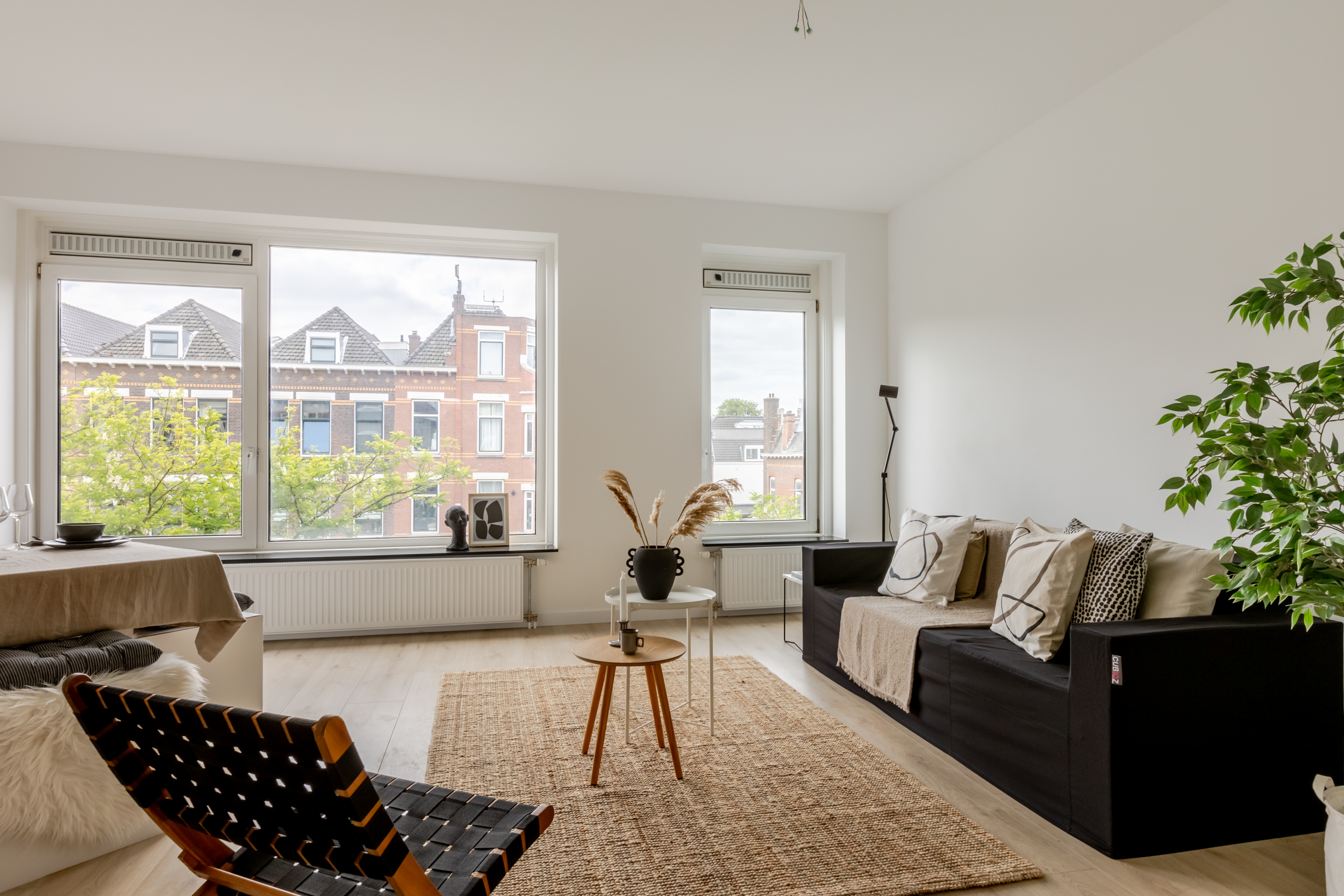 Instapklaar & Stijlvol! Dit moderne 3-kamer appartement is in 2025 volledig gerenoveerd met energielabel A en helemaal klaar om te betrekken. Stap binnen in een sfeervolle leefruimte vol licht, met een luxe open keuken en strak afgewerkte wanden en plafonds die comfort en stijl perfect combineren. Van de charmante laminaatvloer tot de modern-chique badkamer: hier is écht aan alles gedacht. De slimme indeling met twee slaapkamers, gescheiden door een stoere industriële schuifdeur, maakt het ideaal voor bijvoorbeeld thuiswerken of een walk-in-closet. Een unieke kans voor wie zorgeloos wil wonen!