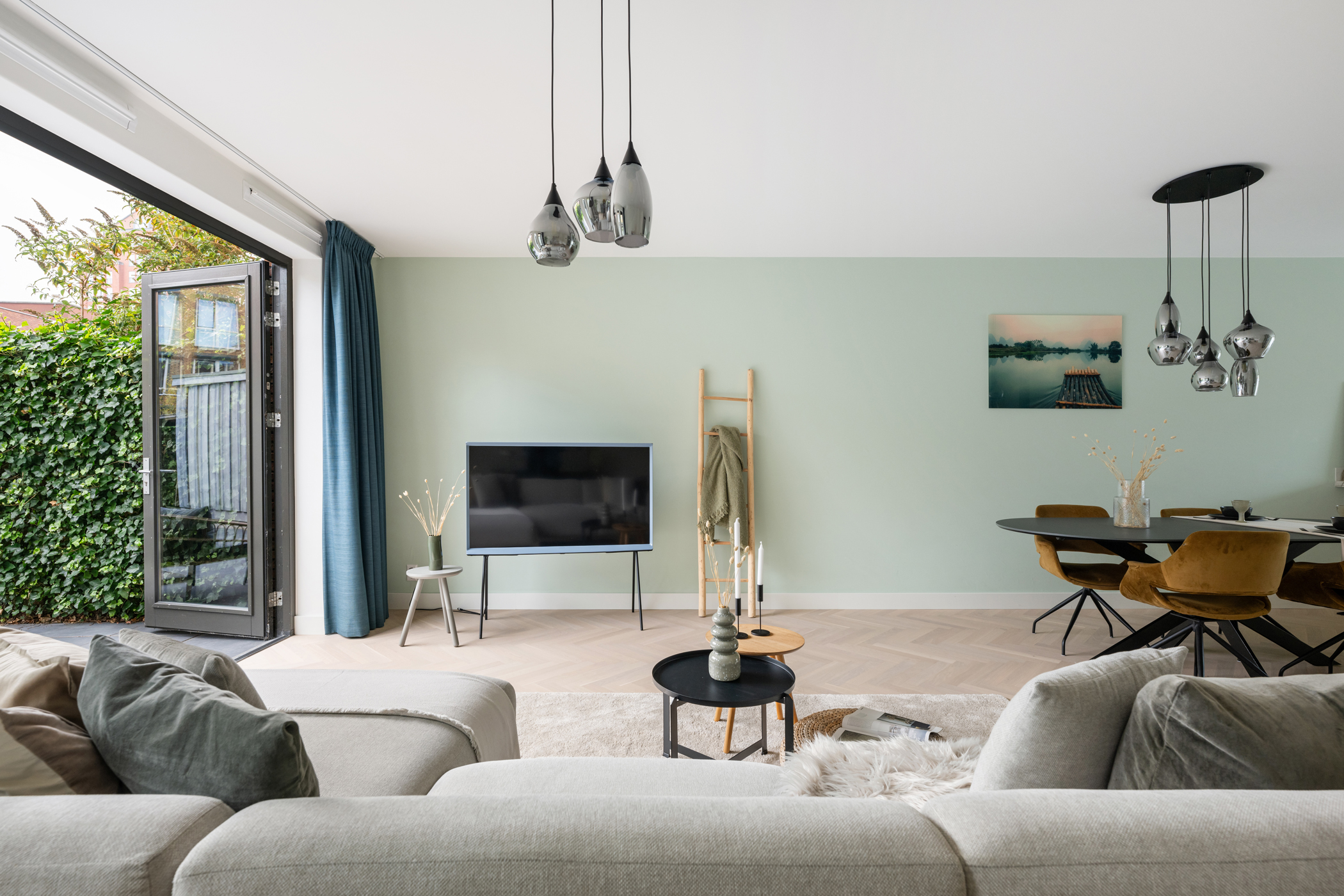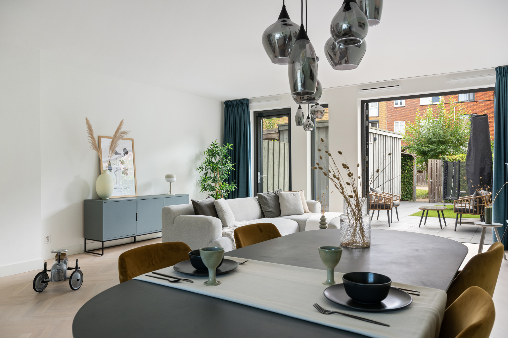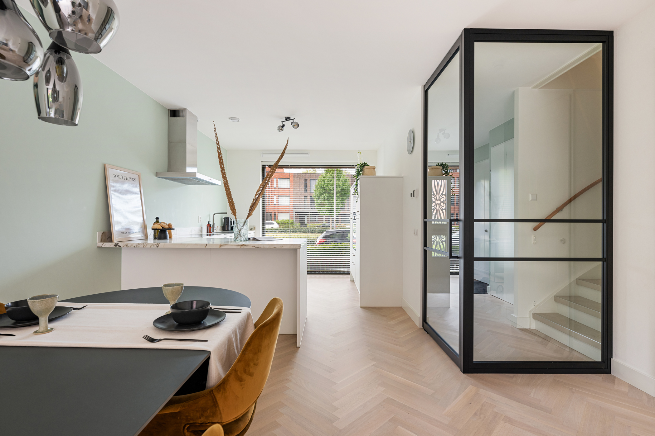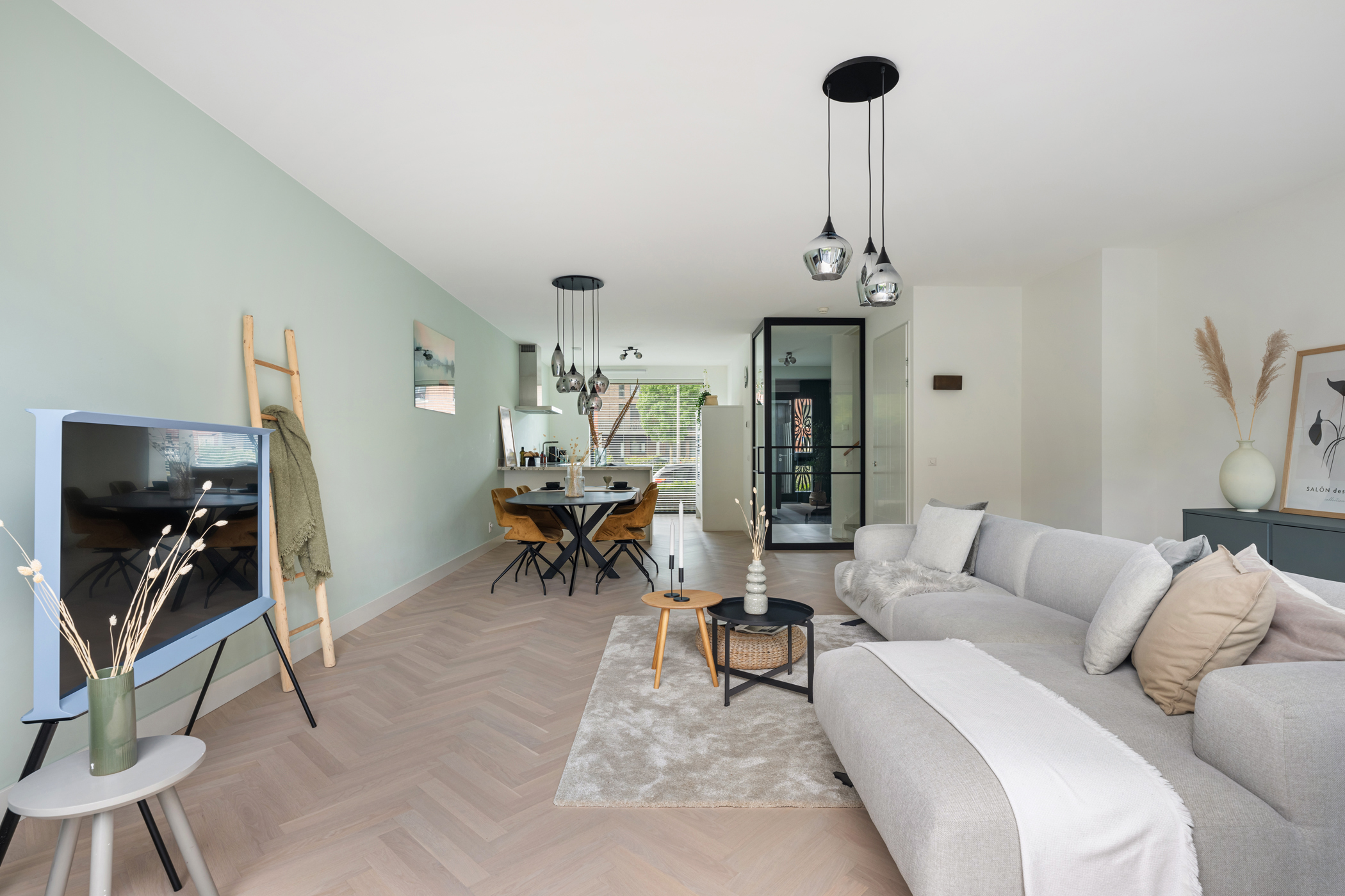 Vanaf de rustige, kindvriendelijke straat kom je bij de fraai aangelegde voortuin die toegang biedt tot deze moderne en charmante eengezinswoning uit 2018. Bij binnenkomst in de ruime entree en de glas-in-staal deur betreed je het lichte en open leefgedeelte, dat dankzij de grote raampartijen aan beide zijden van natuurlijk licht wordt voorzien. De strakke eiken visgraat lamelparketvloer en de perfect afgewerkte wanden en plafonds zorgen voor een moderne, maar warme uitstraling. Alles is tot in de puntjes verzorgd, waardoor dit huis ideaal is voor een gezin en direct bewoonbaar is.