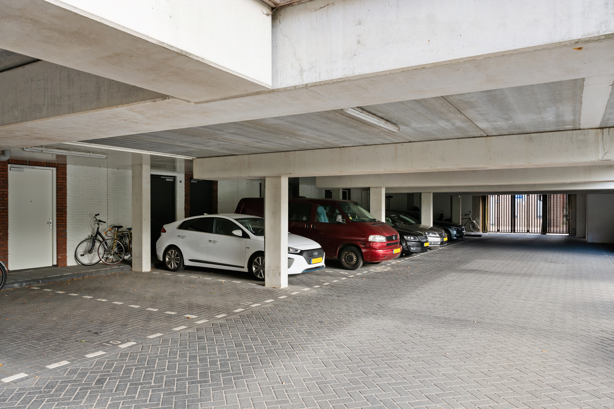 De woning beschikt over een eigen parkeerplaats, overdekt en veilig gelegen op het afgesloten achterterrein.