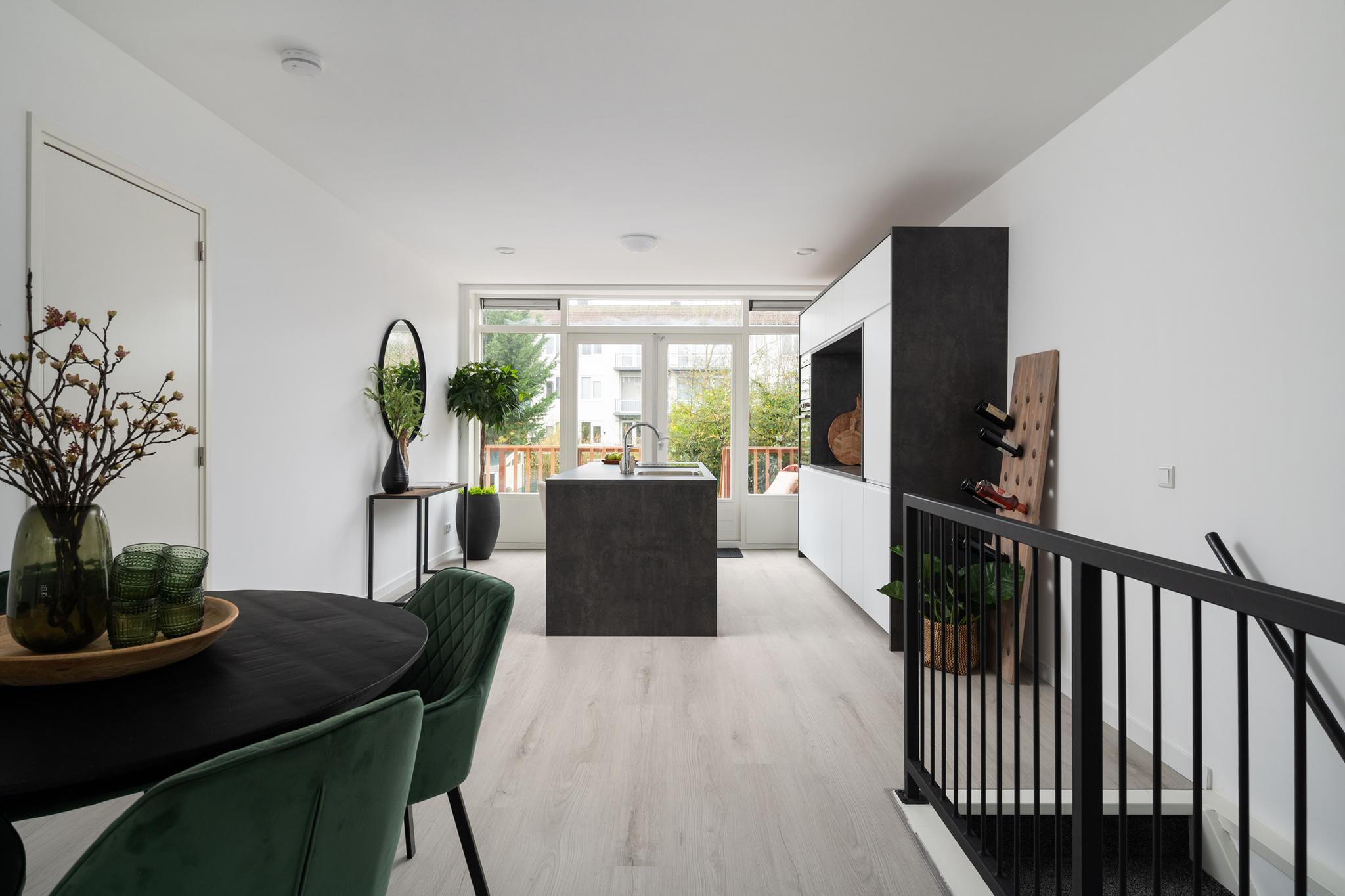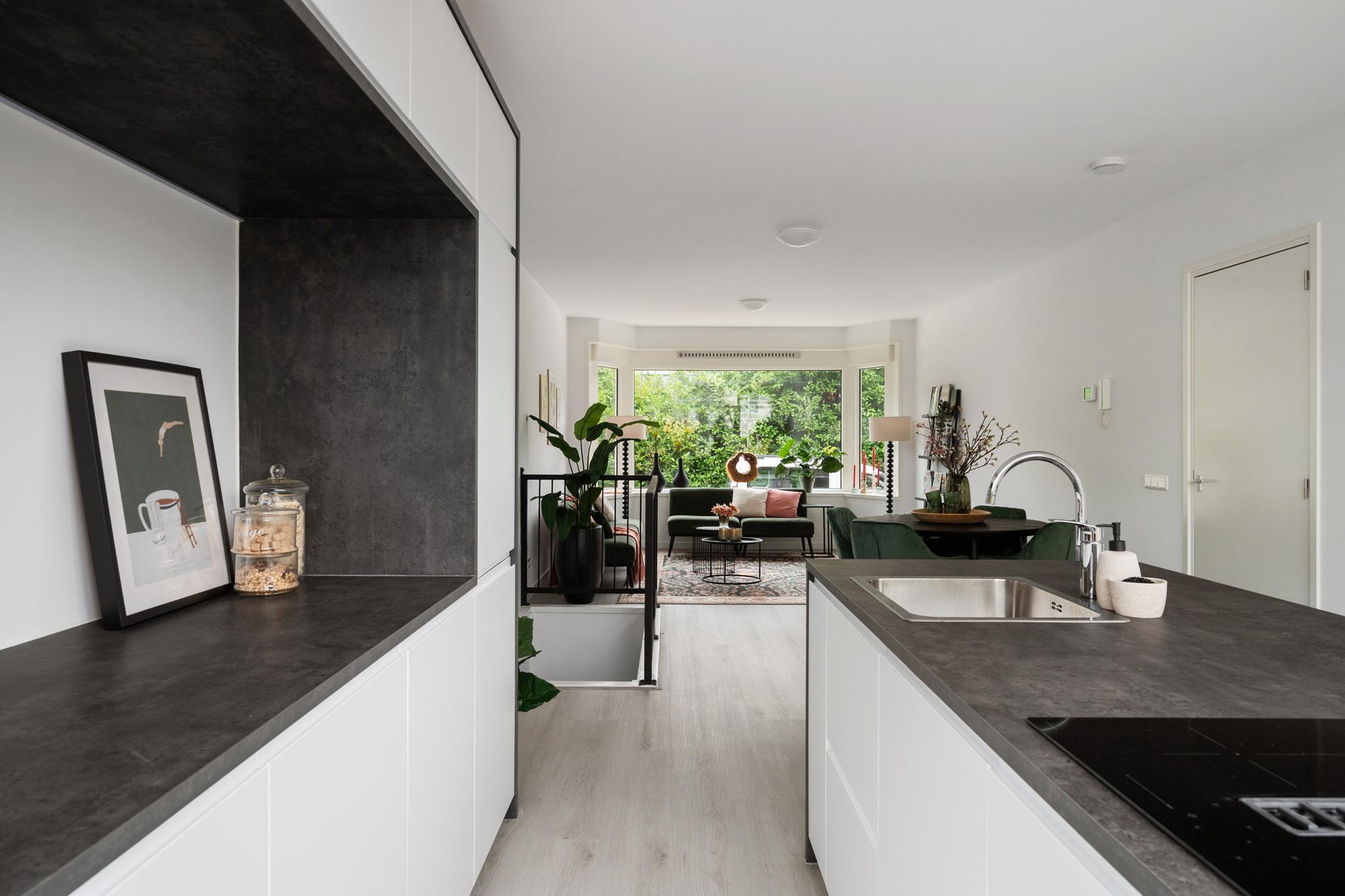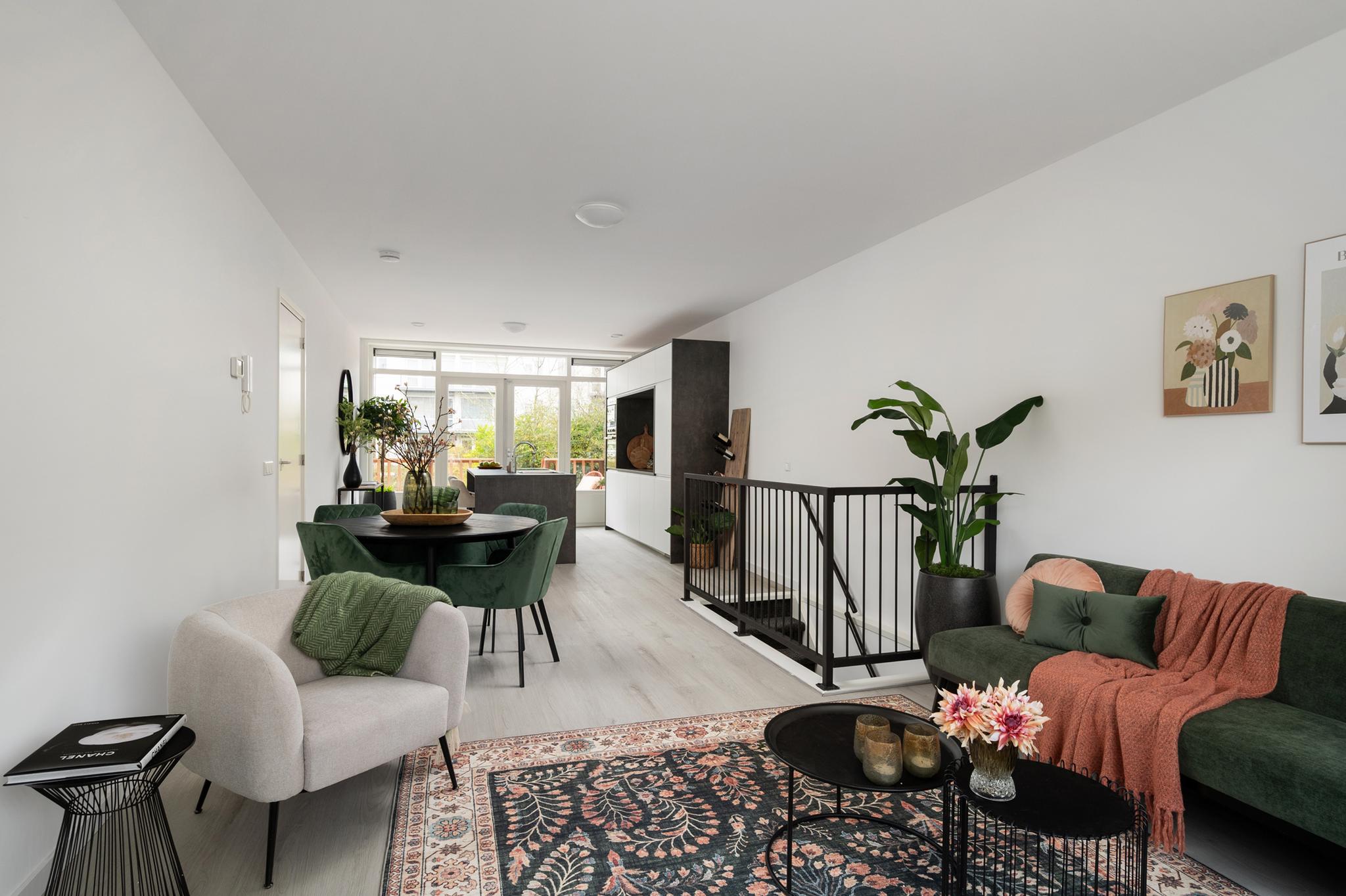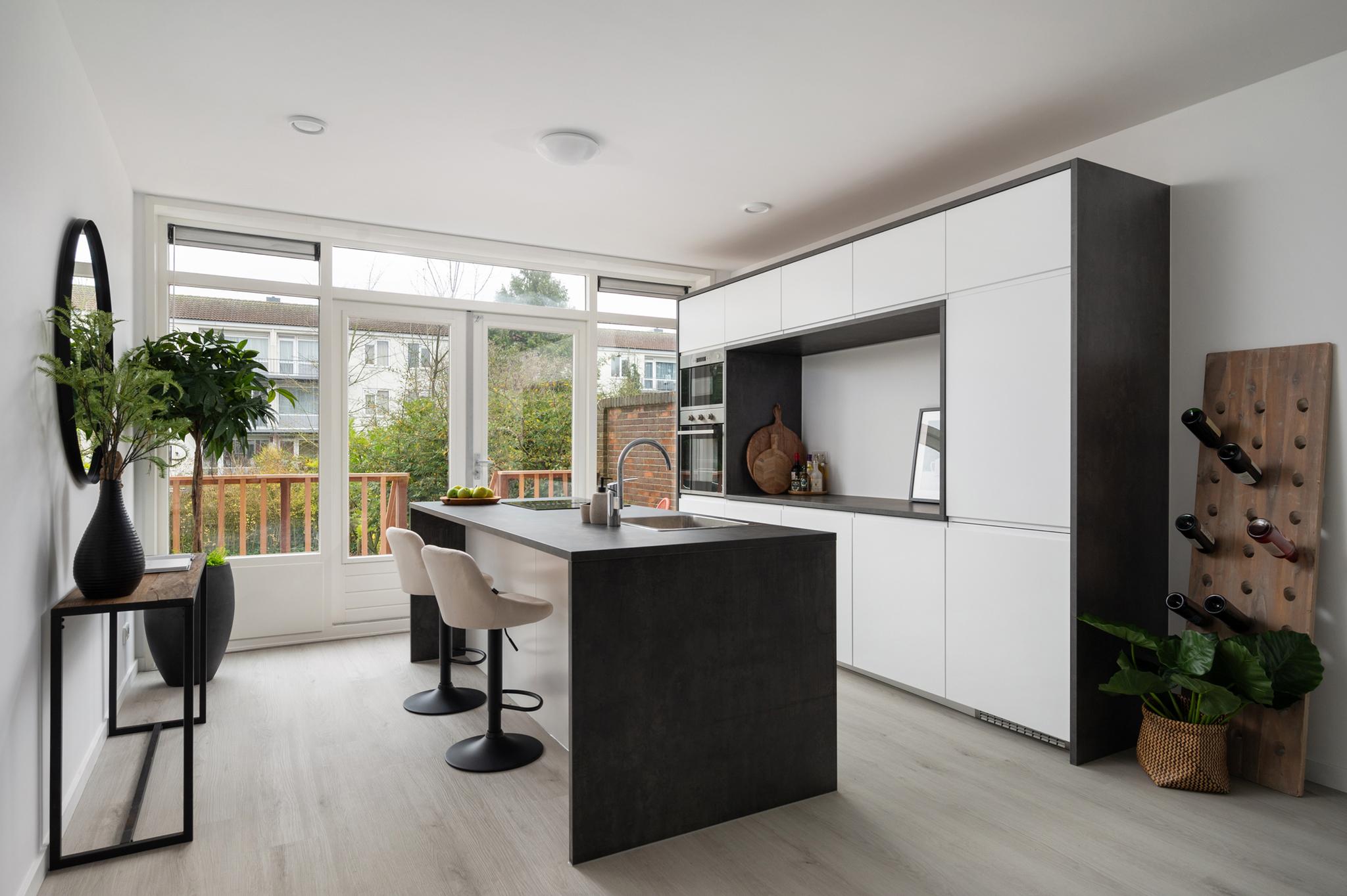 Entree met binnenkomst in de hal. Toegang tot het woongedeelte dat aan de voorzijde gelegen is. Deze fijne woonkamer heeft een erker die de ruimte extra sfeer geeft. De wanden zijn strak gestuukt en de woonkamer is voorzien van een fraaie laminaatvloer. De trap in de woonkamer brengt je naar het souterrain en de slaapkamers. Aan de achterzijde is de luxe leefkeuken gesitueerd. Het kookeiland is de blikvanger, maar ook de wandopstelling is de moeite waard! De keuken is voorzien van een inductie kookplaat, oven, magnetron, vaatwasser en afzuiging. Zie je jezelf hier al staan kokkerellen, terwijl je gasten je aan het eiland gezelschap houden? Via de openslaande deuren aan de achterzijde bereik je het fijne terras. Terug in de hal vind je het separate toilet met wastafeltje en de kast met CV-opstelling. Naast de keuken is de complete badkamer gelegen, deze is namelijk voorzien van een douche én een ligbad, wastafelmeubel en toegang naar het aan de achterzijde gelegen balkon. Vanaf het balkon aan de achterzijde bereik je via de trap de enorm diepe achtertuin. Hier kun je je helemaal uitleven! Maak je meerdere terrassen? Ga je voor en groen gazon? Je kunt hier alle kanten op, want met de ligging op het zuidwesten is dit dé perfecte buitenspot!