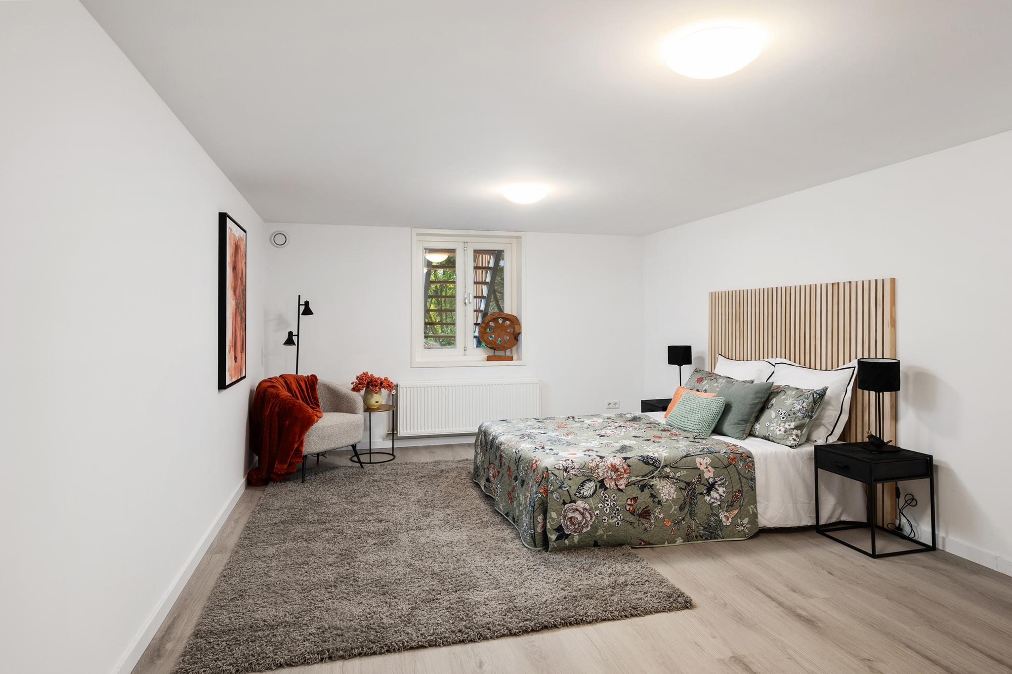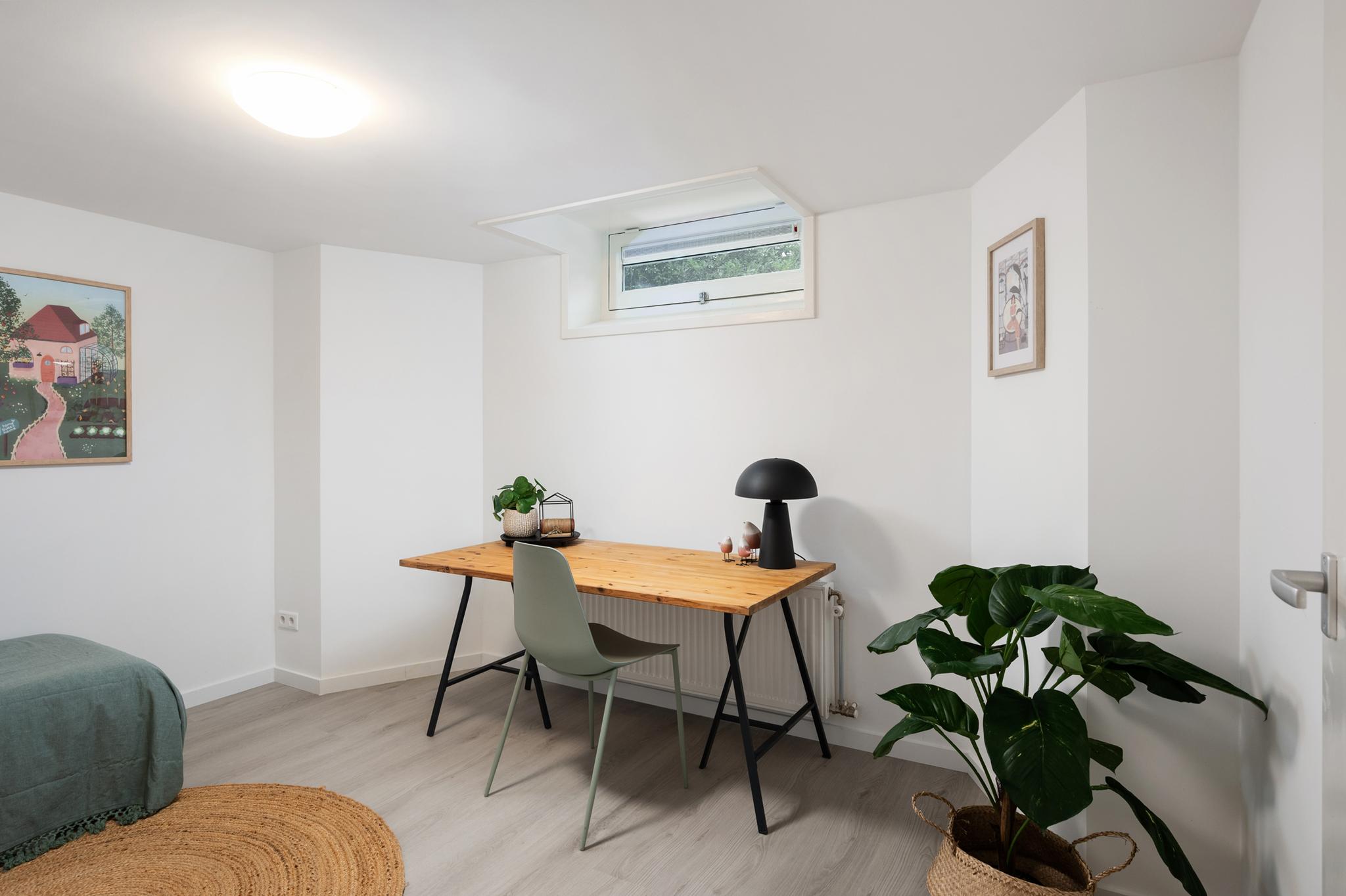 Via de trap in de woonkamer bereik je het souterrain. Vanuit de hal zijn de eerste twee ruime slaapkamers te bereiken. Deze zijn gelegen aan de voor- en aan de achterzijde. Fijne kamers met mooie afmetingen en voldoende daglicht. Loop je verder dan bereik je het tweede stukje van de hal. Hier is de opstelplaats voor de wasmachine gesitueerd. Tevens heb je hier toegang tot de derde, wat kleinere slaapkamer.