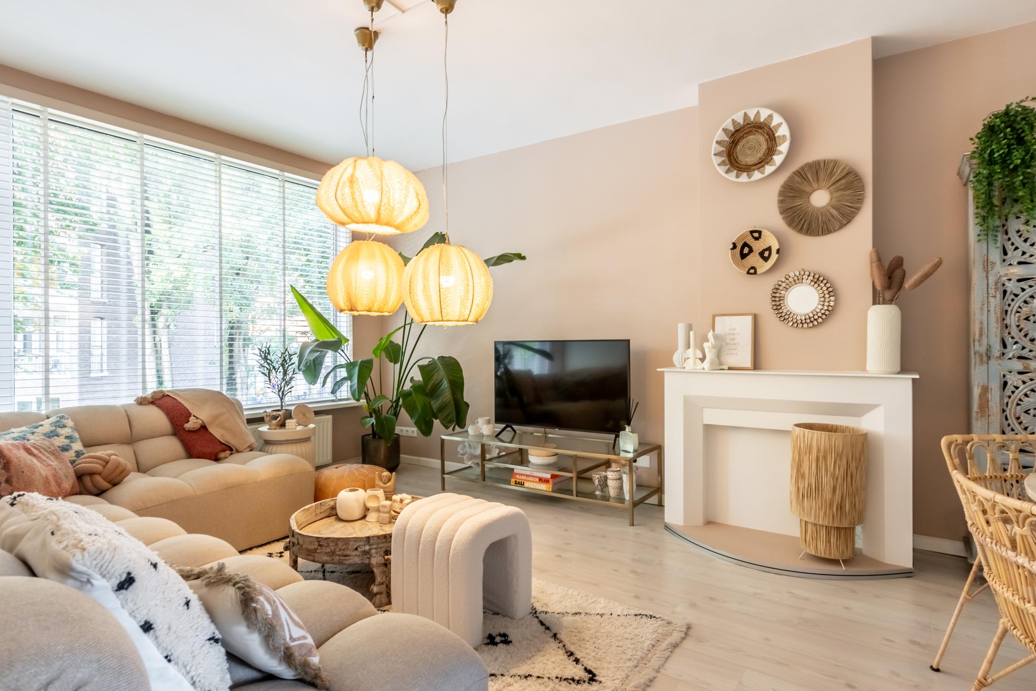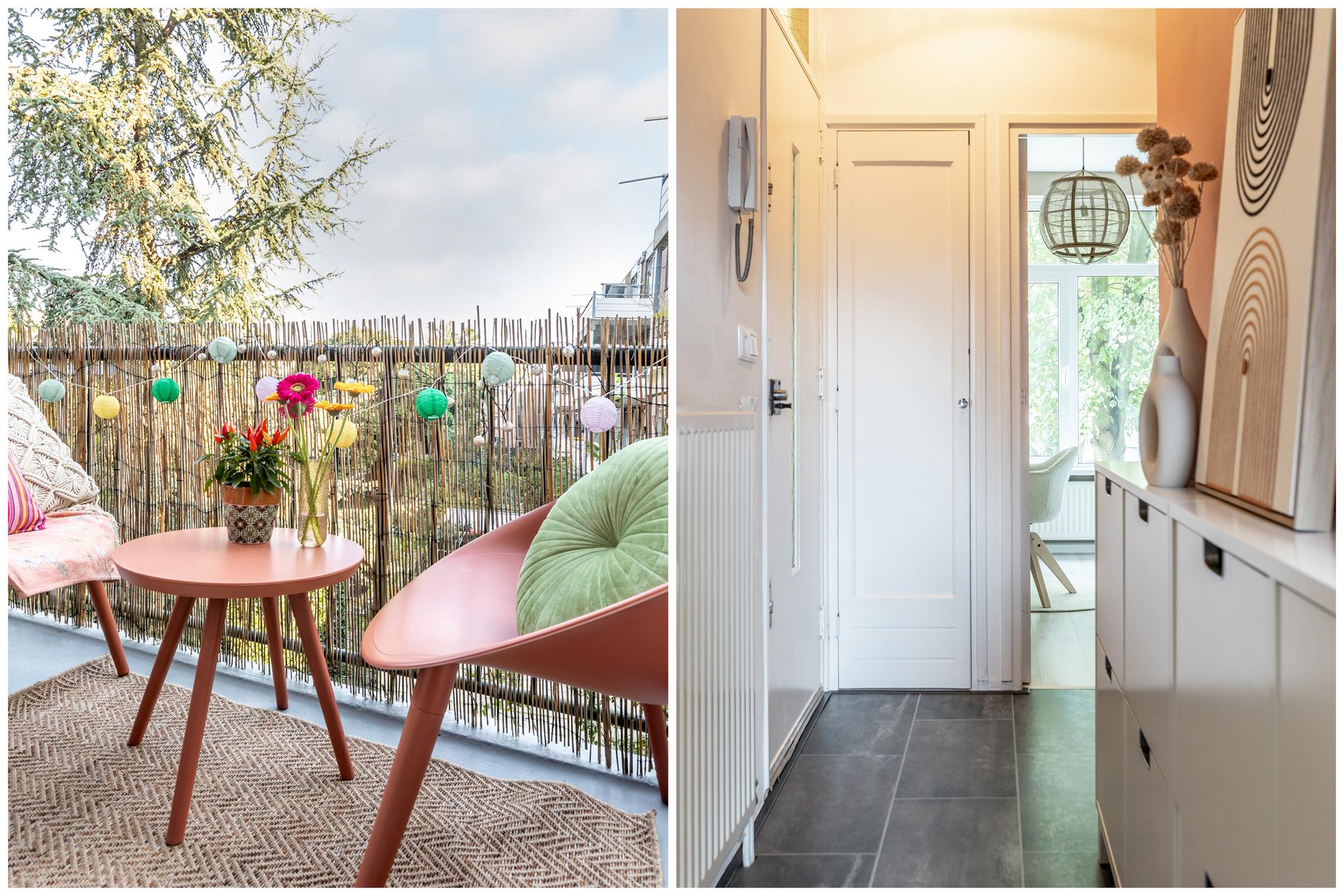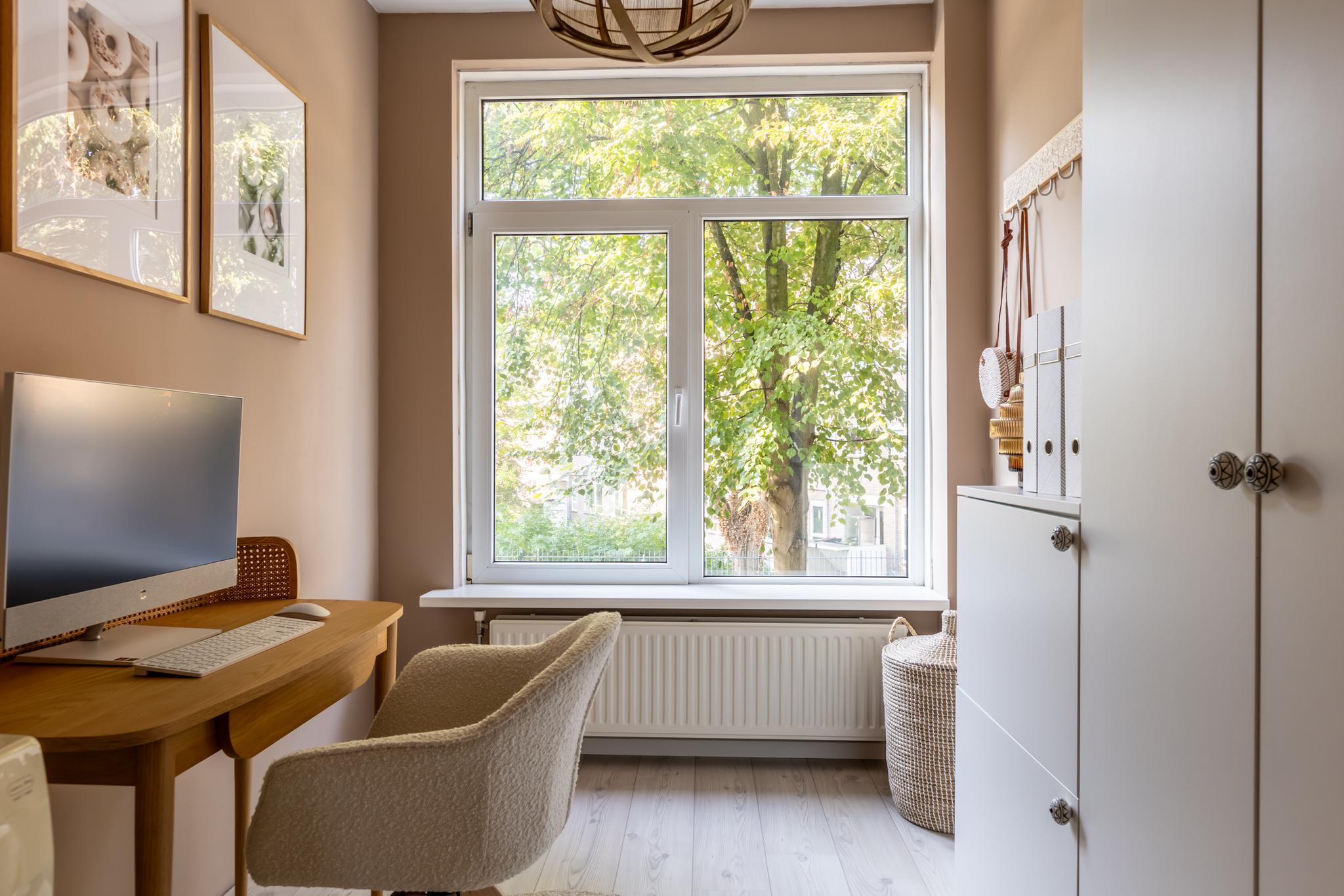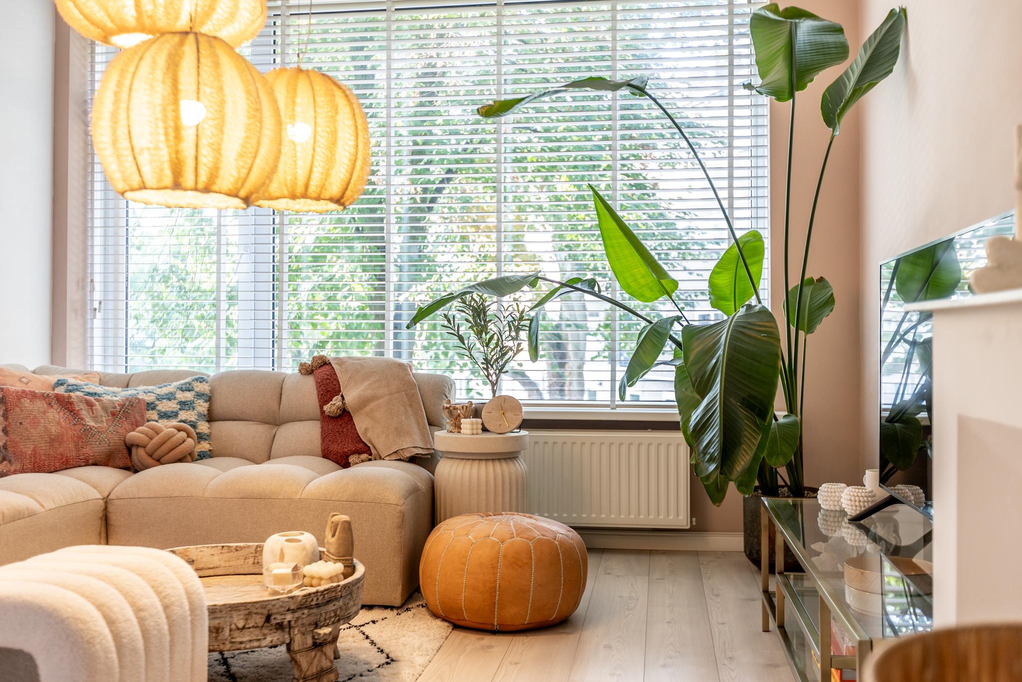 Bij binnenkomst word je verwelkomd in een ruime woonkamer, prachtig ingericht met zachte, neutrale kleuren die direct een gevoel van rust creëren. De moderne meubels, met een speelse mix van natuurlijke materialen zoals rotan en hout, maken deze ruimte niet alleen gezellig maar ook zeer uitnodigend. Grote ramen laten veel natuurlijk licht binnen en bieden een mooi uitzicht op de omgeving. De fraaie lampen in de woonkamer geven 's avonds een warme, knusse sfeer, ideaal voor ontspannen momenten. De hoofdslaapkamer is eveneens een plaatje. Hier is gekozen voor warme aardetinten die perfect passen bij de rustige uitstraling van de rest van het huis. Het nodigt uit tot lekker lang uitslapen en het interieur is minimalistisch maar toch stijlvol met prachtige decoratieve details, zoals wandkunst in natuurlijke materialen. Aangekomen in de keurige keuken welke voorzien is van een koelkast, 4-pitsgasstel, afzuigkap en een oven. Perfect! En als kers op de taart, vanuit de keuken heb je toegang tot het balkon. Waar je heerlijk kunt genieten van een kopje koffie in de ochtendzon, het balkon is gelegen op het noordoosten! De badkamer is modern en verfijnd. De combinatie van beige tegels en groene accenten geeft een natuurlijke, serene sfeer. Het is een heerlijke plek om tot rust te komen, met stijlvolle details zoals het stoere houten wastafelblad. Verder beschikt de woning over een tweede slaapkamer, perfect als thuiskantoor of logeerkamer.