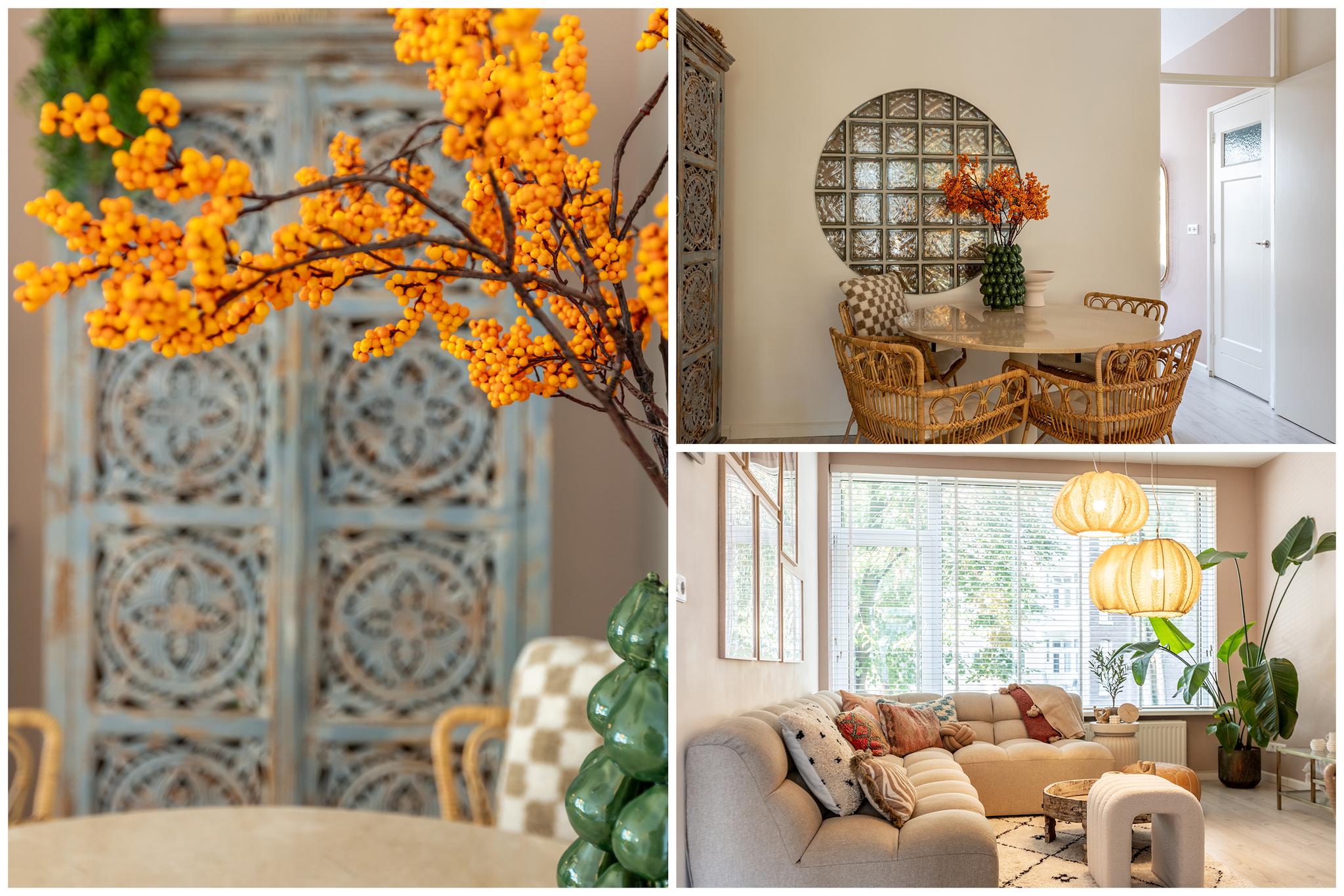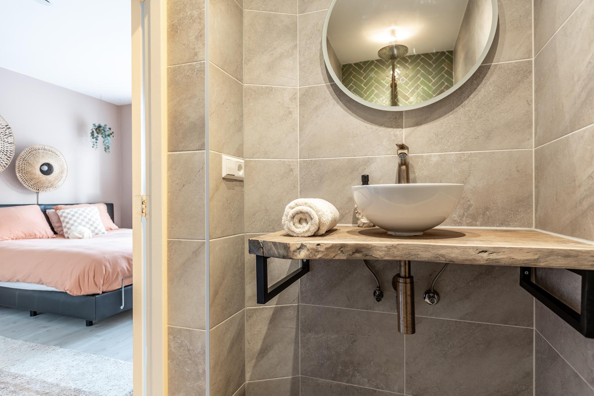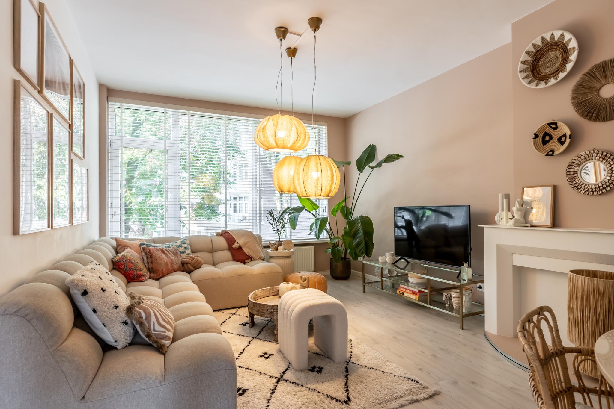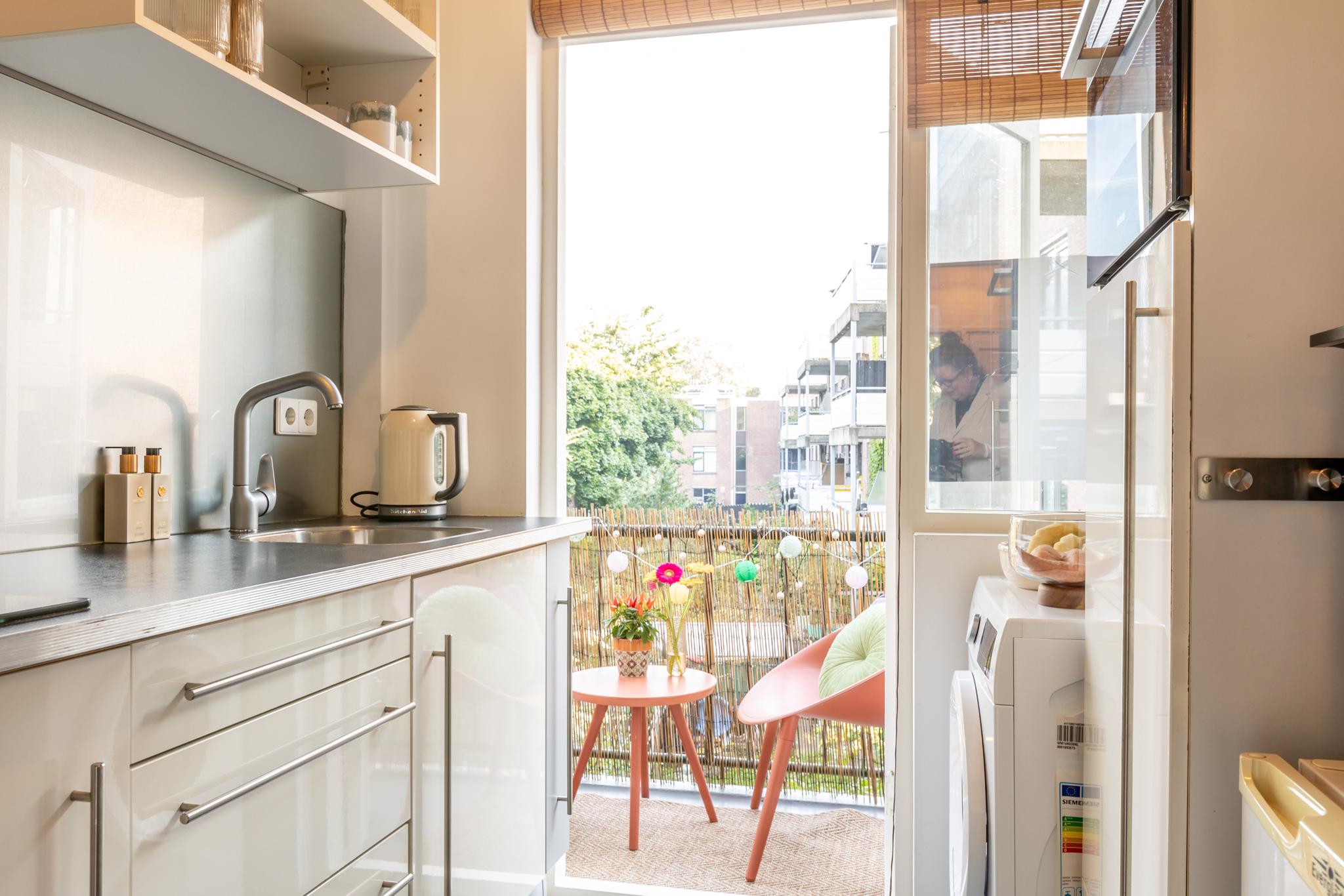 Bij binnenkomst word je verwelkomd in een ruime woonkamer, prachtig ingericht met zachte, neutrale kleuren die direct een gevoel van rust creëren. De moderne meubels, met een speelse mix van natuurlijke materialen zoals rotan en hout, maken deze ruimte niet alleen gezellig maar ook zeer uitnodigend. Grote ramen laten veel natuurlijk licht binnen en bieden een mooi uitzicht op de omgeving. De fraaie lampen in de woonkamer geven 's avonds een warme, knusse sfeer, ideaal voor ontspannen momenten. De hoofdslaapkamer is eveneens een plaatje. Hier is gekozen voor warme aardetinten die perfect passen bij de rustige uitstraling van de rest van het huis. Het nodigt uit tot lekker lang uitslapen en het interieur is minimalistisch maar toch stijlvol met prachtige decoratieve details, zoals wandkunst in natuurlijke materialen. Aangekomen in de keurige keuken welke voorzien is van een koelkast, 4-pitsgasstel, afzuigkap en een oven. Perfect! En als kers op de taart, vanuit de keuken heb je toegang tot het balkon. Waar je heerlijk kunt genieten van een kopje koffie in de ochtendzon, het balkon is gelegen op het noordoosten! De badkamer is modern en verfijnd. De combinatie van beige tegels en groene accenten geeft een natuurlijke, serene sfeer. Het is een heerlijke plek om tot rust te komen, met stijlvolle details zoals het stoere houten wastafelblad. Verder beschikt de woning over een tweede slaapkamer, perfect als thuiskantoor of logeerkamer.