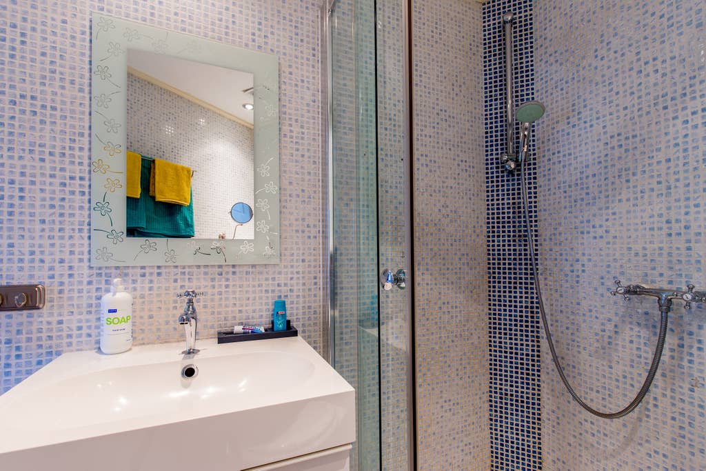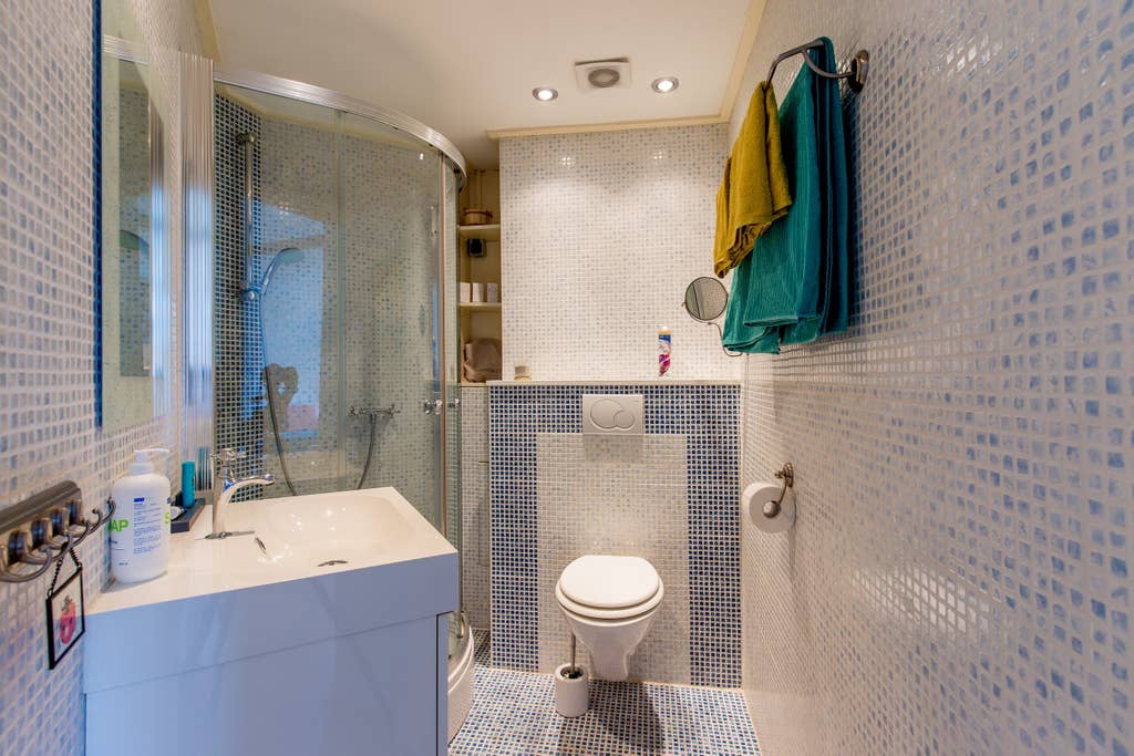 De ruime slaapkamer heeft een speelse erker en een inbouwkast. Vanuit de woonkamer is via het halletje de badkamer bereikbaar. Deze is geheel betegeld en voorzien van een douche, een wastafel met meubel en een toilet. Daarnaast is op de hal nog ruimte om de wasmachine te plaatsen.