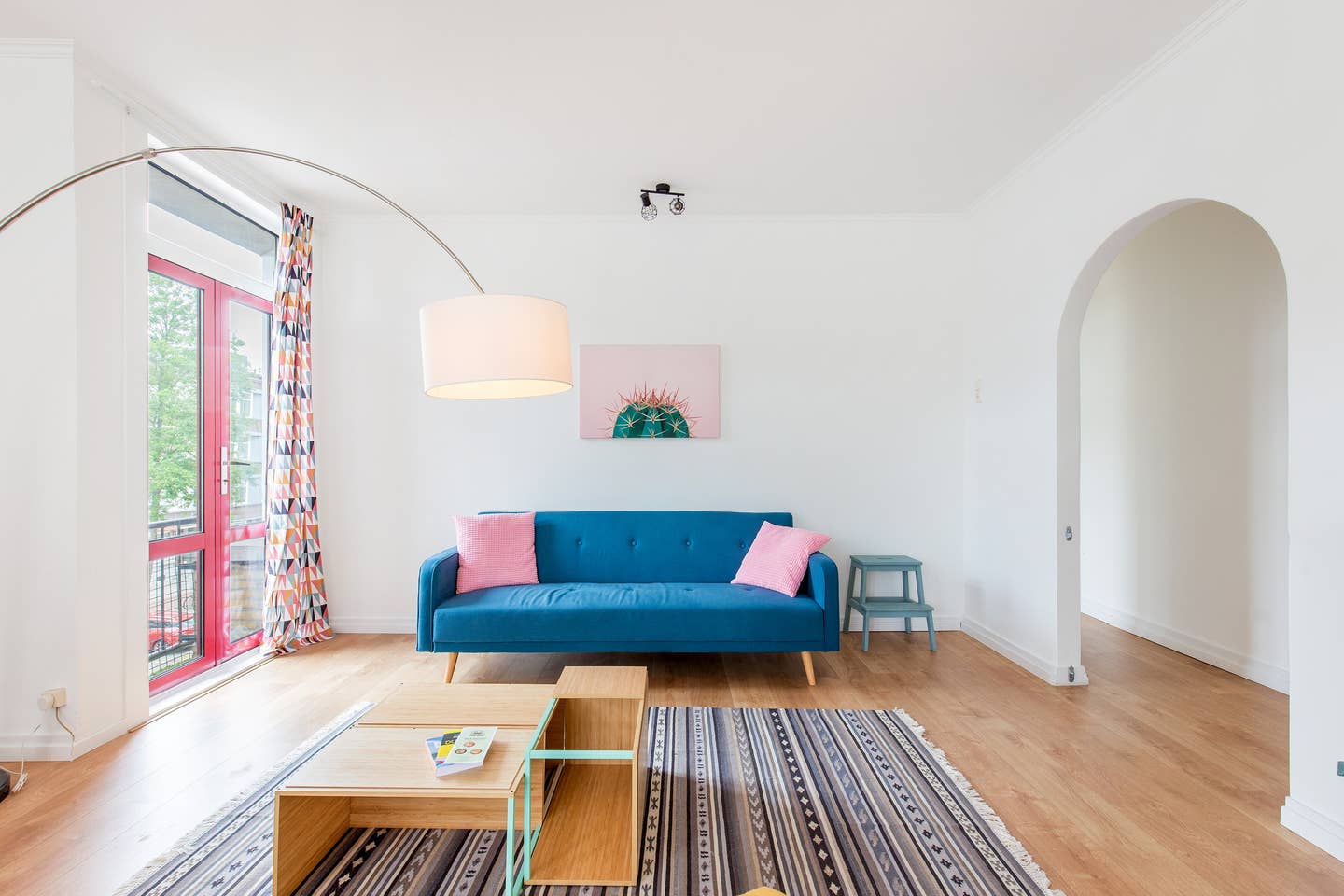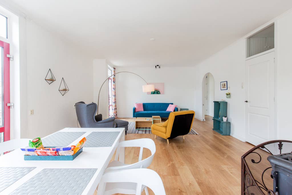 In de woonkamer, de keuken en de hal ligt een laminaatvloer. De slaapkamer heeft een kurkvloer.