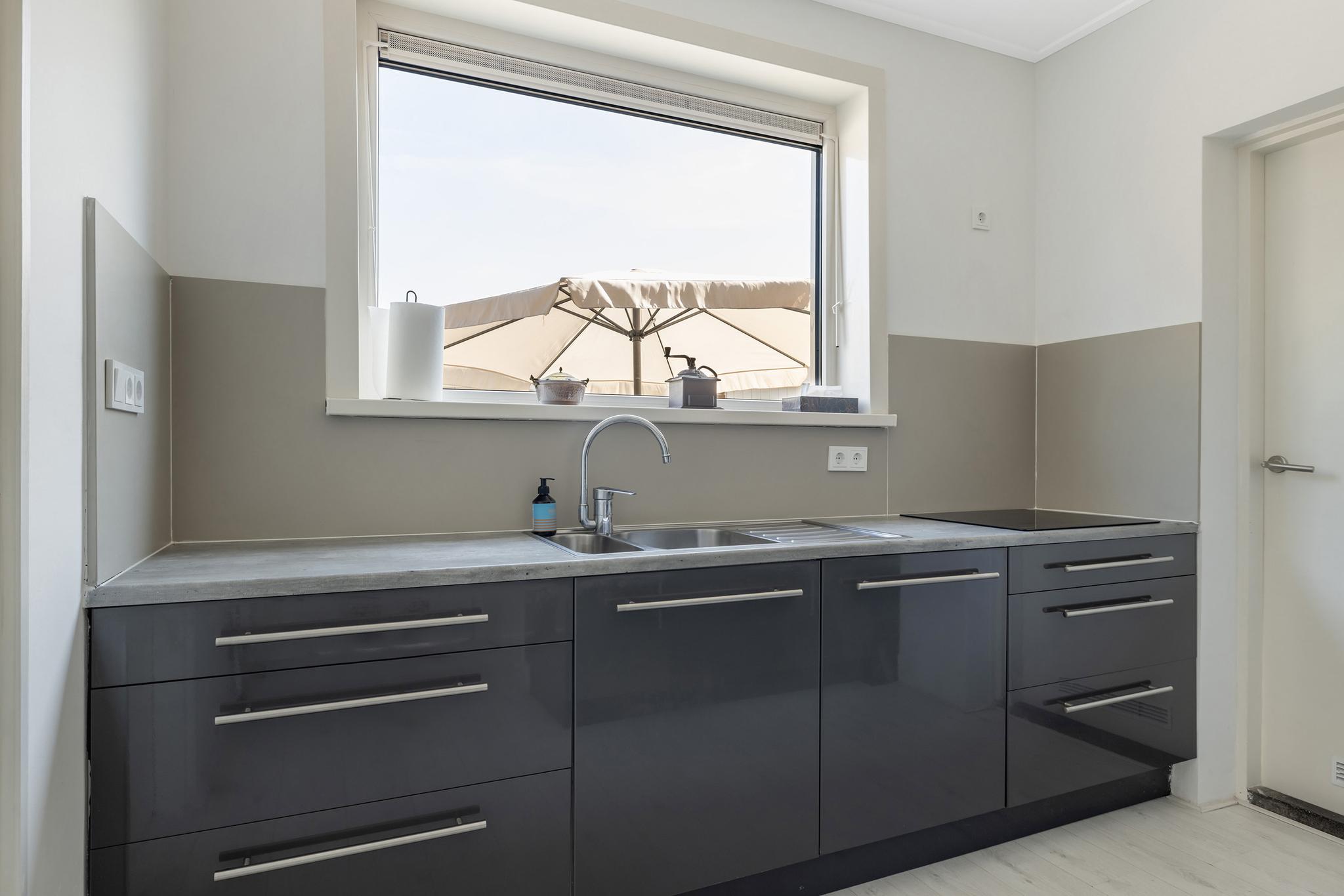 De moderne keuken is in een dubbele wandopstelling geplaatst en beschikt over een inductie kookplaat, koelkast, vriezer, vaatwasser en combi-oven. Vanuit de keuken is de naastgelegen bijkeuken bereikbaar. Daarnaast is vanuit de keuken de kelder begaanbaar, een prettige ruimte om allerlei voorraden op te slaan. Verder is de keuken voorzien van een nette laminaatvloer.