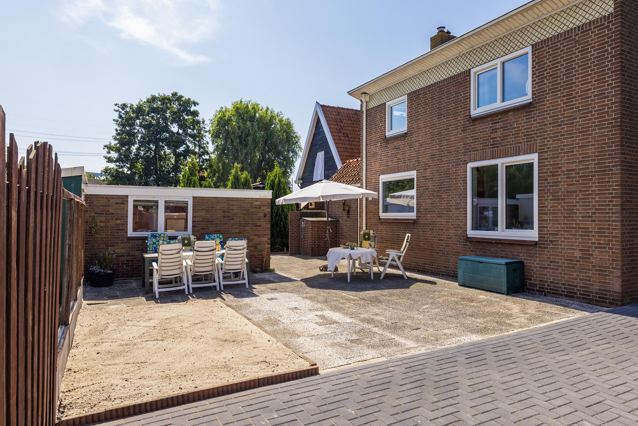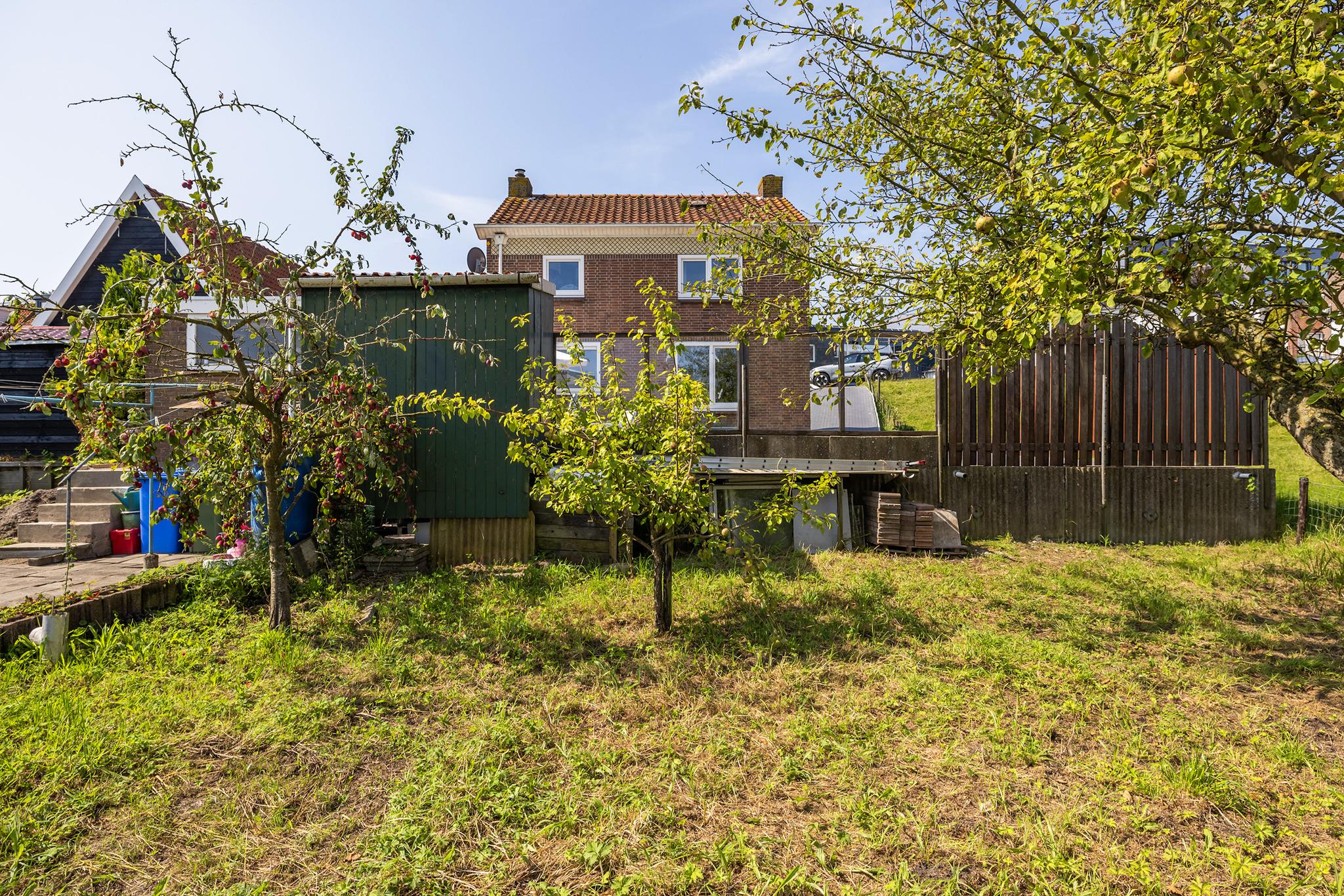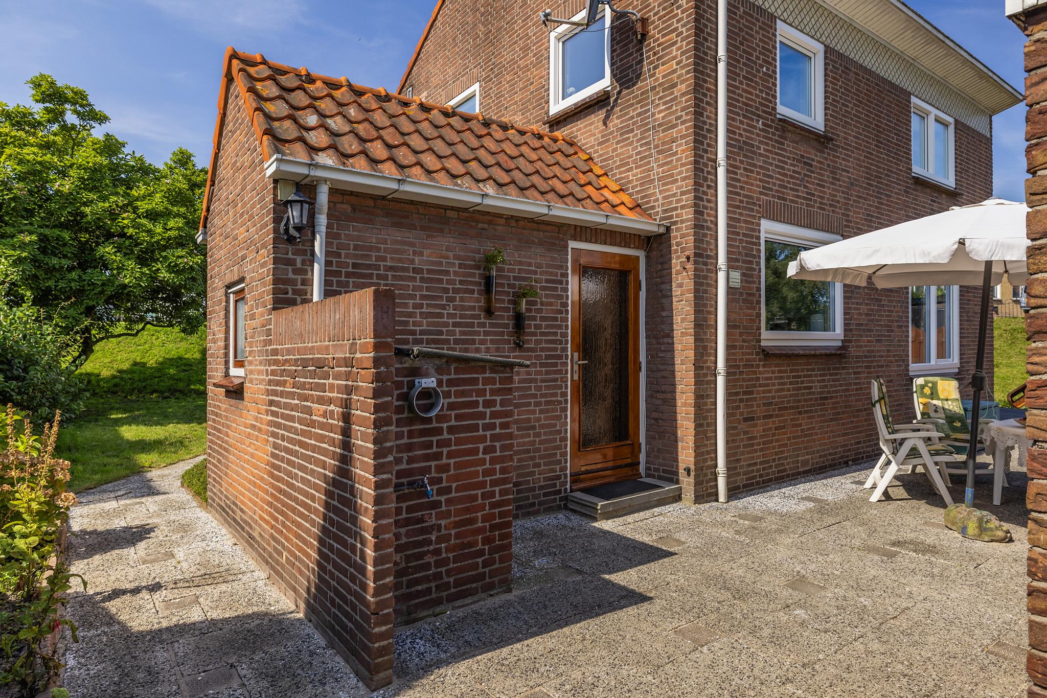 De woning beschikt rondom over een ruime tuin. Een deel van de tuin is gelegen tegen het talud van de dijk, vanaf de weg heb je hier toegang tot de oprit waar twee auto's kunnen worden geparkeerd.