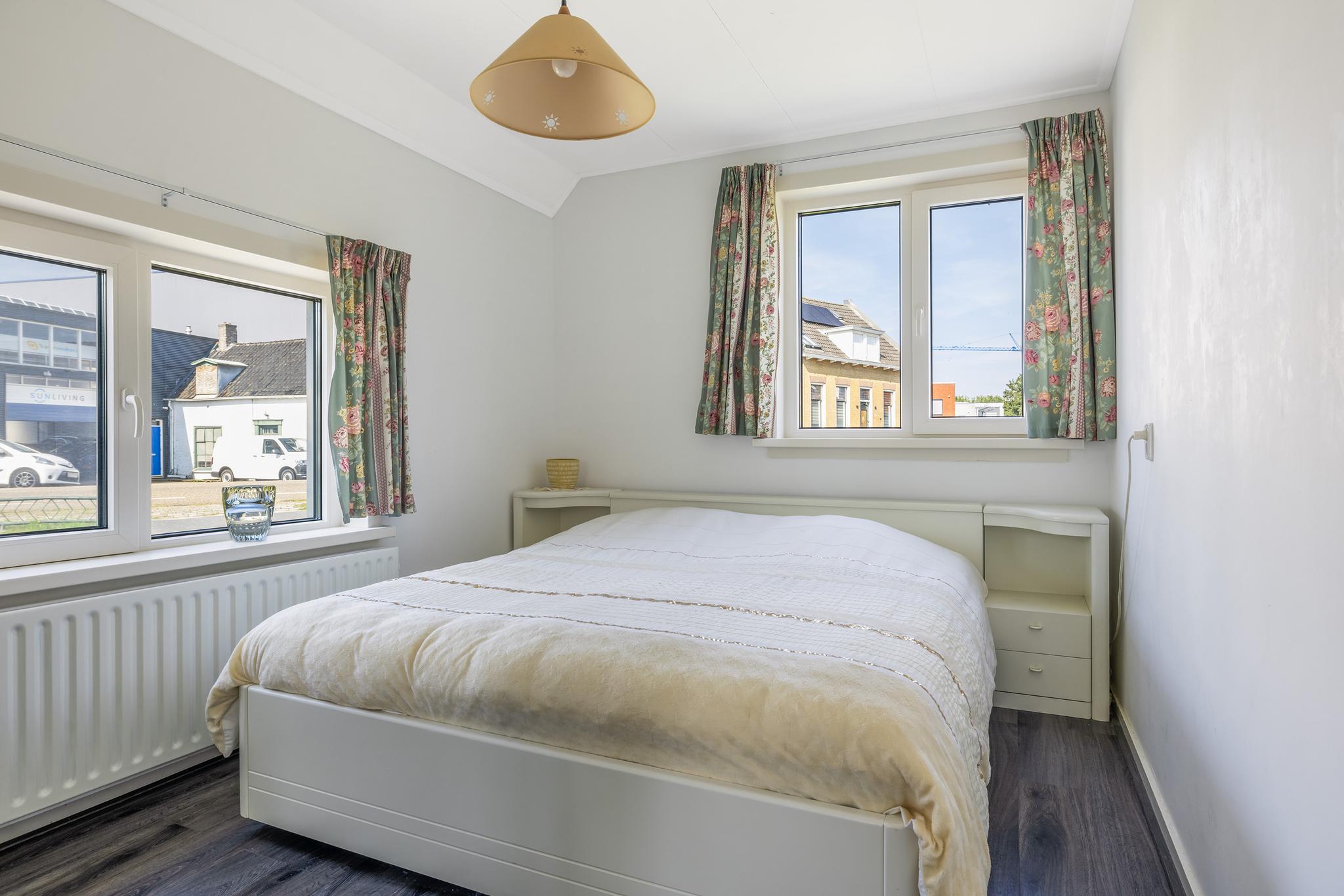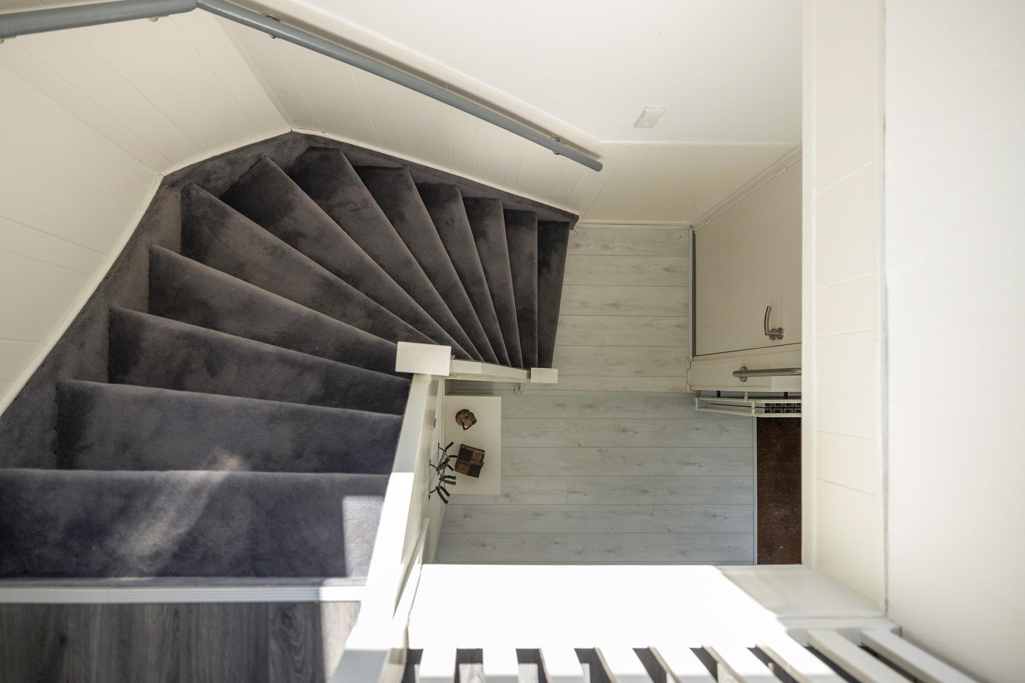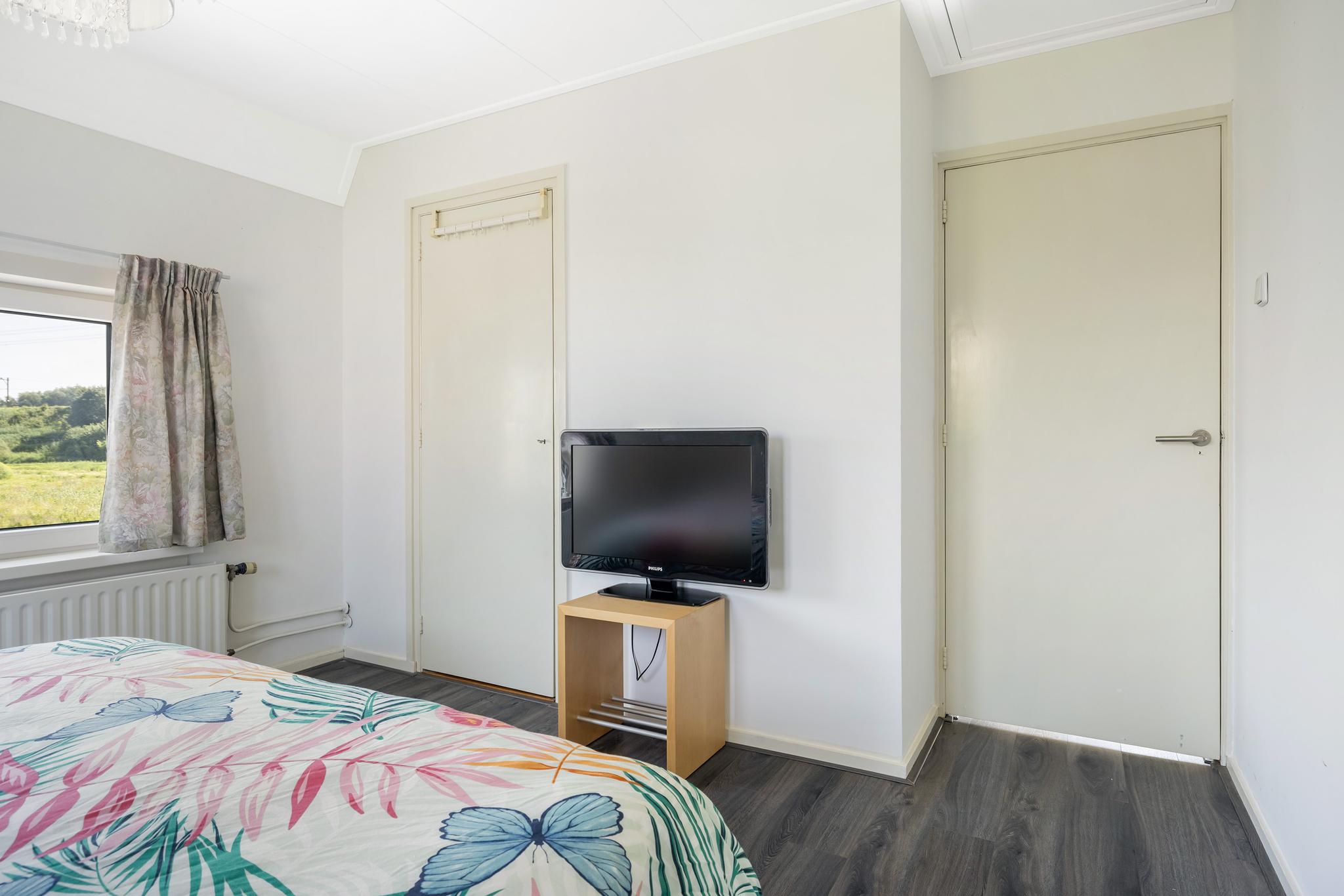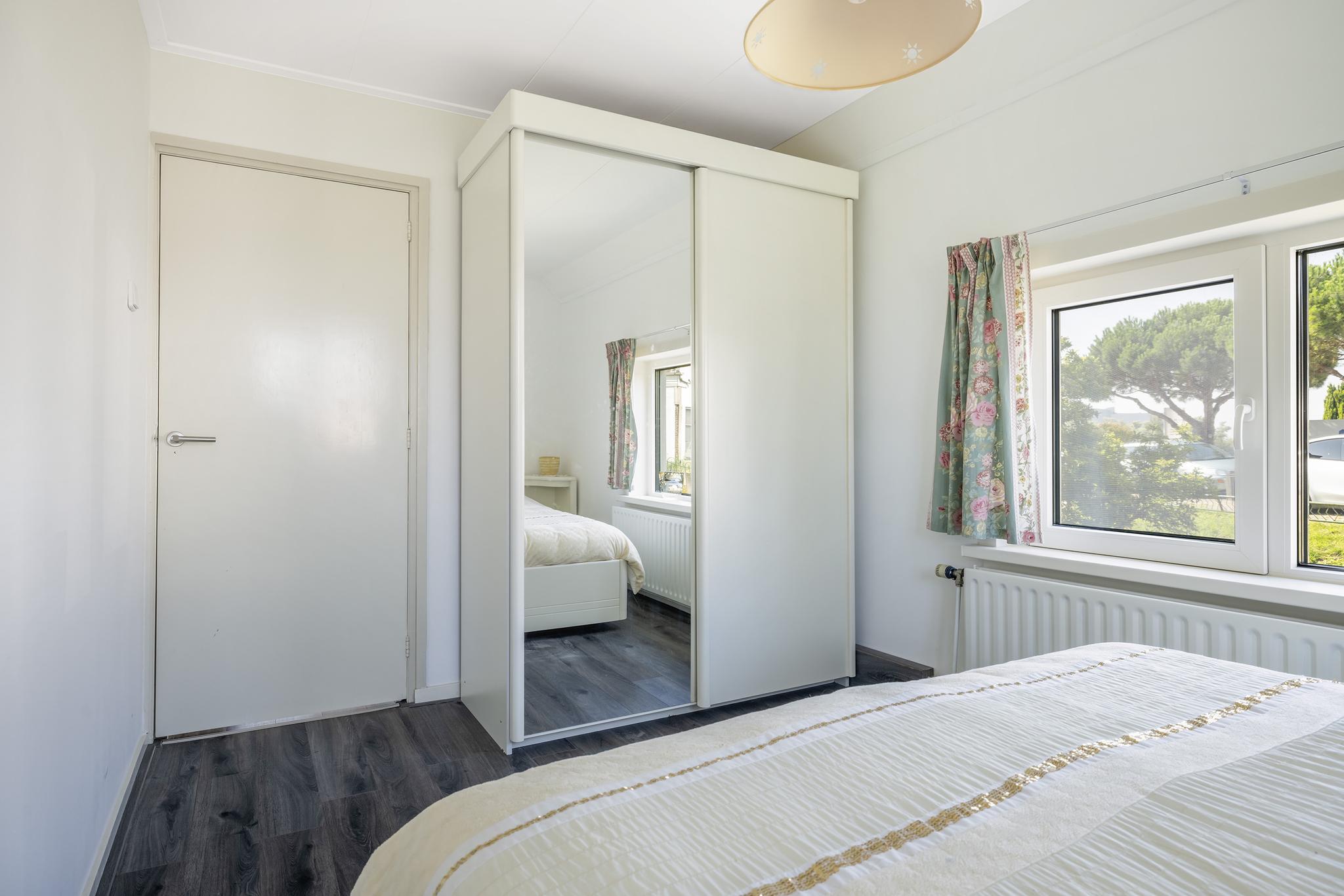 Ruime slaapkamer aan achterzijde met inbouwkast, laminaatvloer, stucwerk wandafwerking en toegang tot de vliering middels een vliso-trap.