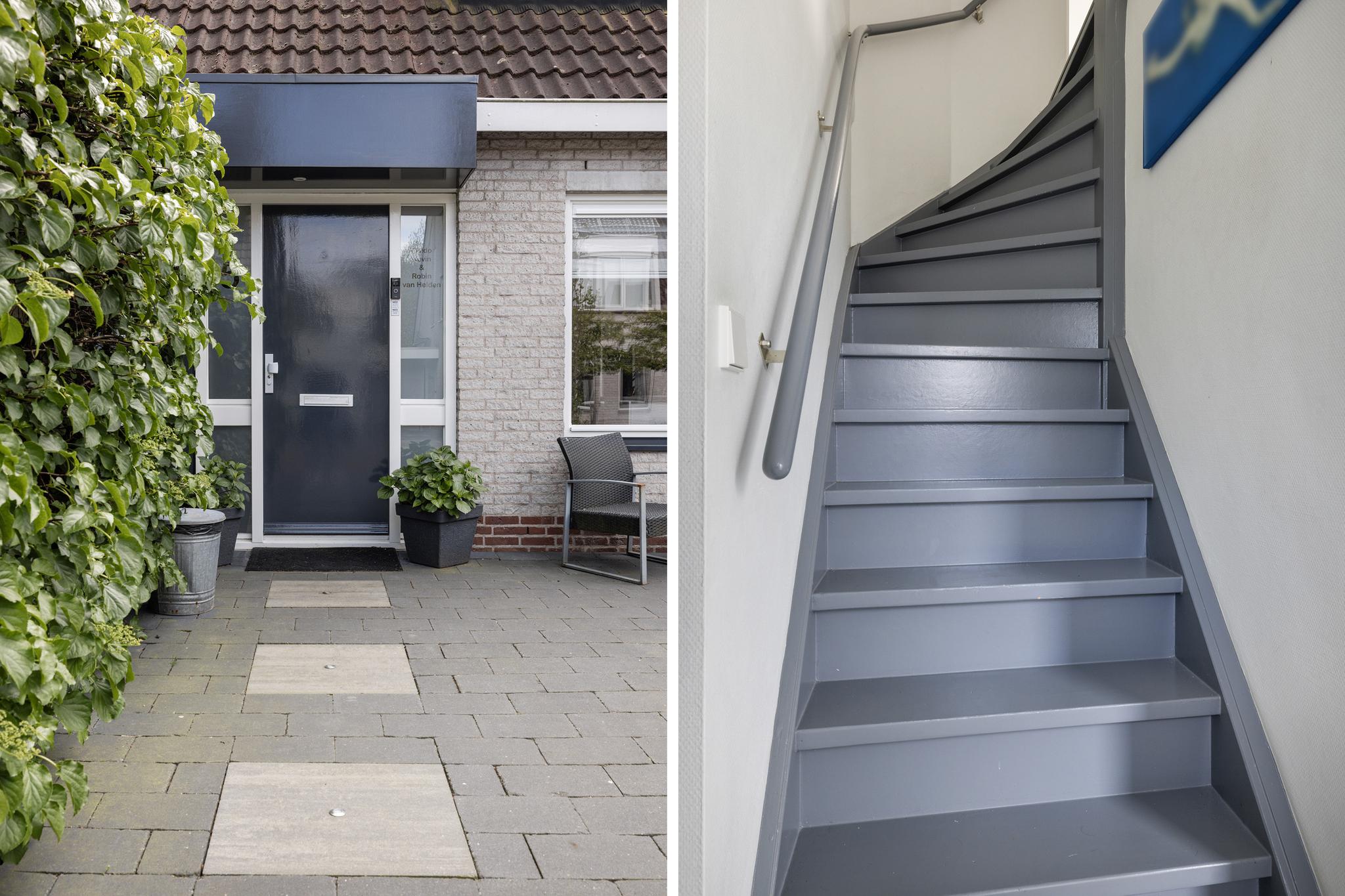 Entree in hal met meterkast, trapopgang, toegang tot de garage, het toilet en de woonkamer.