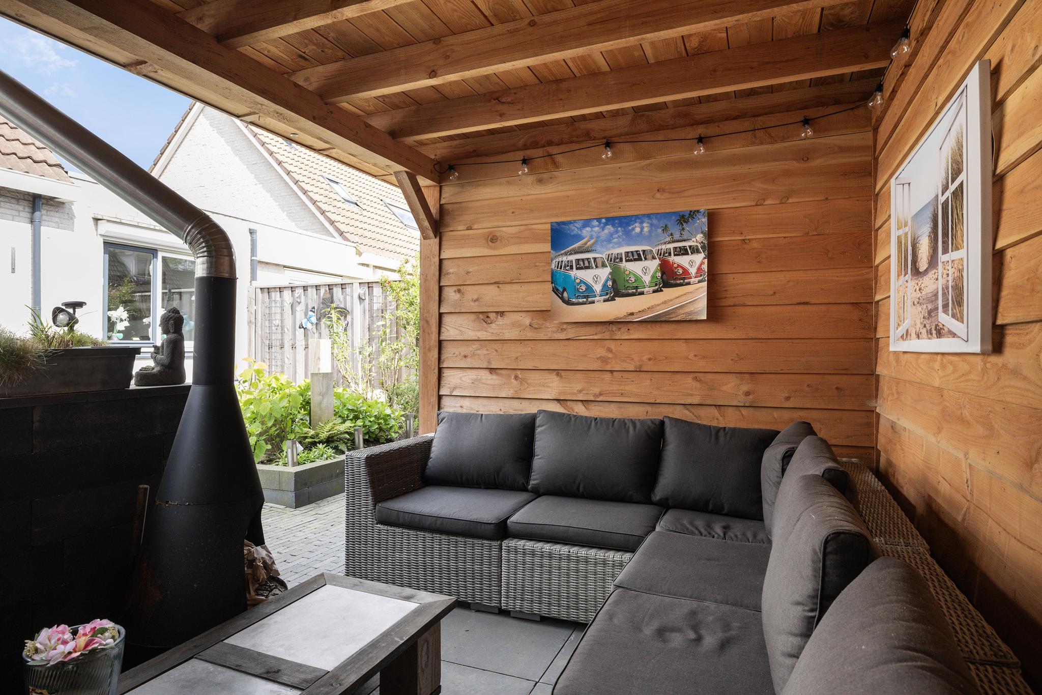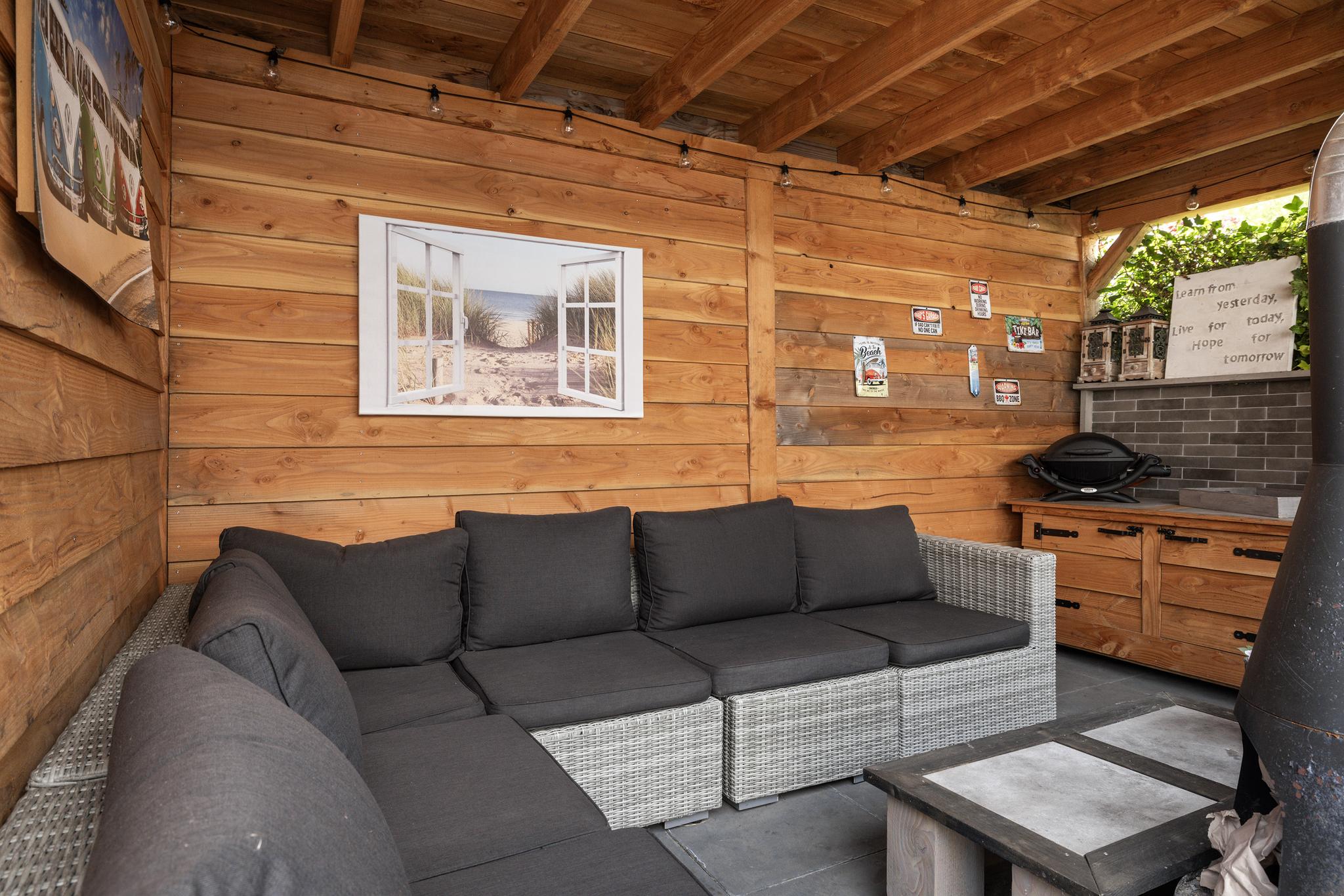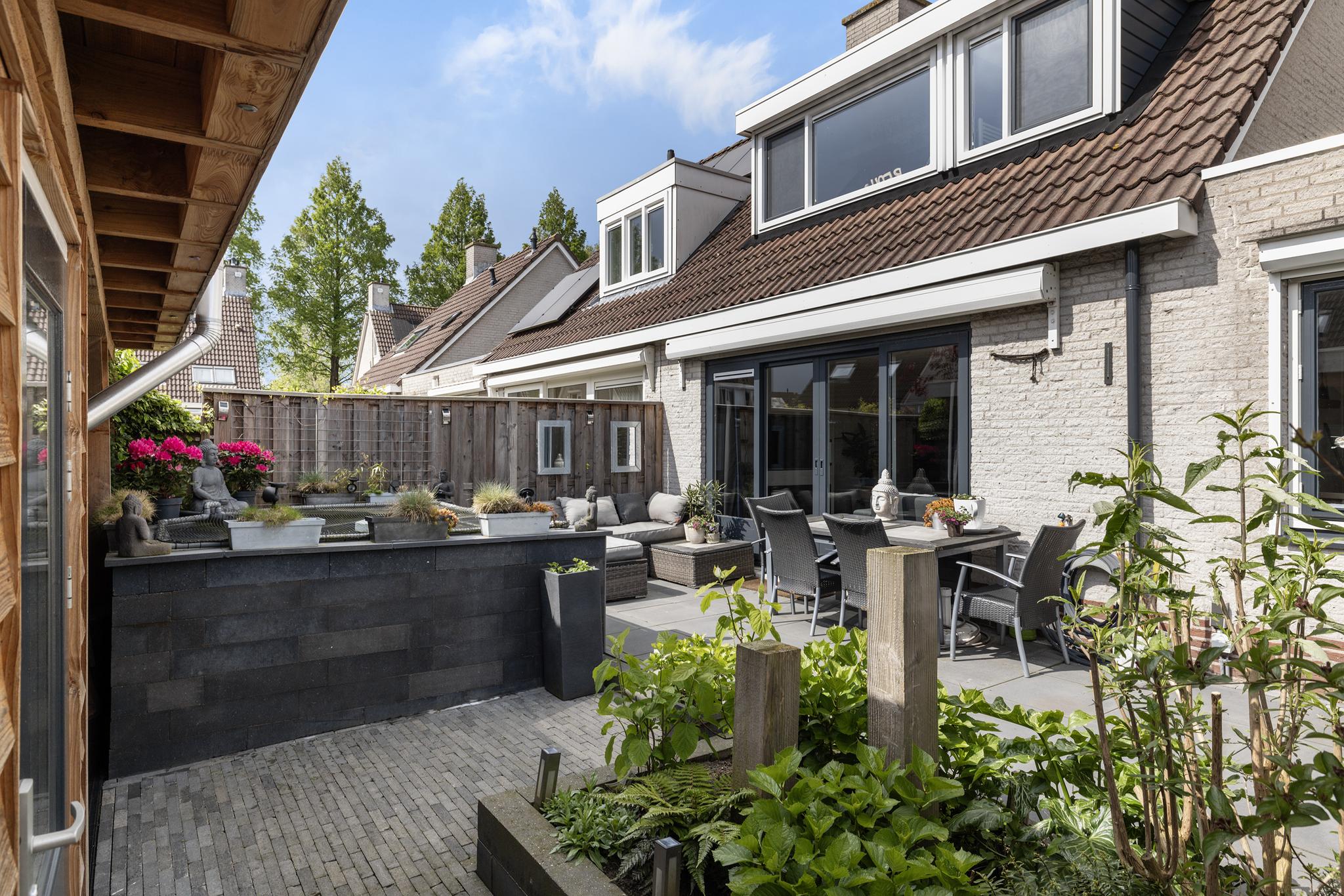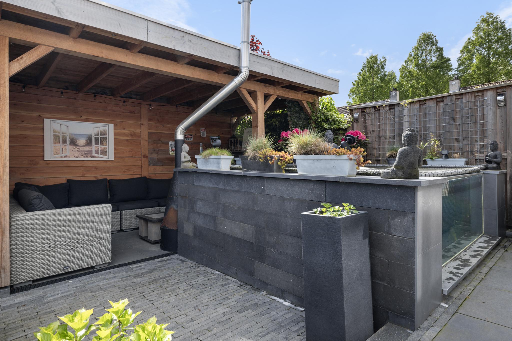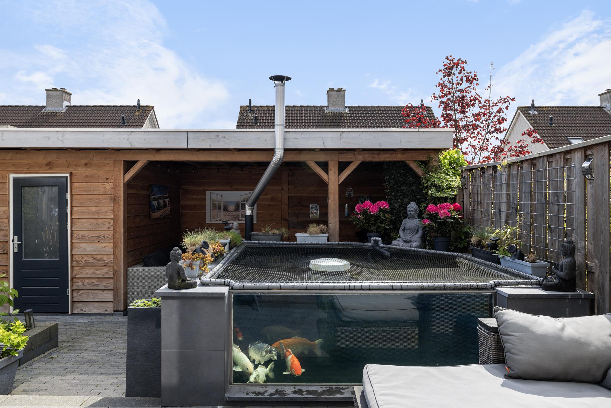 De heerlijke grote en brede tuin is een lust voor het ook met een enorme houten overkapping en berging, een vijver (vissen gaan mee) met glazen ruit zodat je je vissen kunt zien zwemmen vanuit de woonkamer.