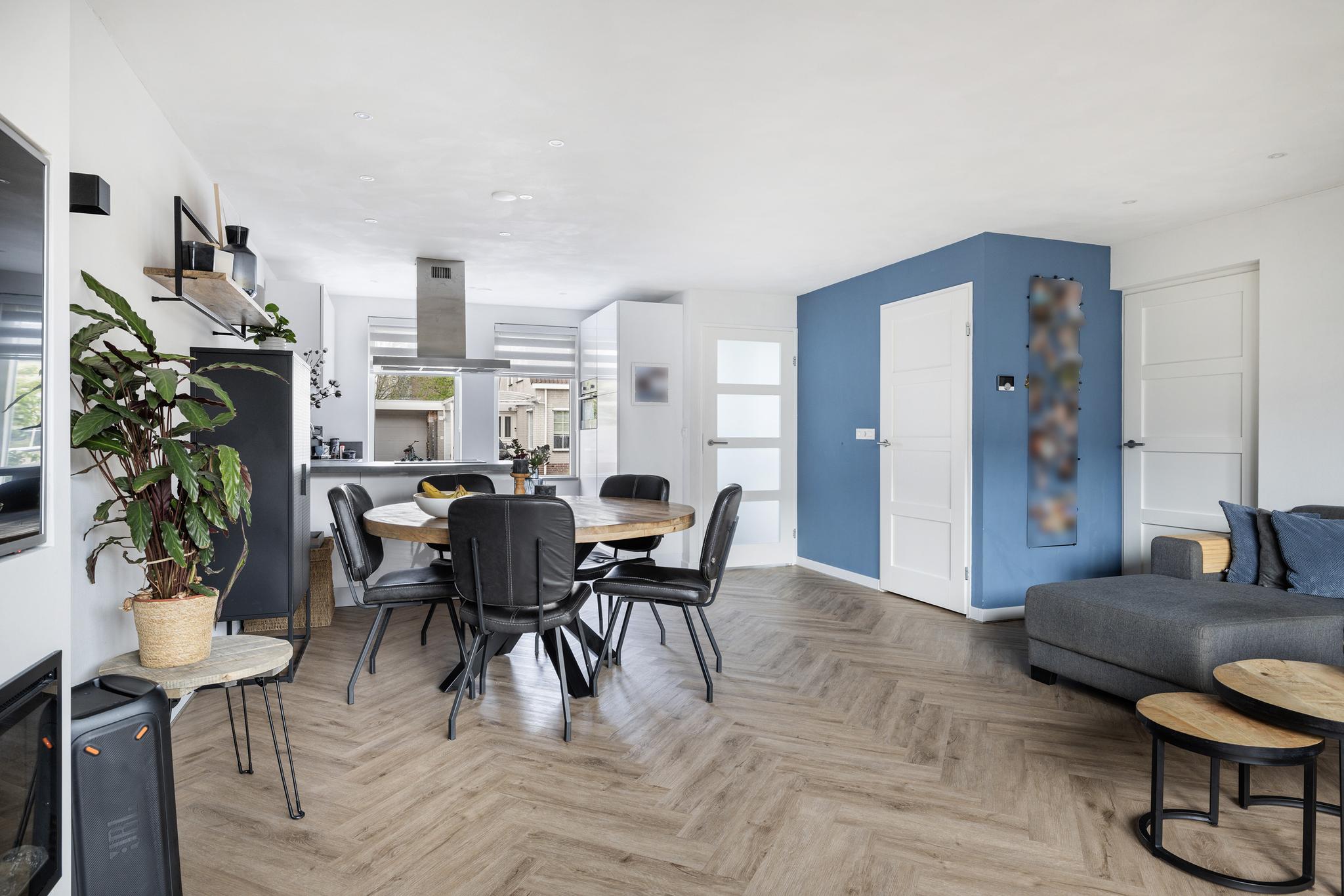 Heerlijk ruime tuingerichte woonkamer met grote schuifpui naar buiten. In de woonkamer is een elektrische haard aanwezig, de open keuken bevindt zich aan de voorzijde. Daarnaast is er een deur aanwezig naar de slaapkamer met badkamer op de begane grond en een grote bergkast onder de trap.
