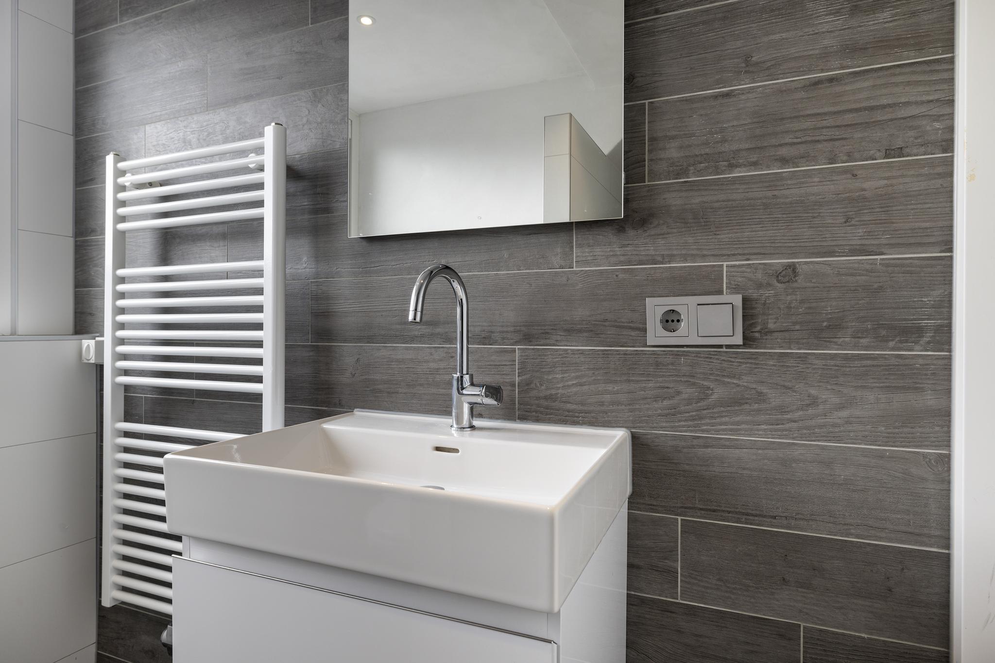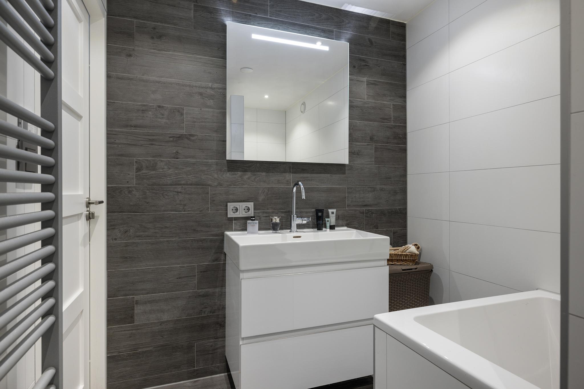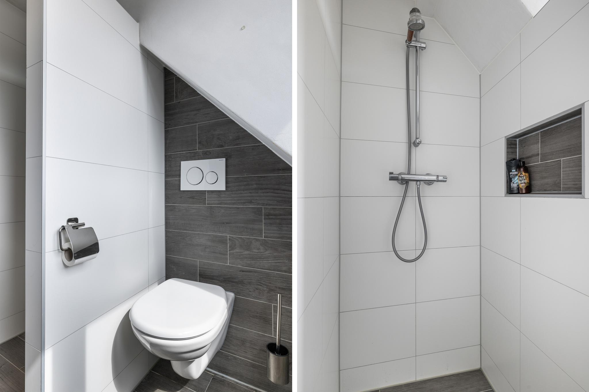 Op deze verdieping is ook een badkamer aanwezig, super praktisch en luxe! De badkamer is in 2022 nieuw gerealiseerd en voorzien van een vrijhangend toilet, wastafel en meubel, inloop douche, thermostaatkraan, design radiator en ook hier een elektrisch rolluik.