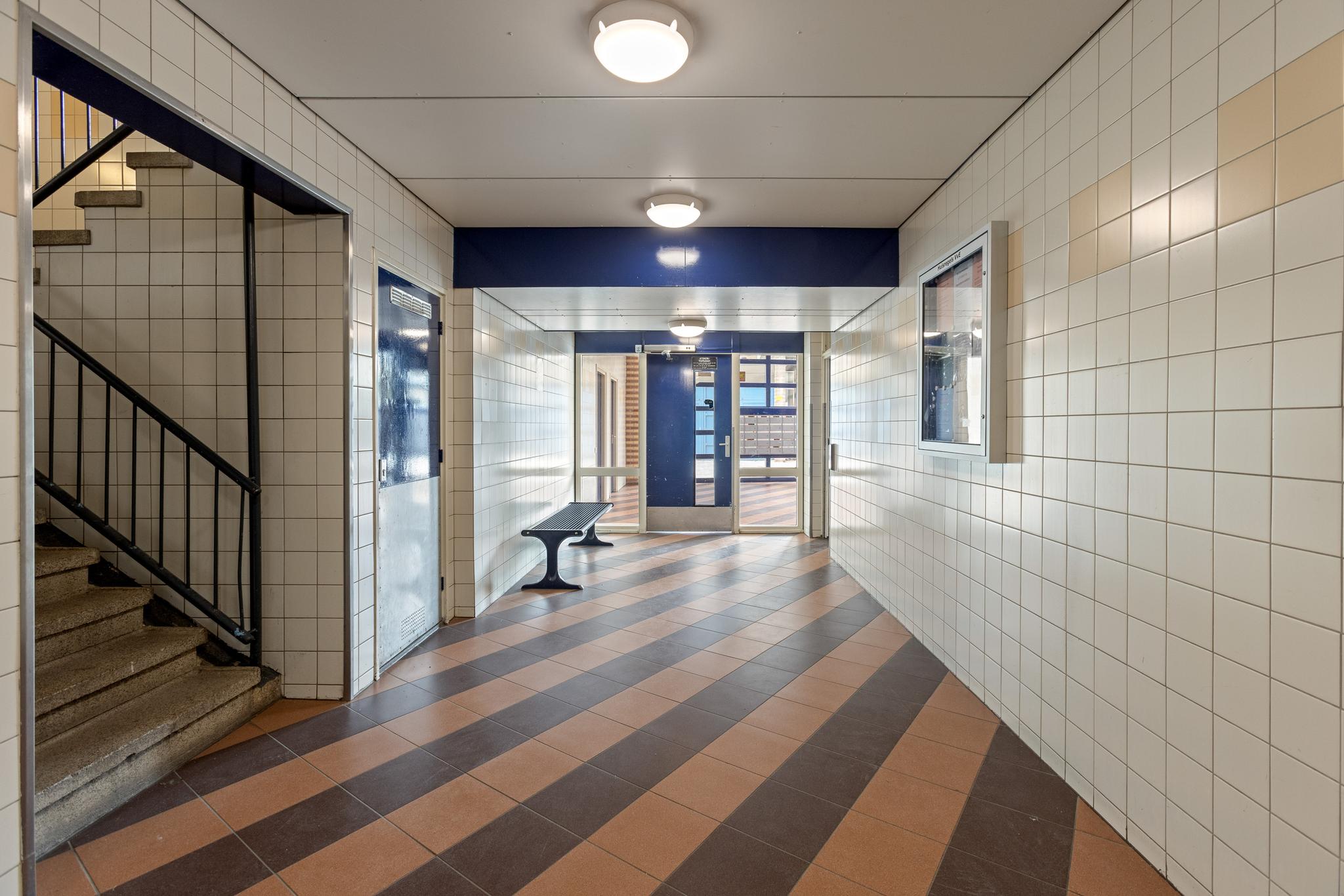Entree met brievenbussen en bellentableau, brievenbussen, trapopgang en liften naar de verdiepingen en toegang tot de bergingen.