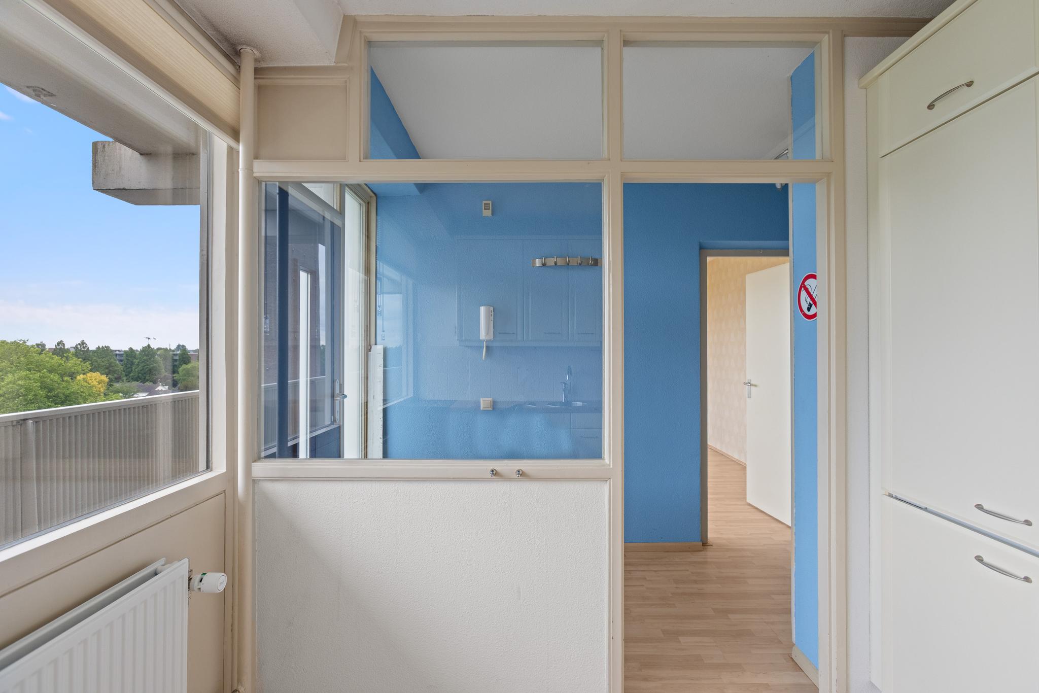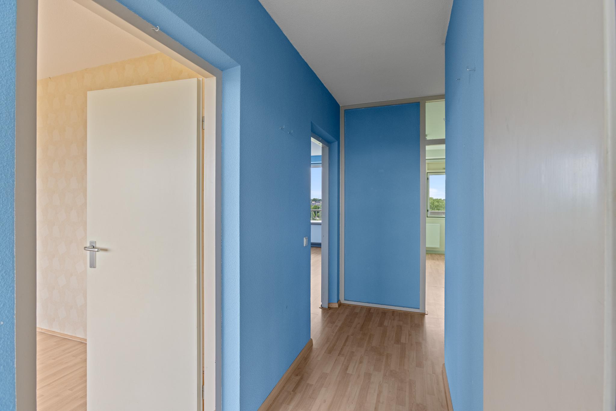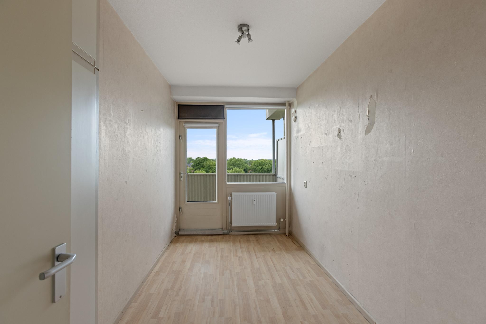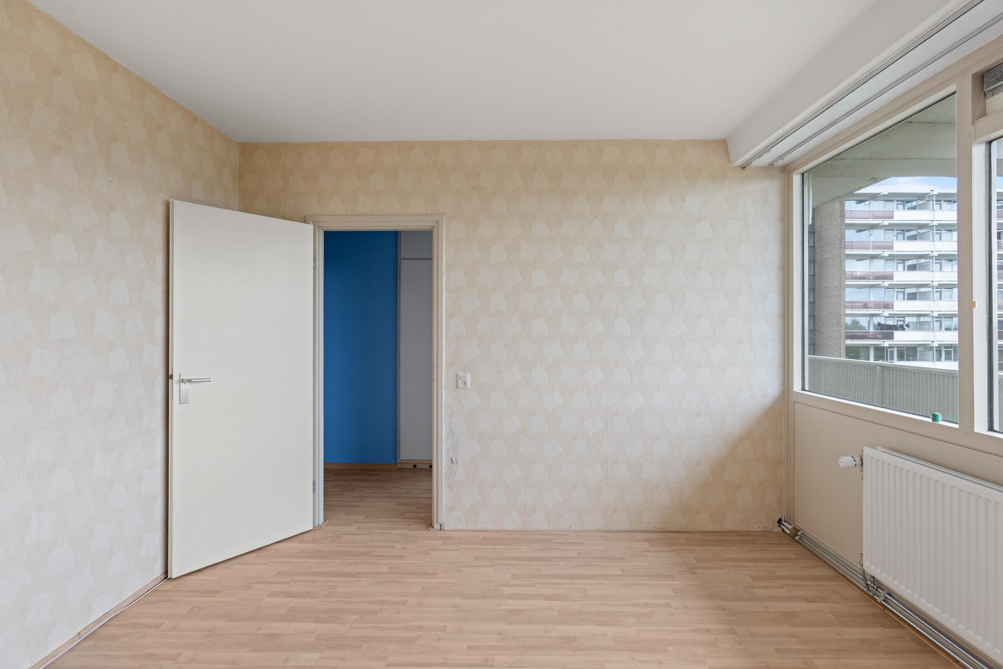 Tevens bevindt zich aan de galerijzijde de grote slaapkamer. Deze kamer is voorzien van een laminaatvloer en behang wandafwerking.