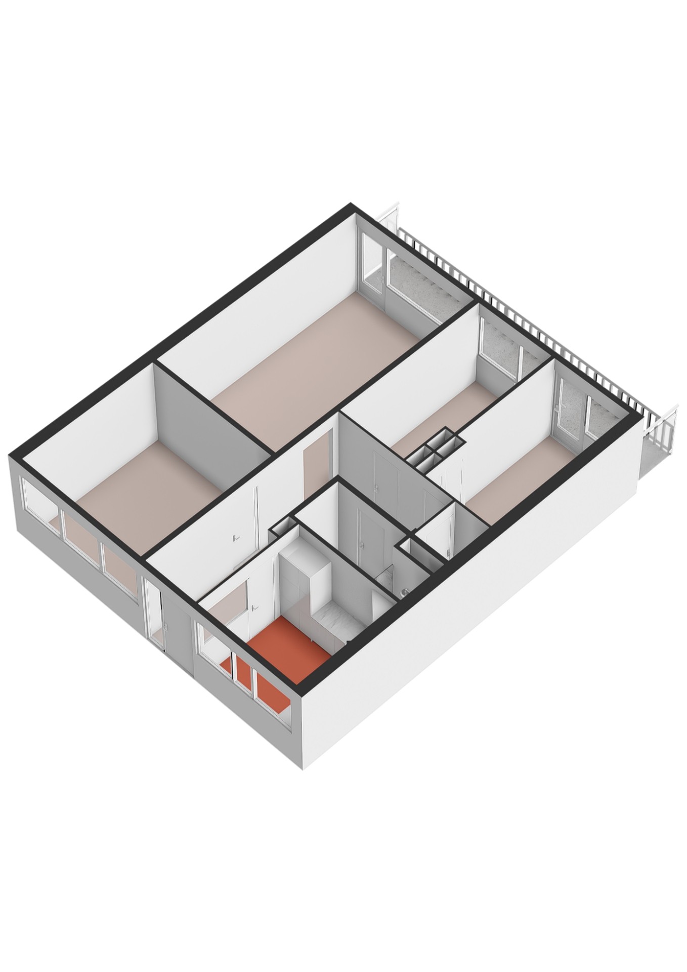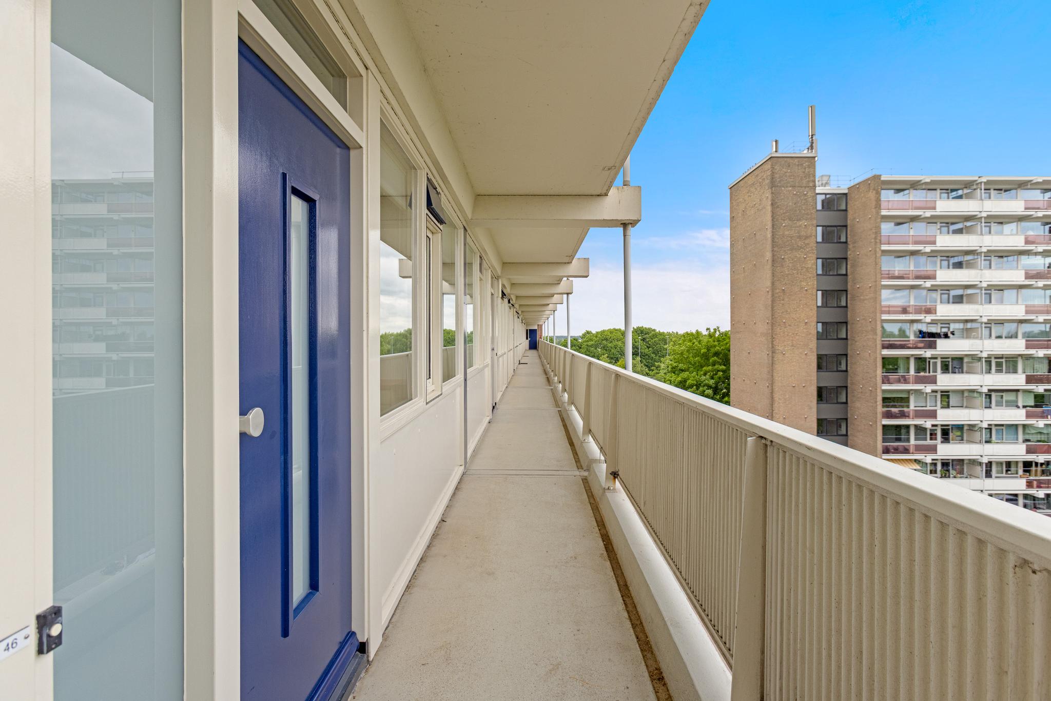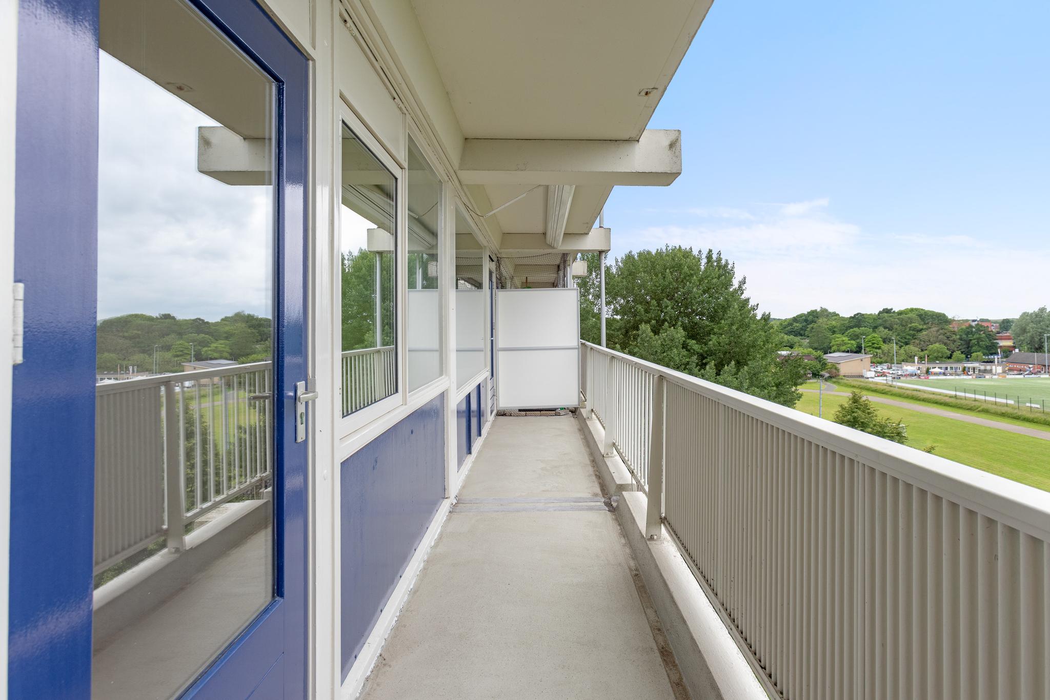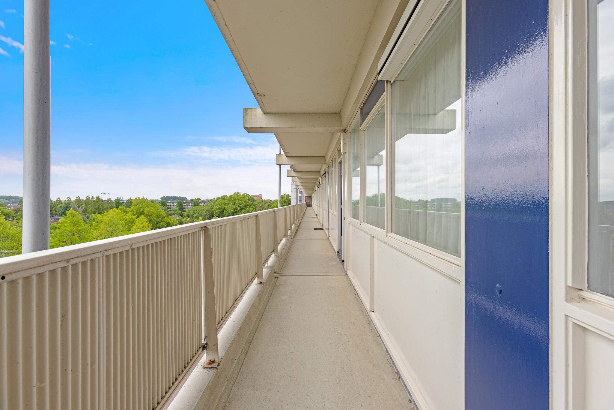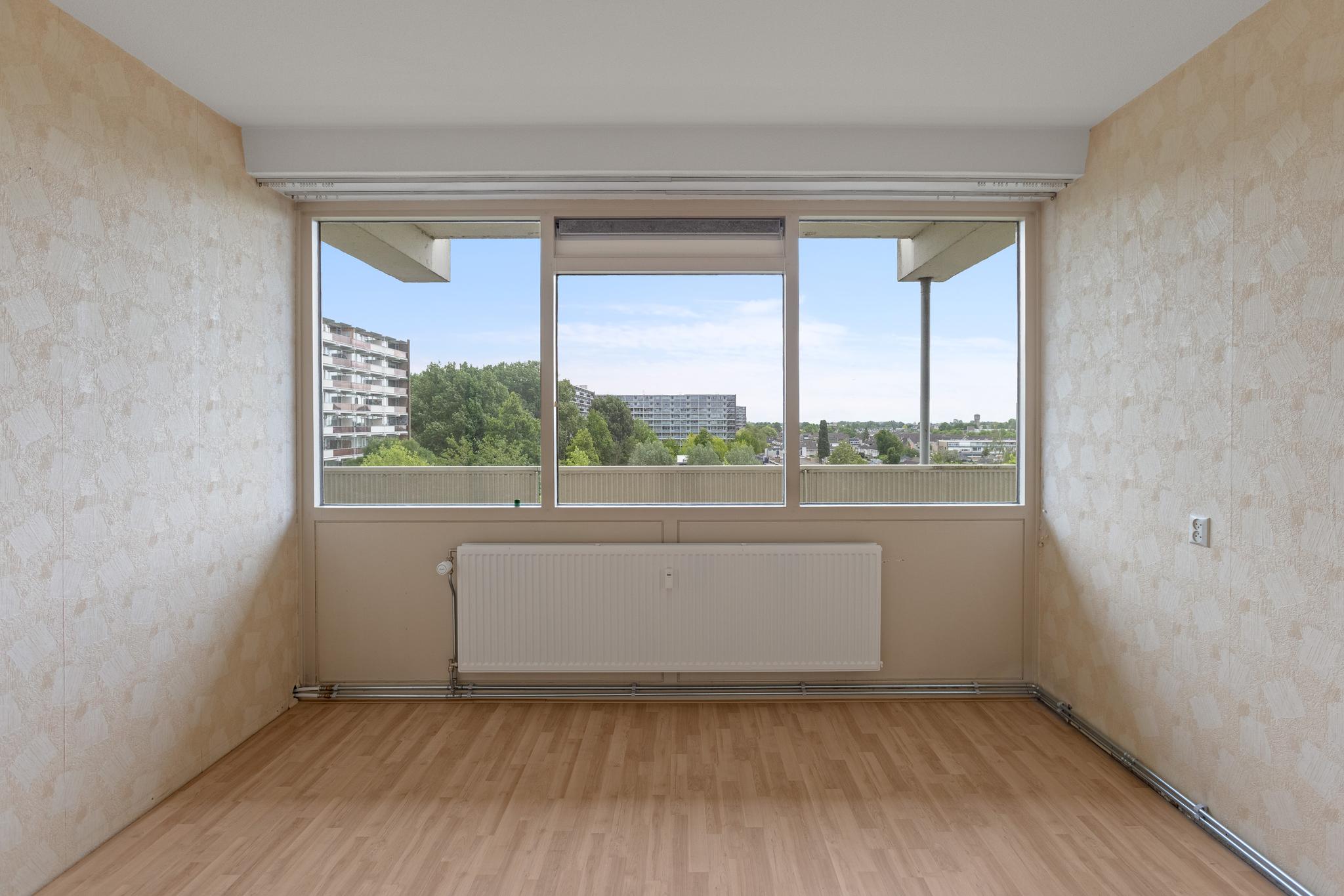 Tevens bevindt zich aan de galerijzijde de grote slaapkamer. Deze kamer is voorzien van een laminaatvloer en behang wandafwerking.